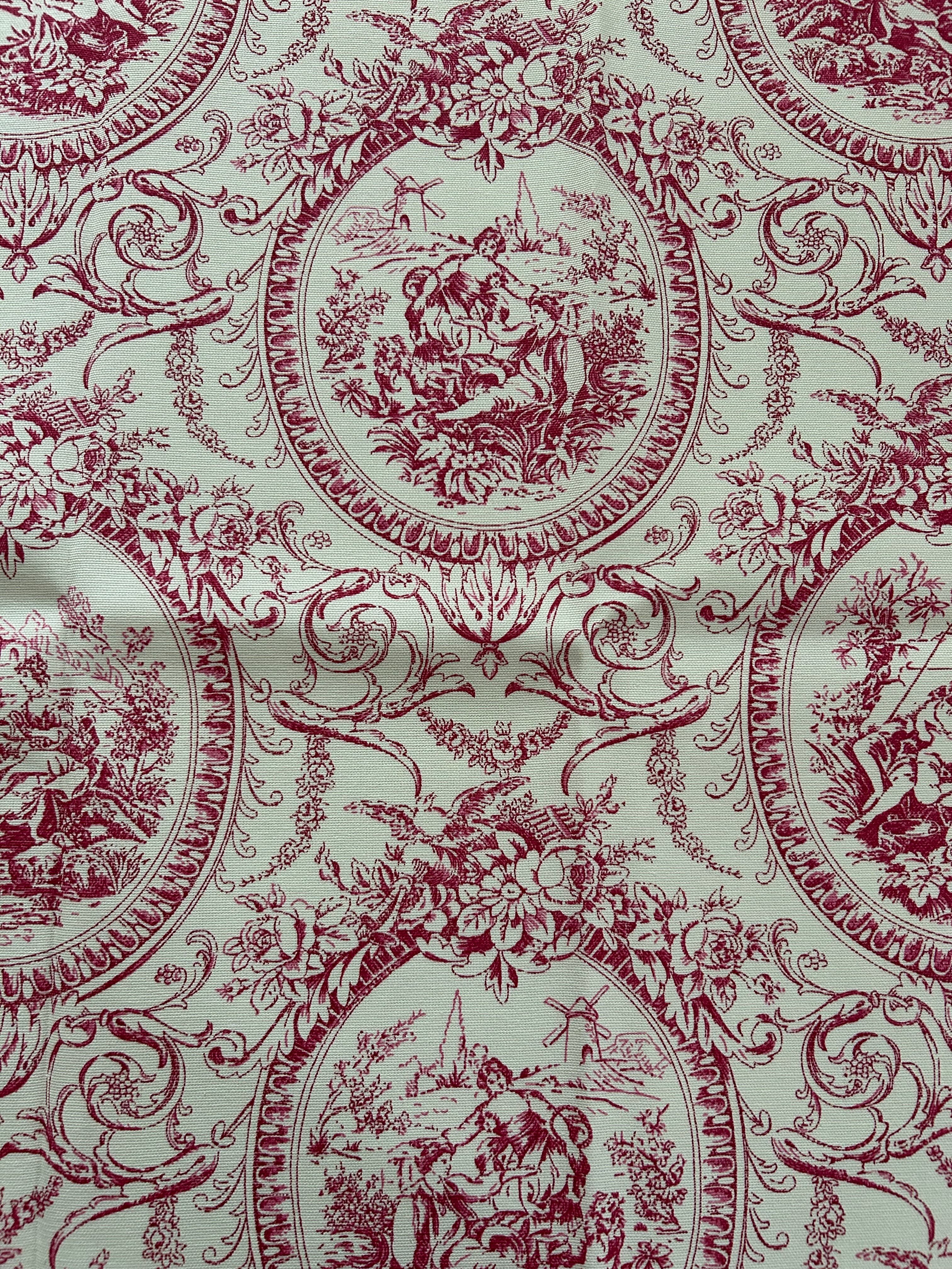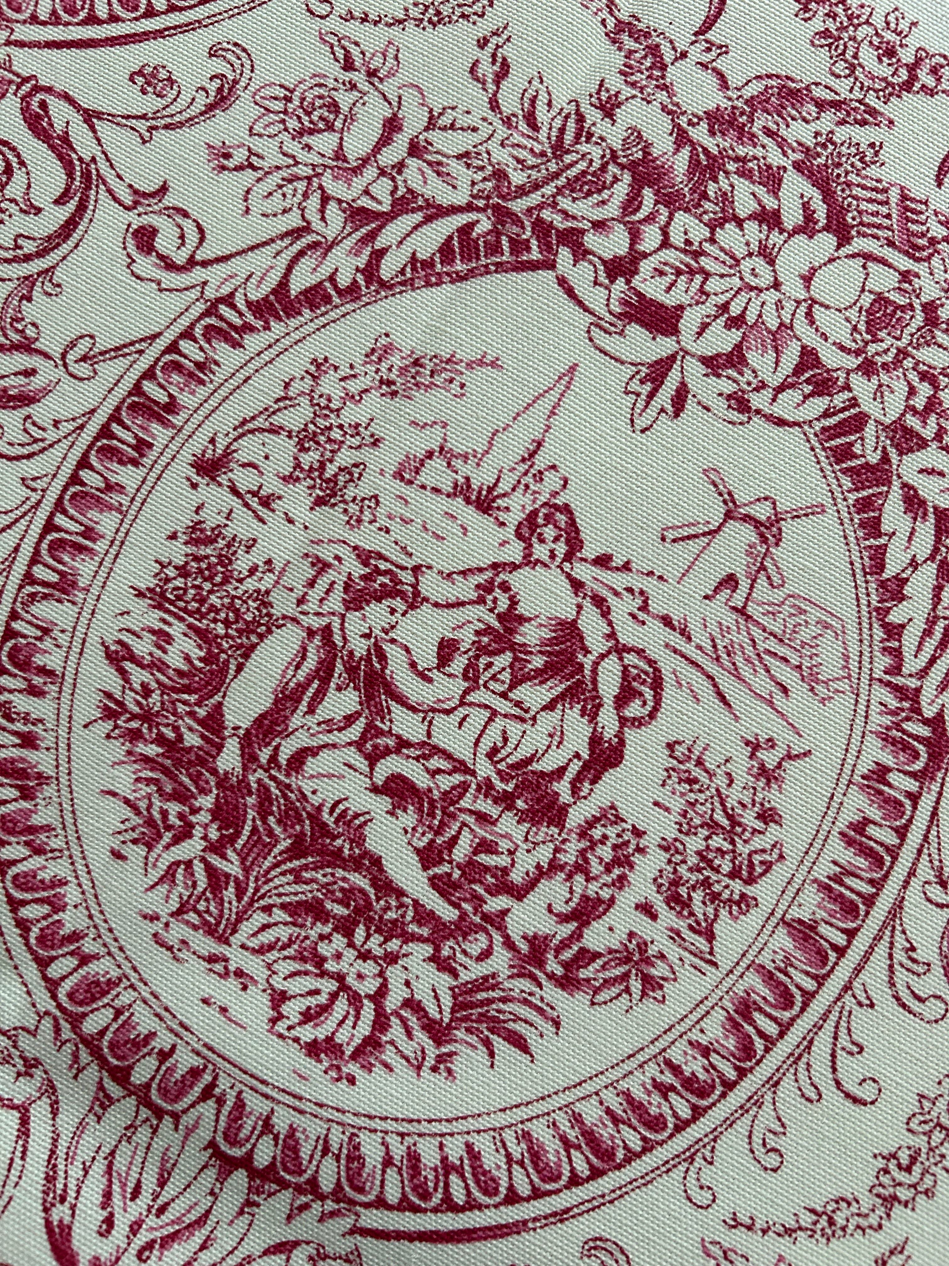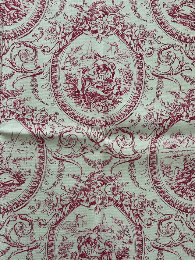 輸入コットンファブリック フランス トワルドジュイ Toile de Jouy レッド系 カルトナージュ フレーム柄