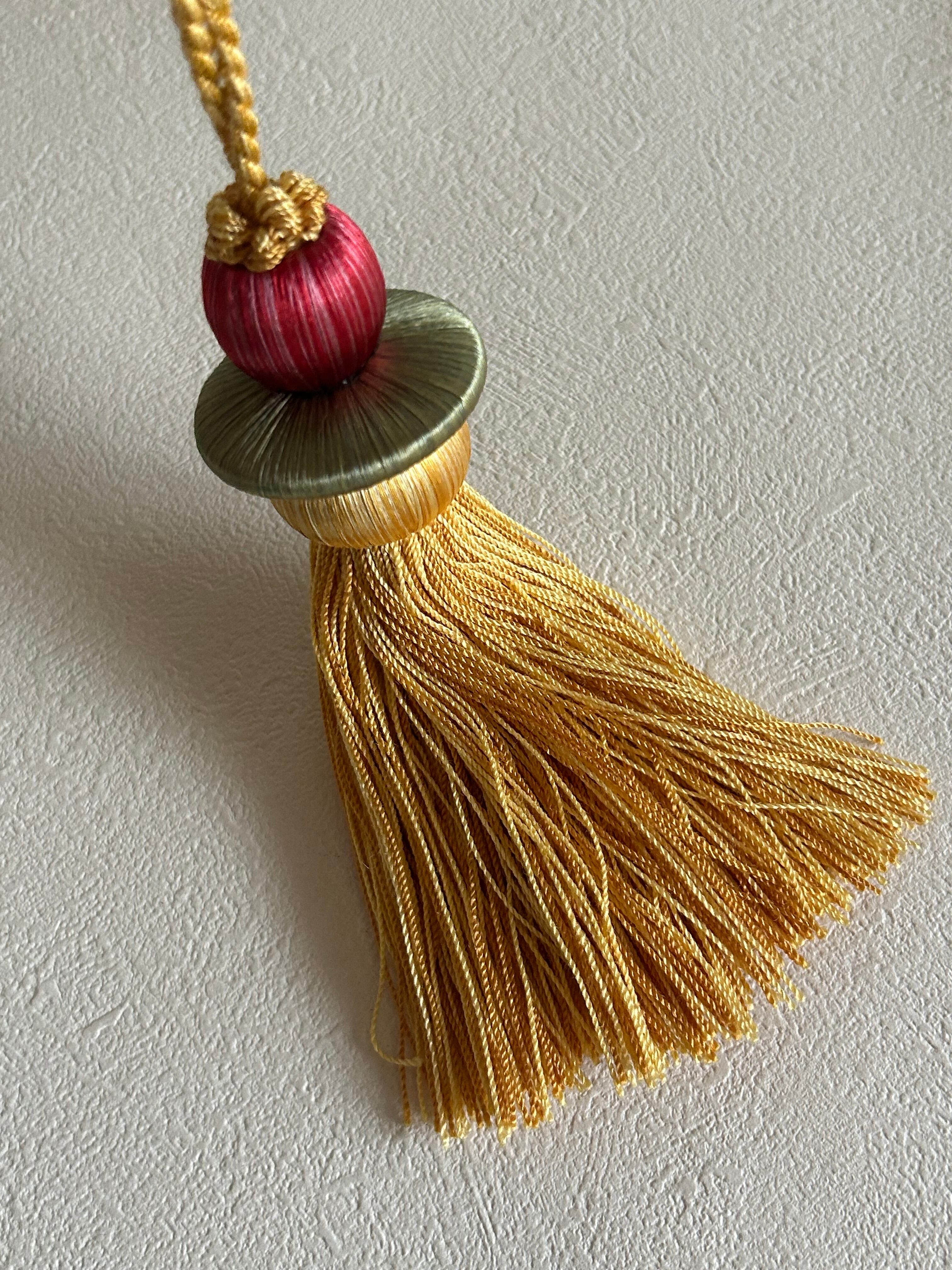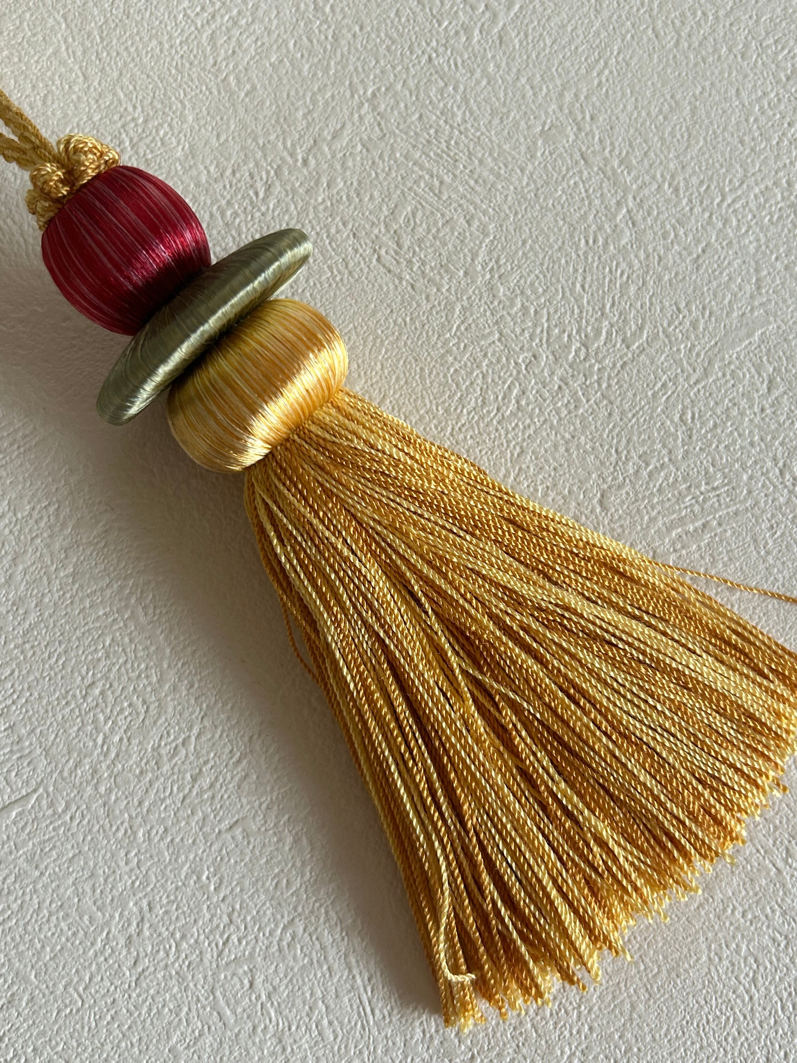 輸入デザインタッセル フランス製 巻玉 イエロー×グリーン×レッド インテリア カルトナージュ お茶箱 スツール デコレーション材