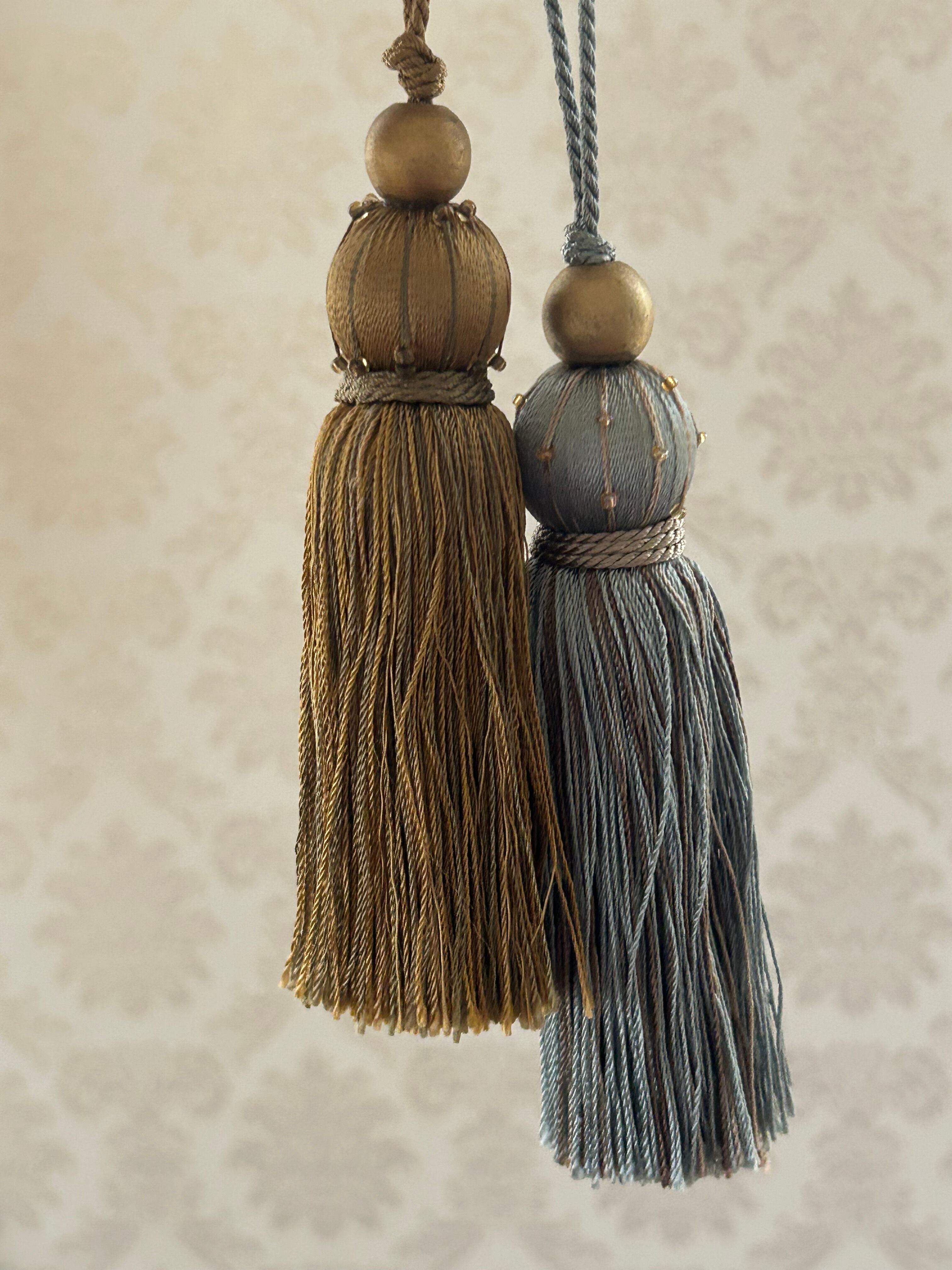輸入デザインタッセル. 12.5cm ゴールド×カーキ/ライトブルー×グレージュ カルトナージュ インテリア チャーム