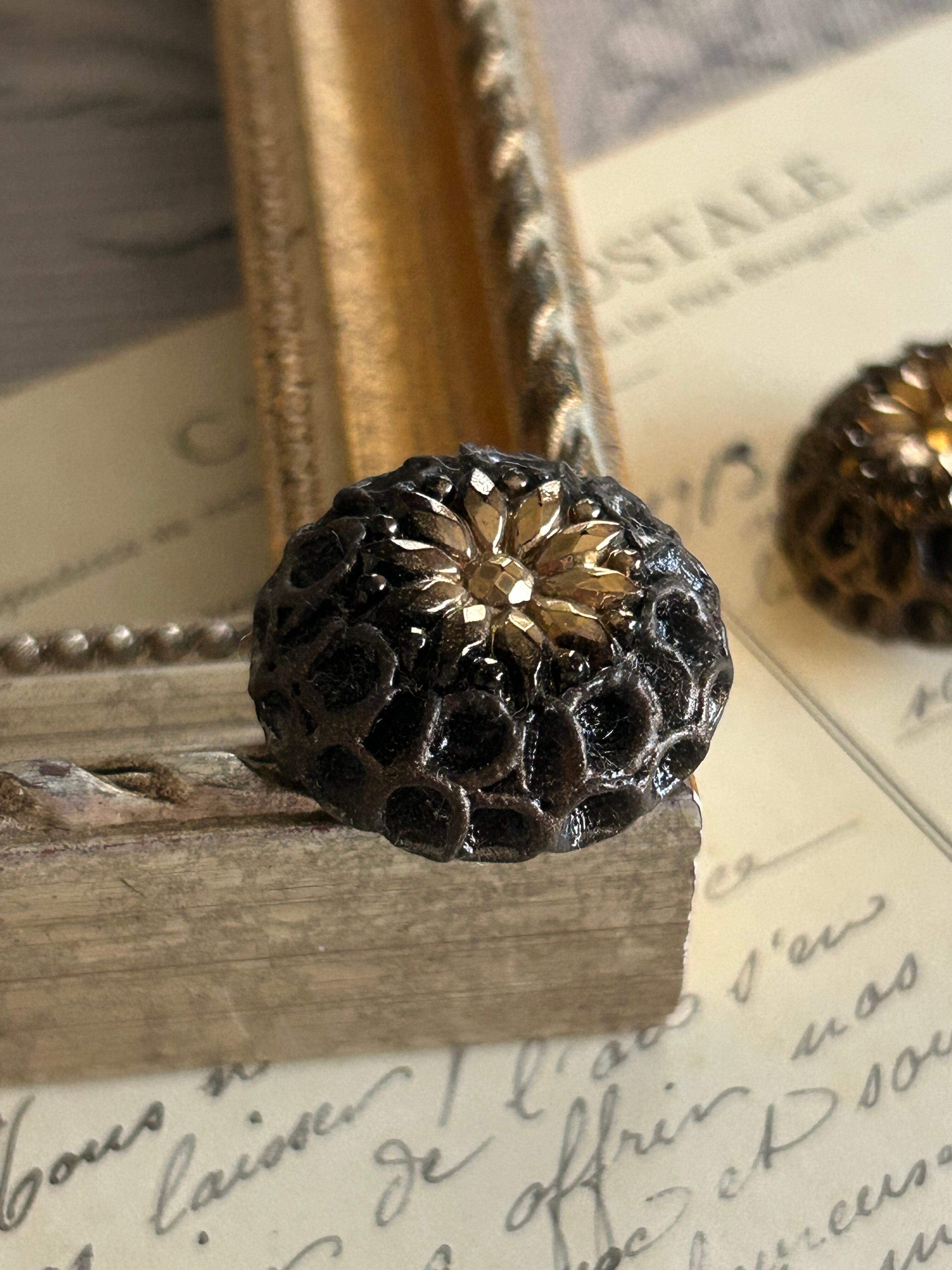 フランス アンティークボタン ガラスボタン ブラウン×ゴールド 22mm ドーム型 アクセサリーパーツ デコレーション材