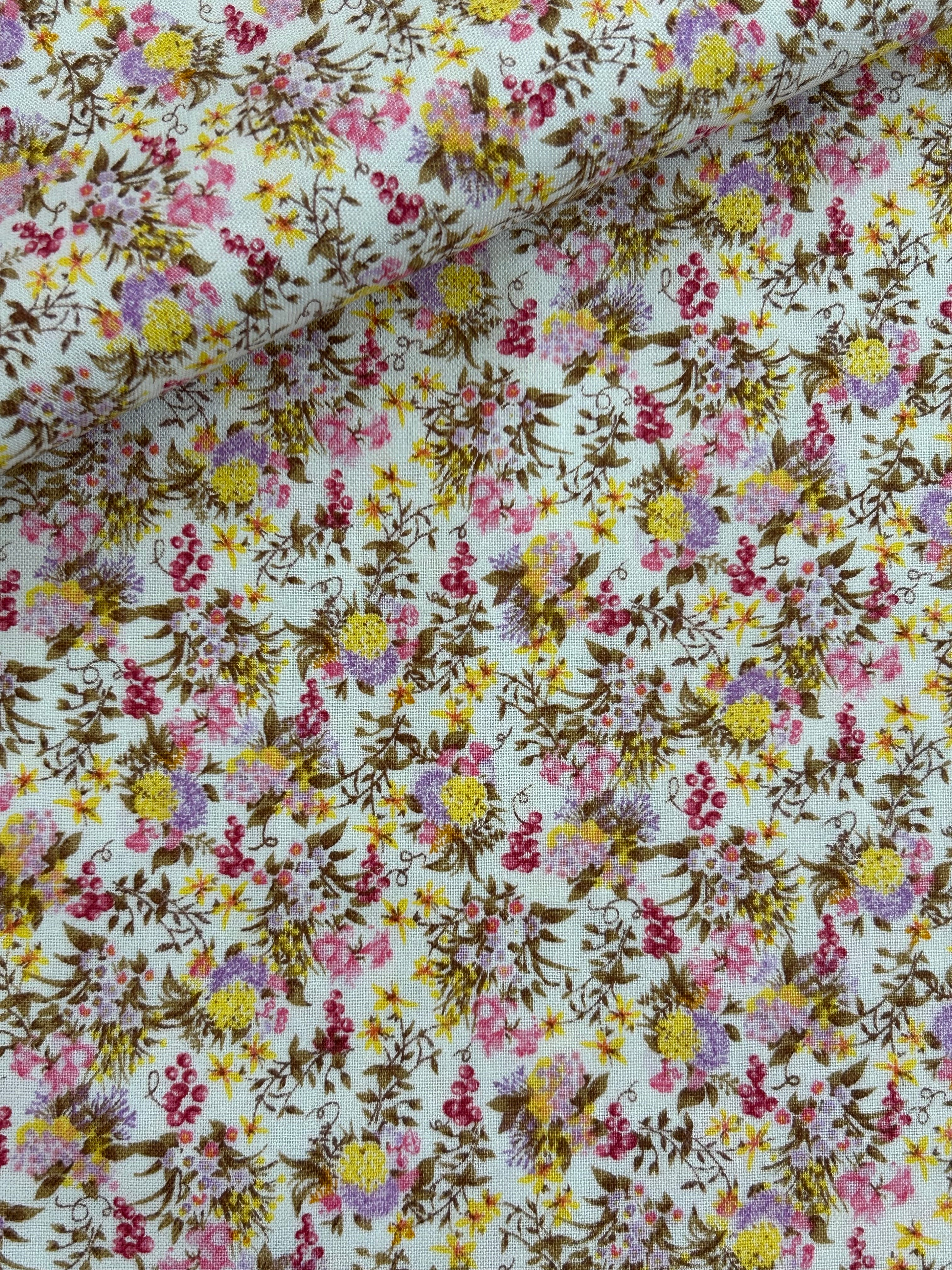 一面に可愛いピンクやパープル、イエローなどの小花柄のデザイン。