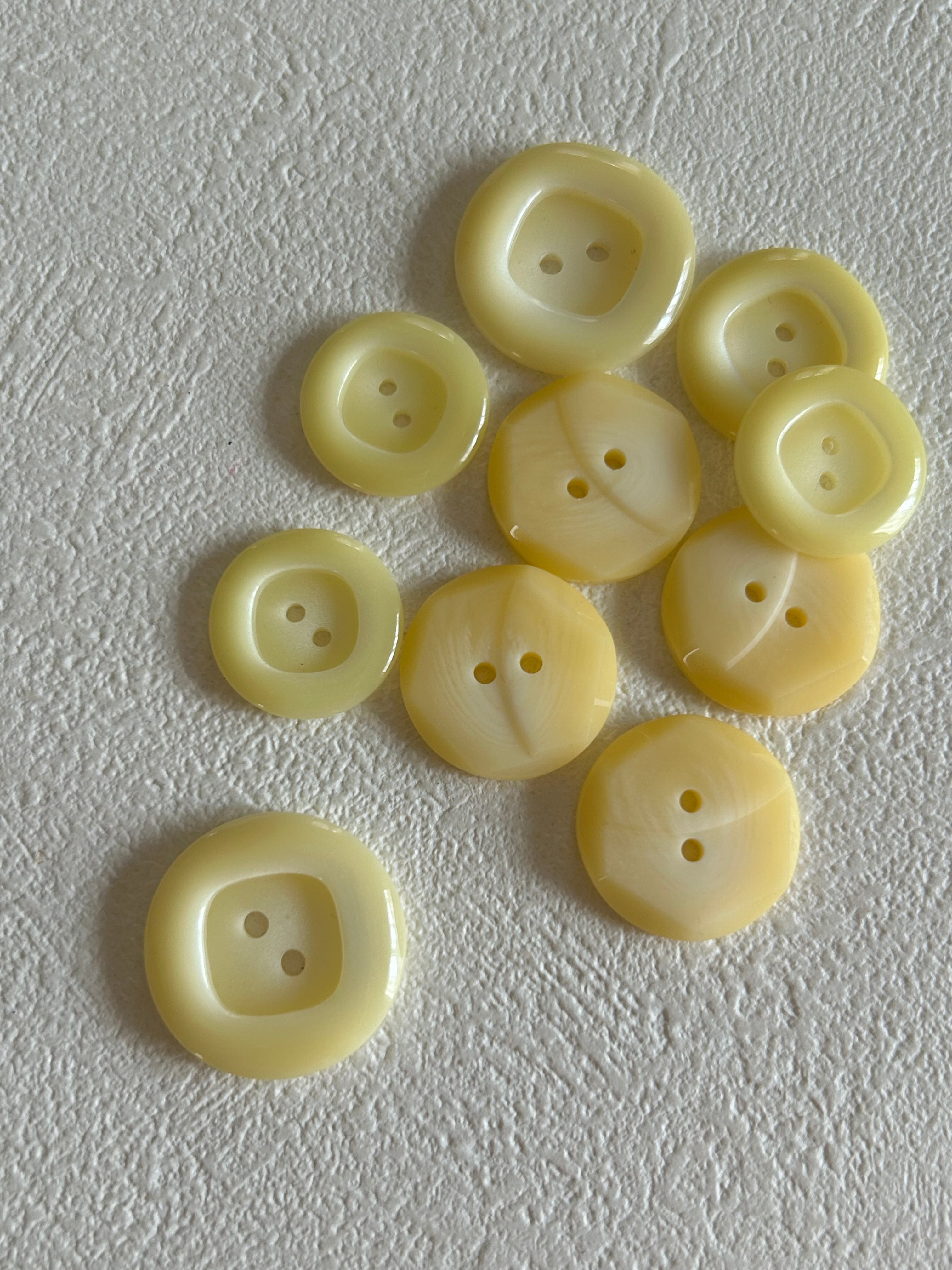 Japanese Vintage ボタン レモンイエロー 10個セット 18mm〜23mm レトロ アクセサリーパーツ 二つ穴