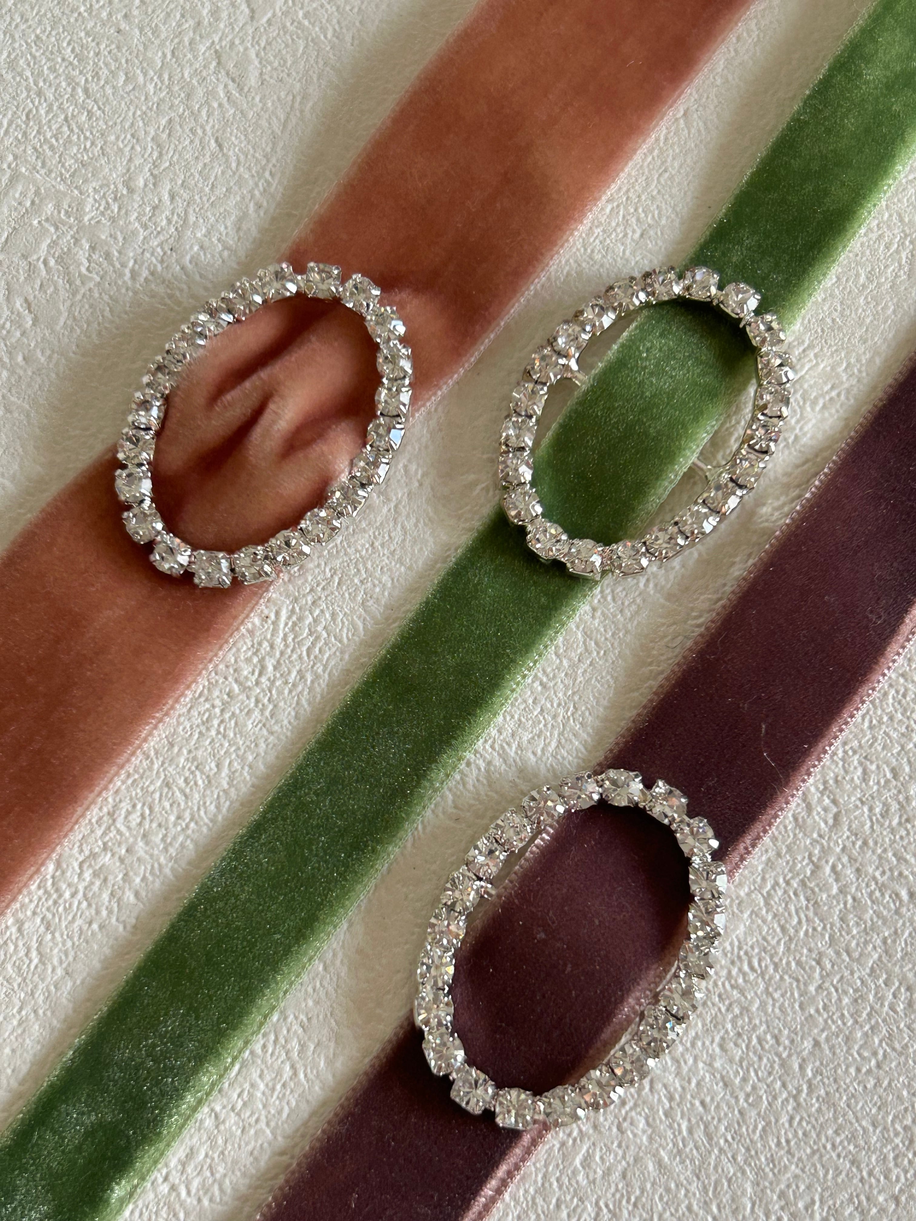画像は上から22mm/12mm/16mmのベルベットのリボンを通しています。ご参考になさってくださいませ。
