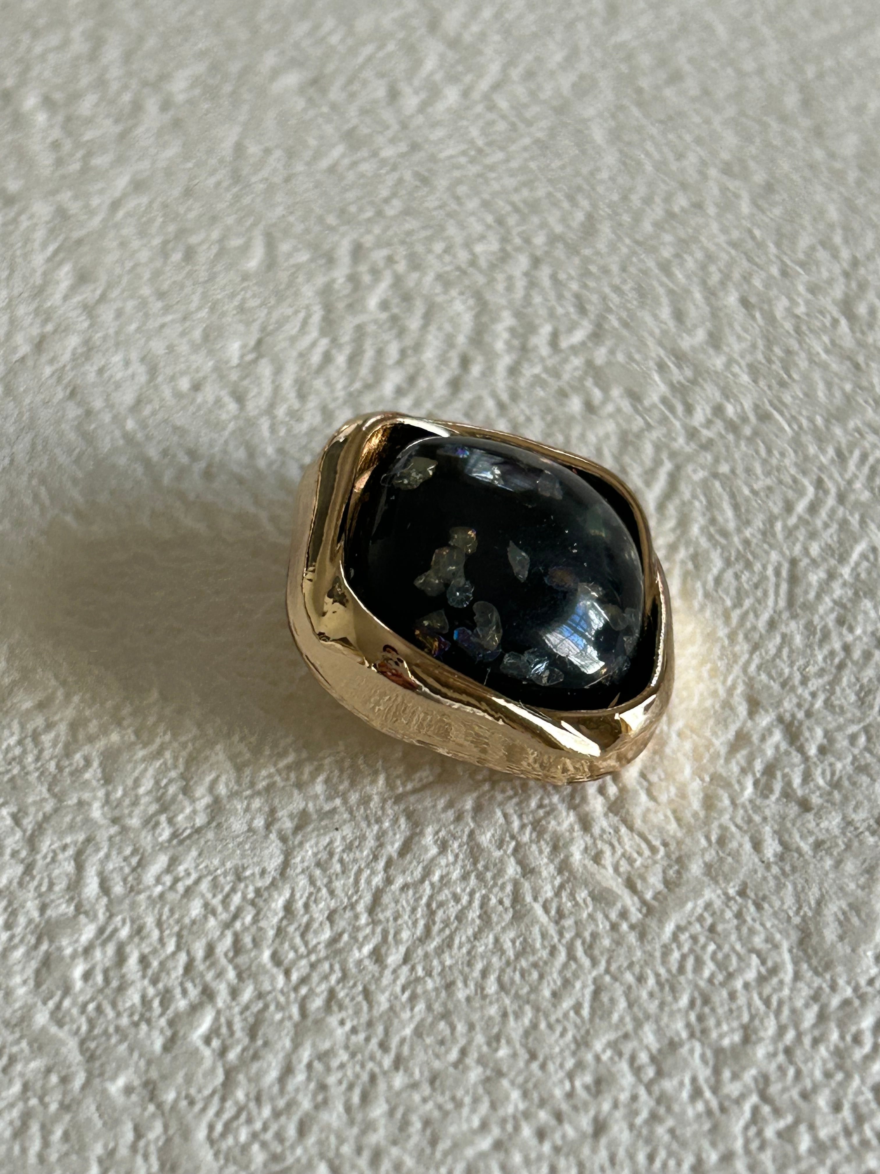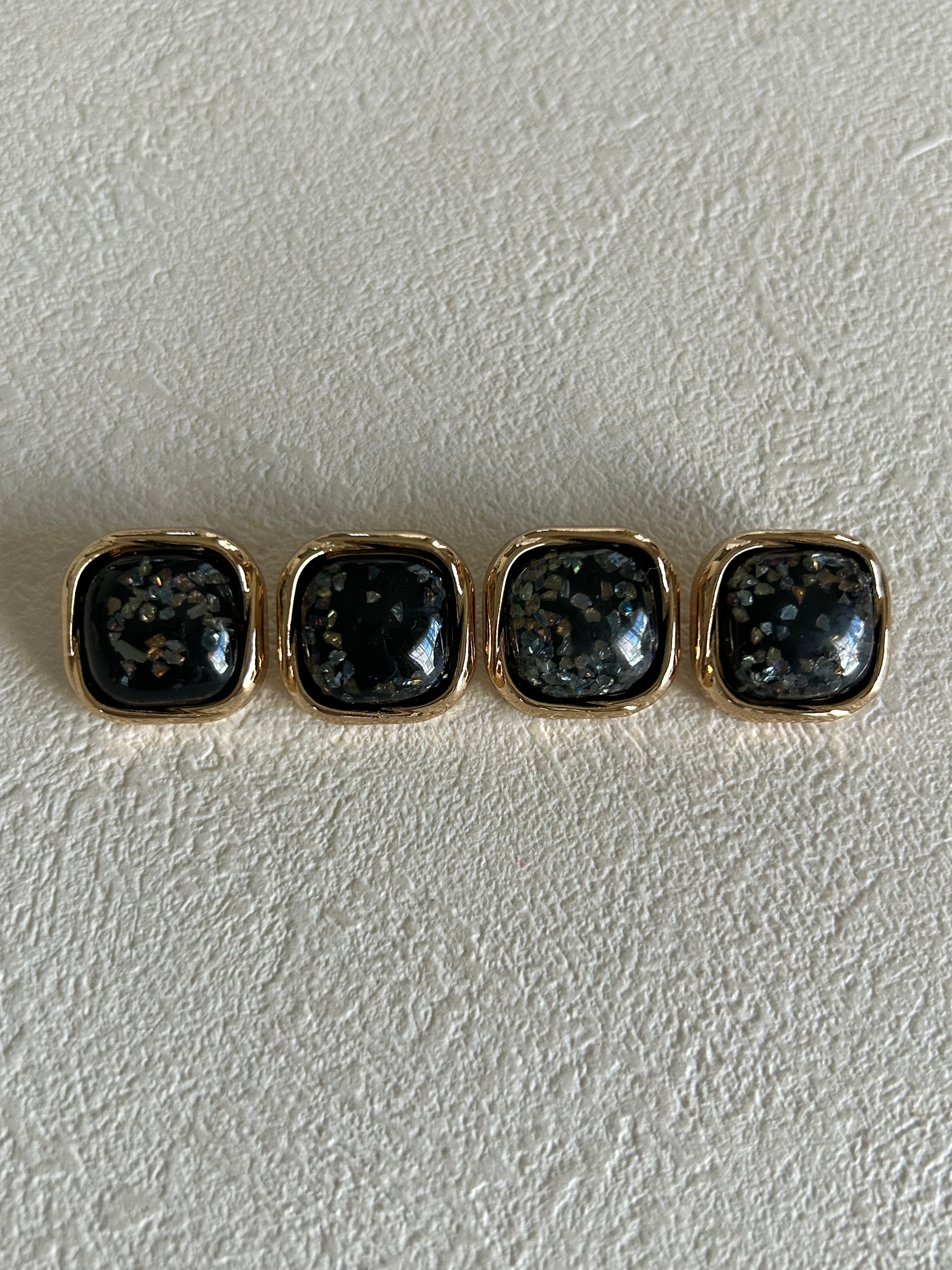 輸入デザインボタン ホログラム ブラック×ゴールド カボション×メタル 17mm アクセサリーパーツ デコレーションパーツ
