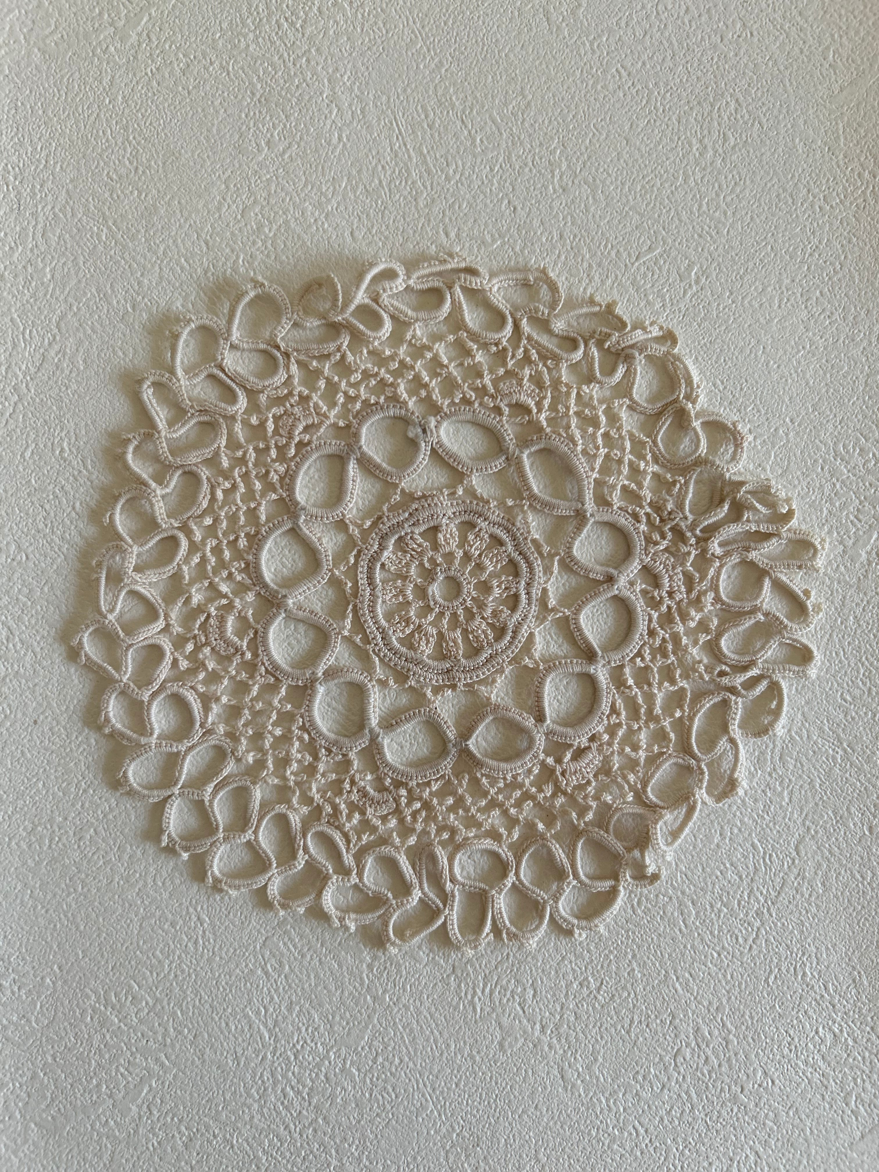 フランスVintage ヴィンテージ ドイリー 約15.3cm クロッシェ ベージュ 敷物 インテリア小物 額装 ハンドメイドパーツ