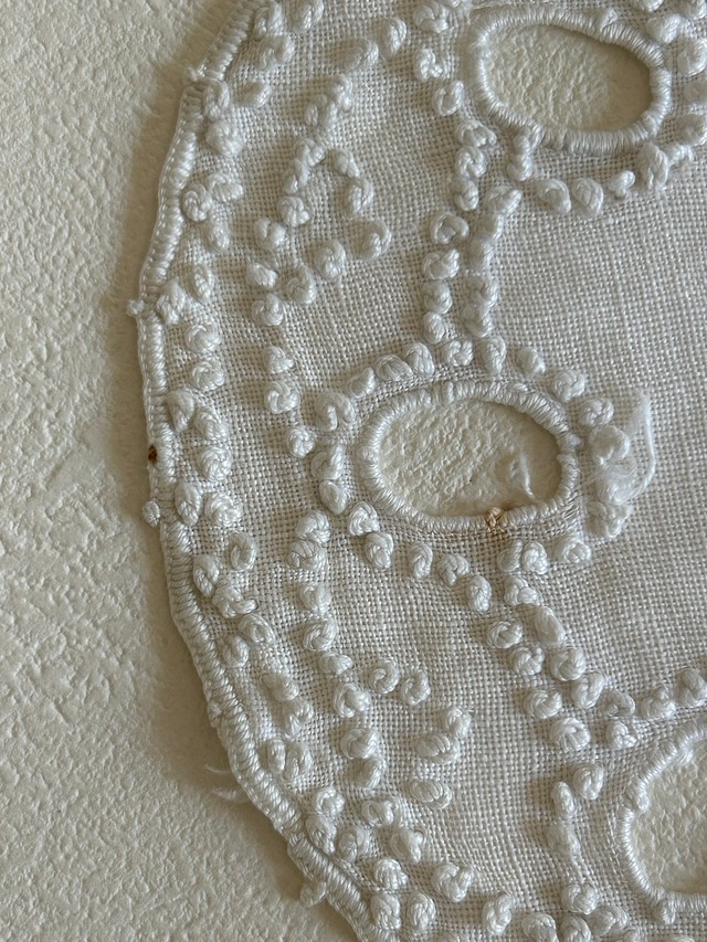 フランスVintage ヴィンテージ ドイリー 手刺繍 ドット カットワーク 敷物 インテリア ハンドメイド素材 額装 BE