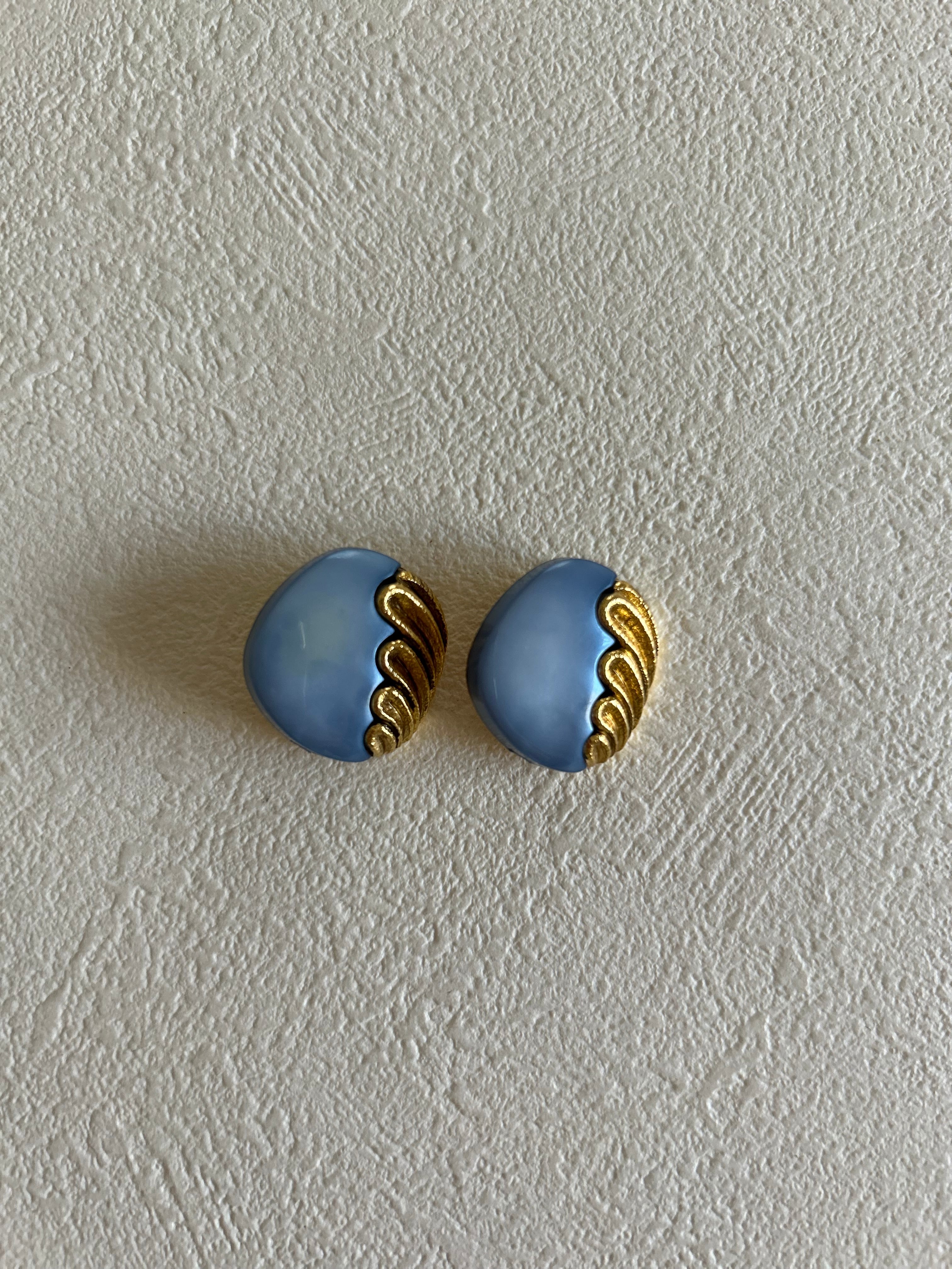 艶やかでパールがかったくすみライトブルーのカボションにゴールドフェザーのようなデコレーション