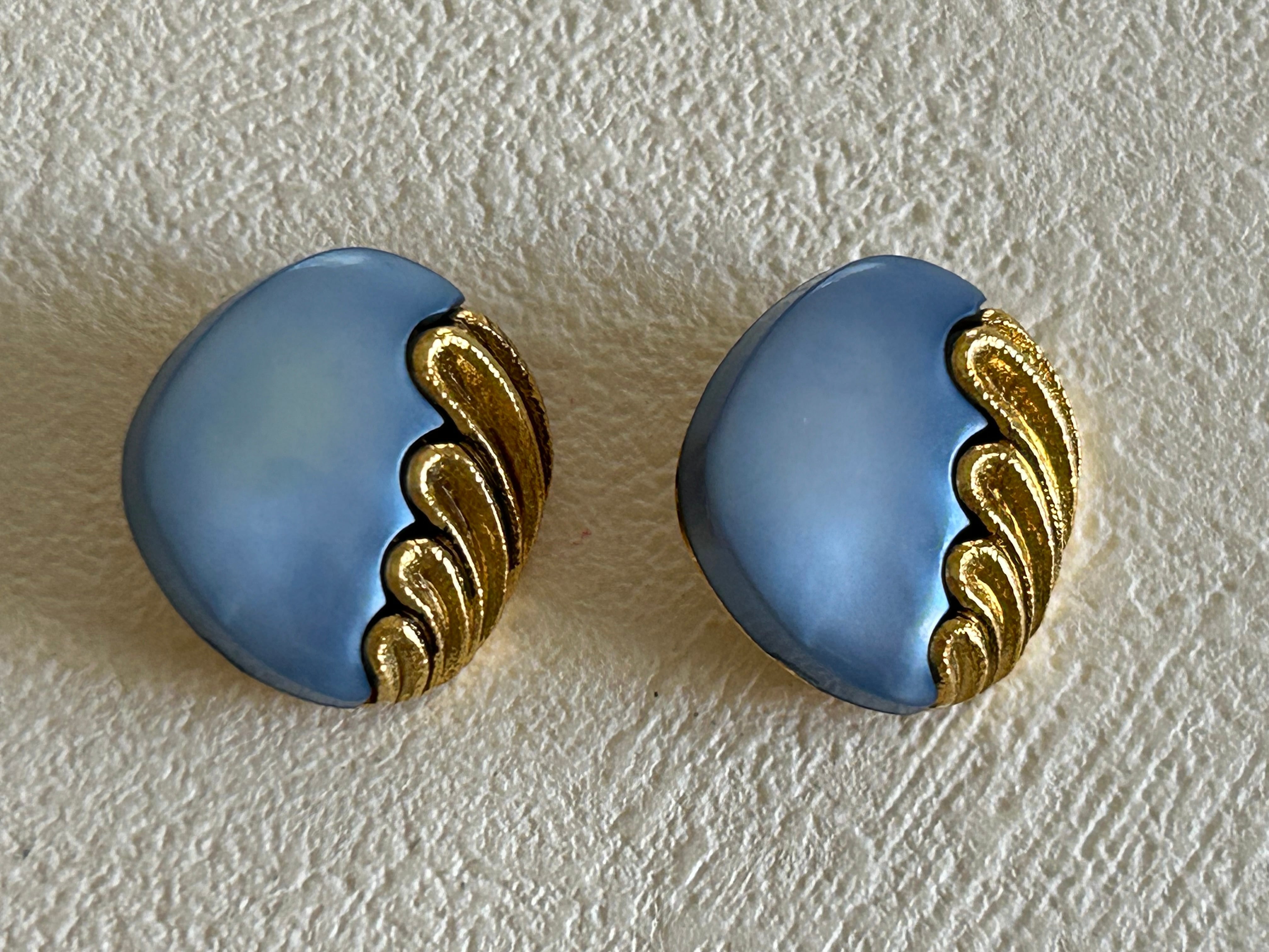 Japanese Vintage ヴィンテージボタン カボションカボション くすみライトブルー×ゴールド 20mm アクセサリーパーツ 装飾