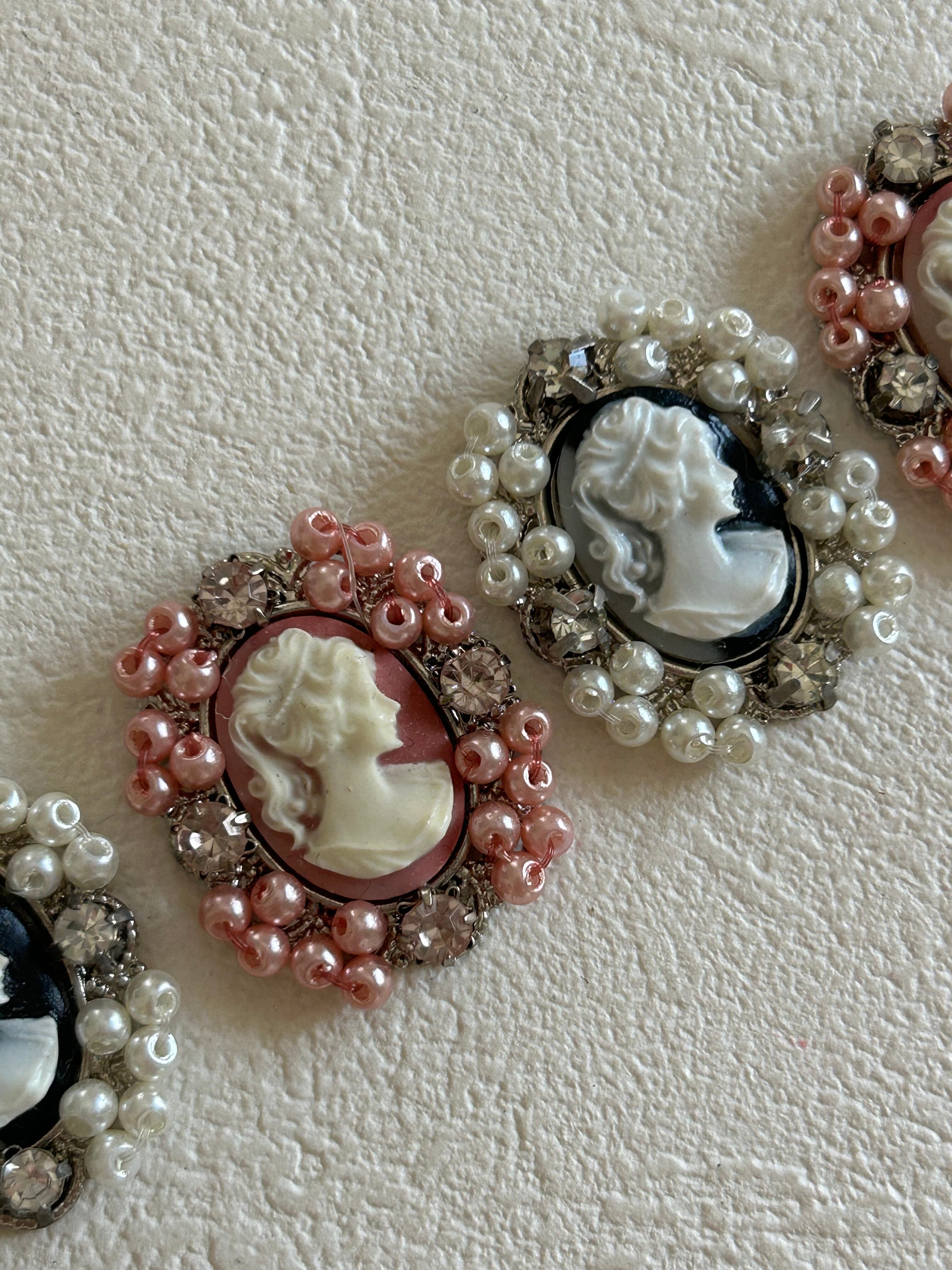 パール調ビーズとストーンのフレームが付いたカメオ風カボション。