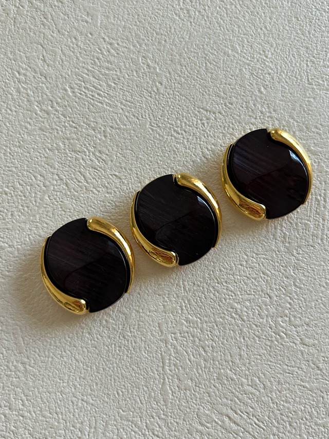 Japanese Vintage ヴィンテージボタン プラスチック ウッド調 ブラウン×ゴールド 27mm アクセサリーパーツ 装飾材