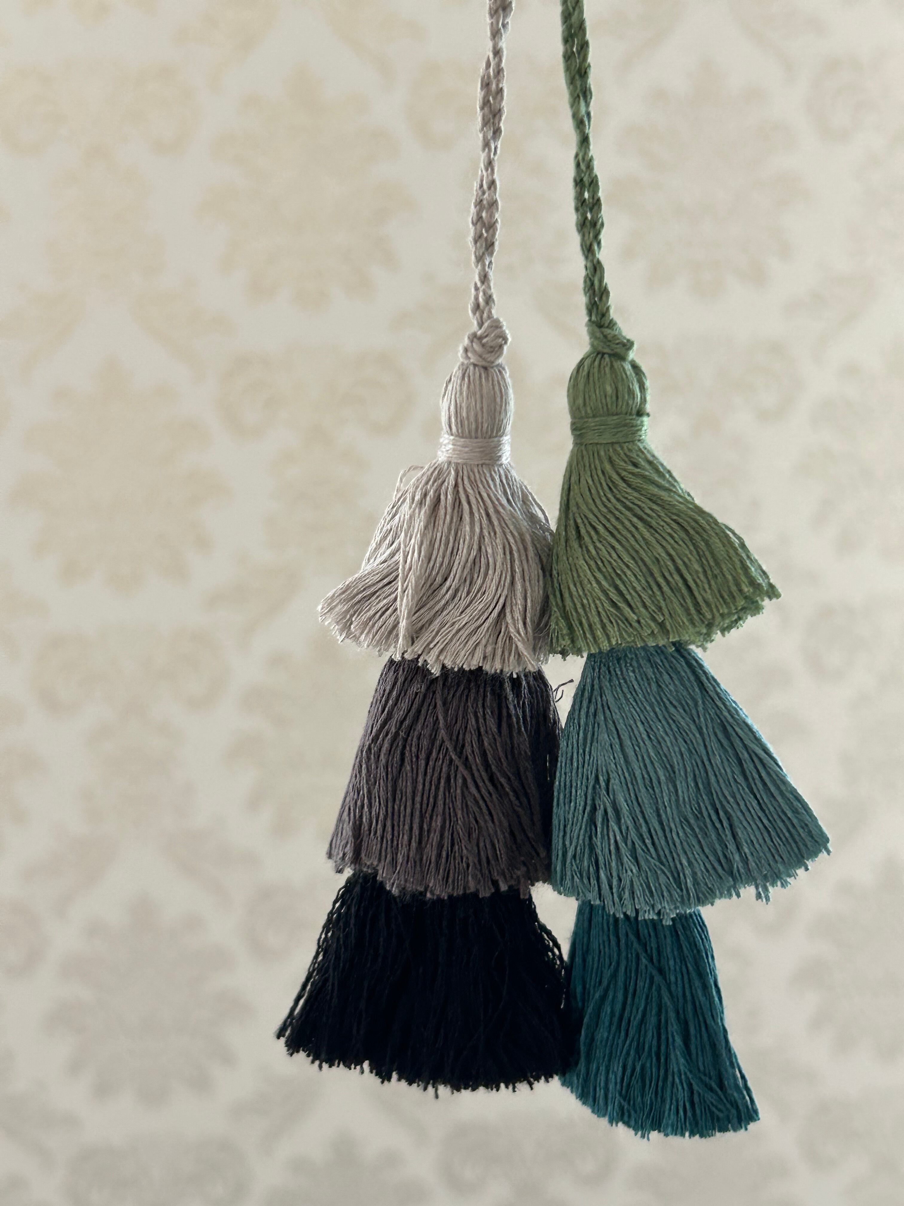 輸入デザインタッセル フランス製 3連タッセルモノトーン/ブルーグリーン インテリア カルトナージュ お茶箱 スツール デコレーション材