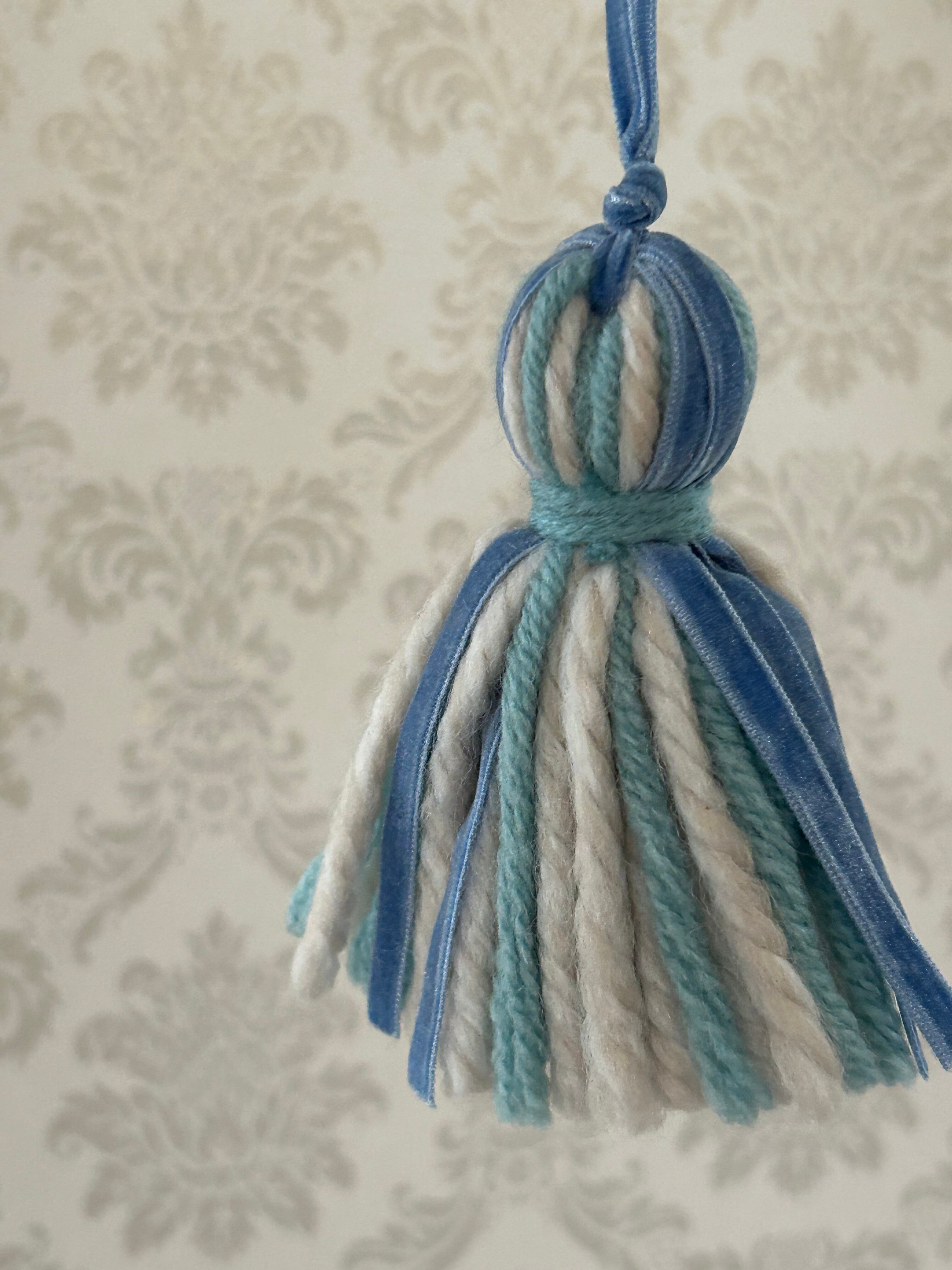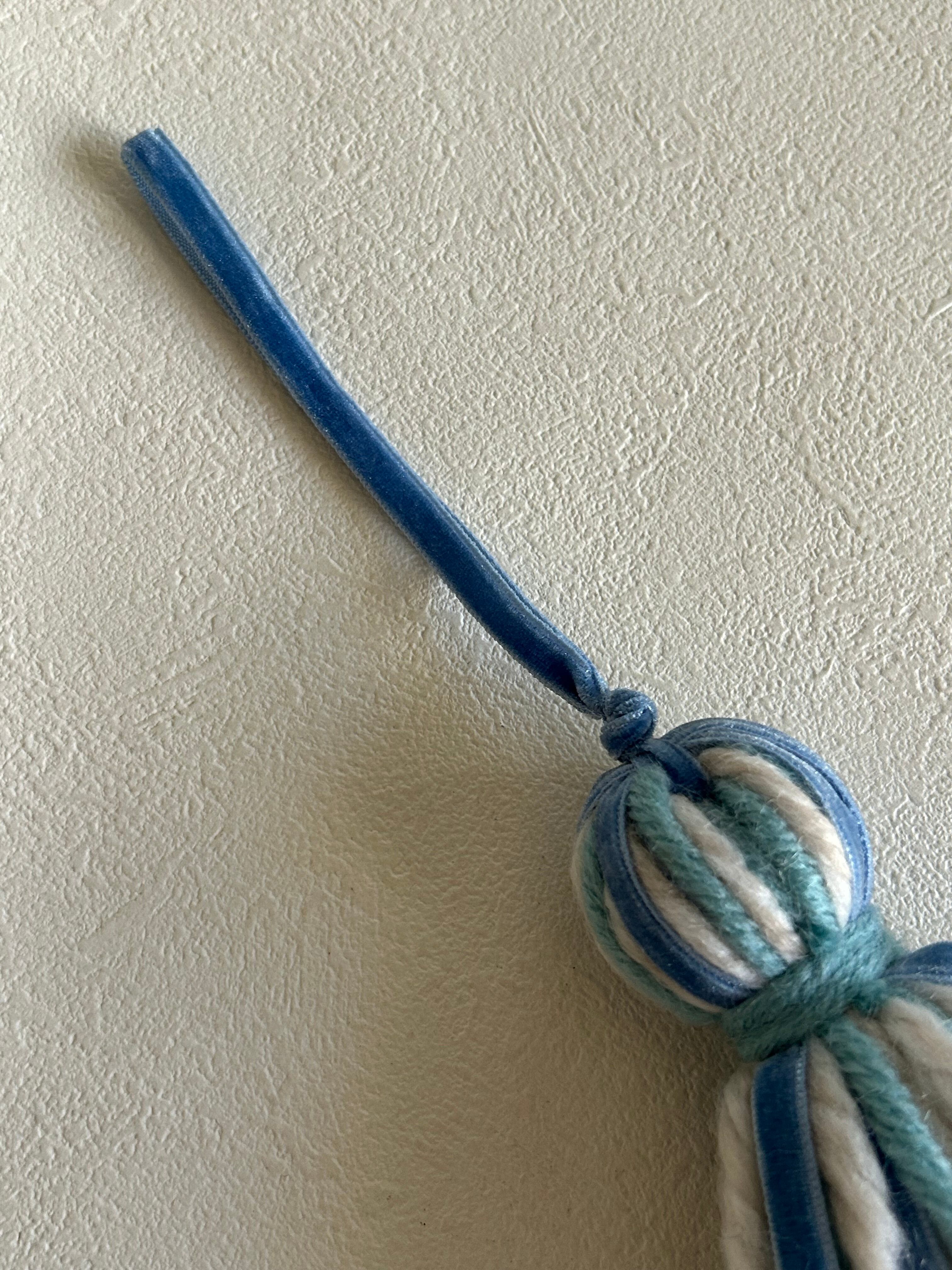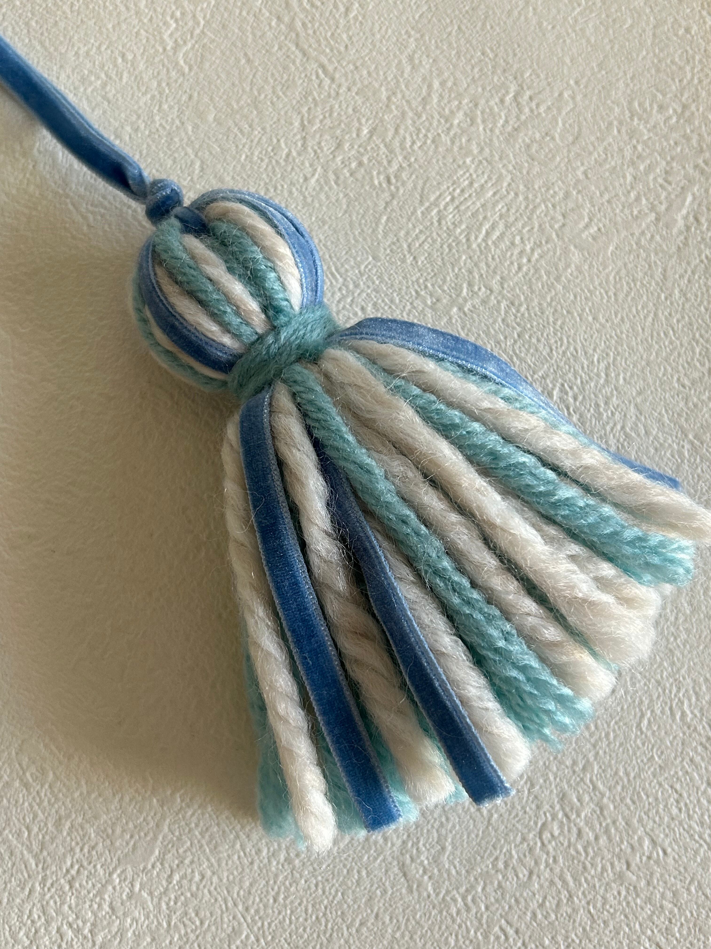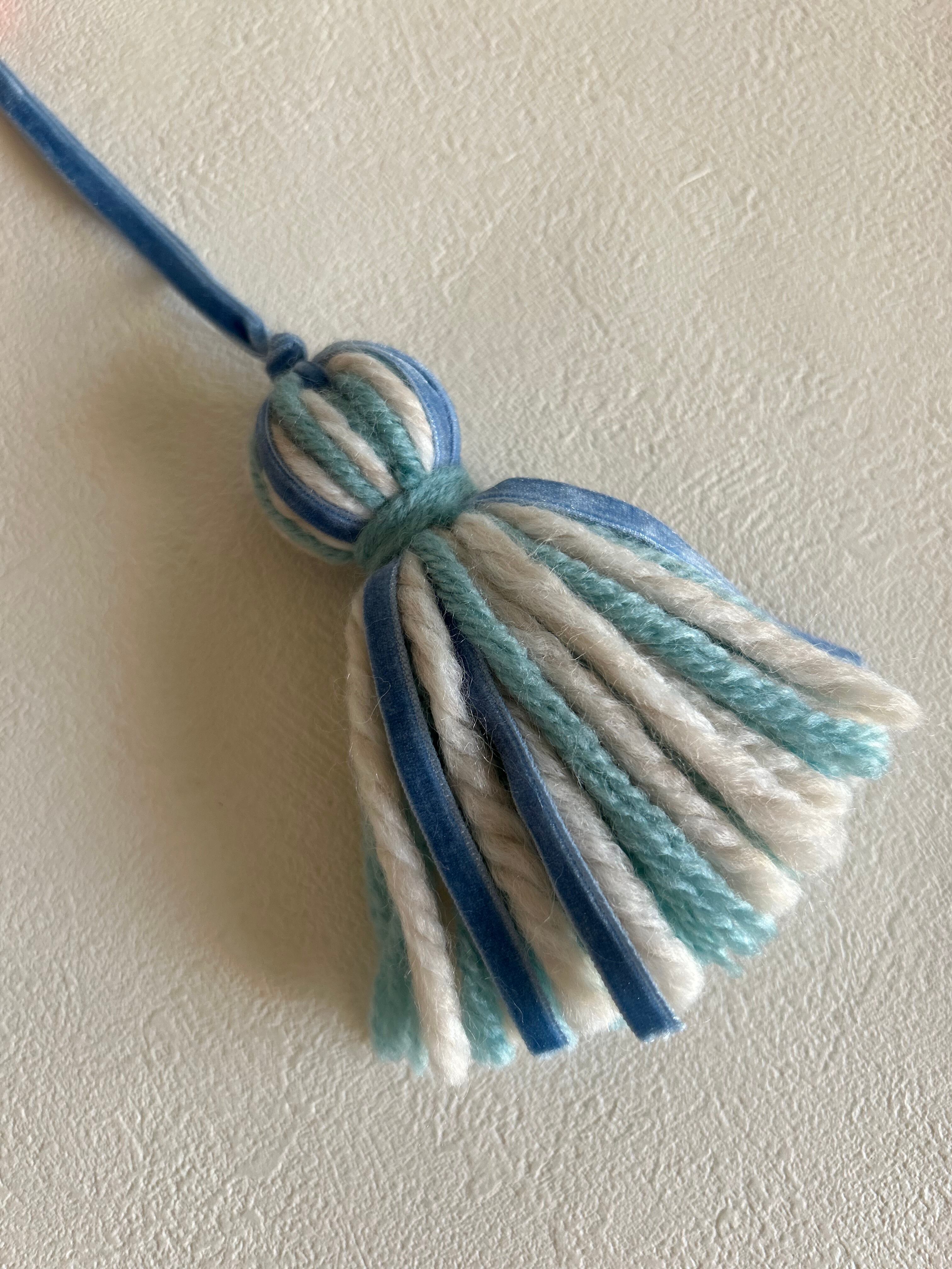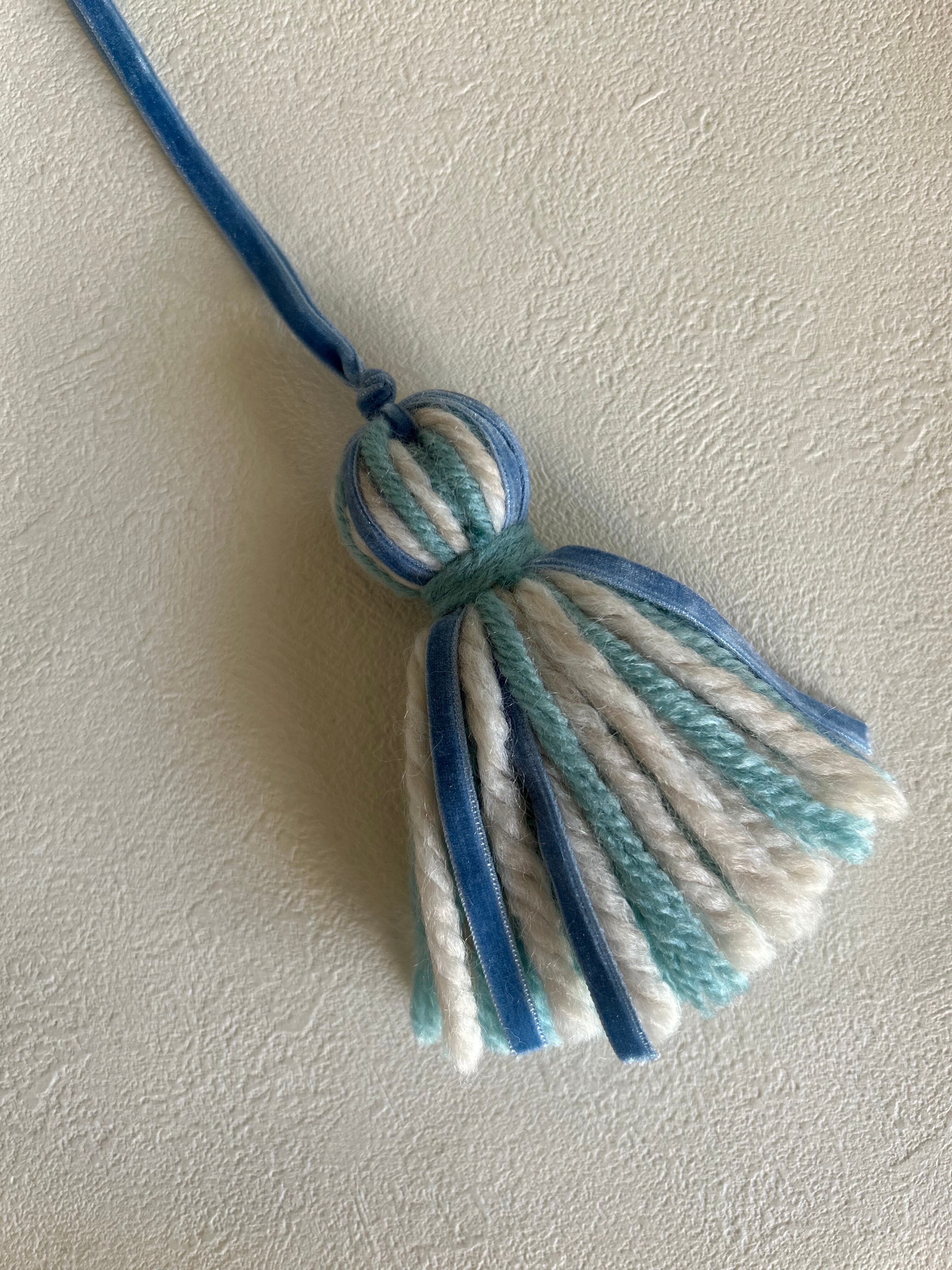 画像の様なブルー×アイボリー系のボリューミーなタッセルです。