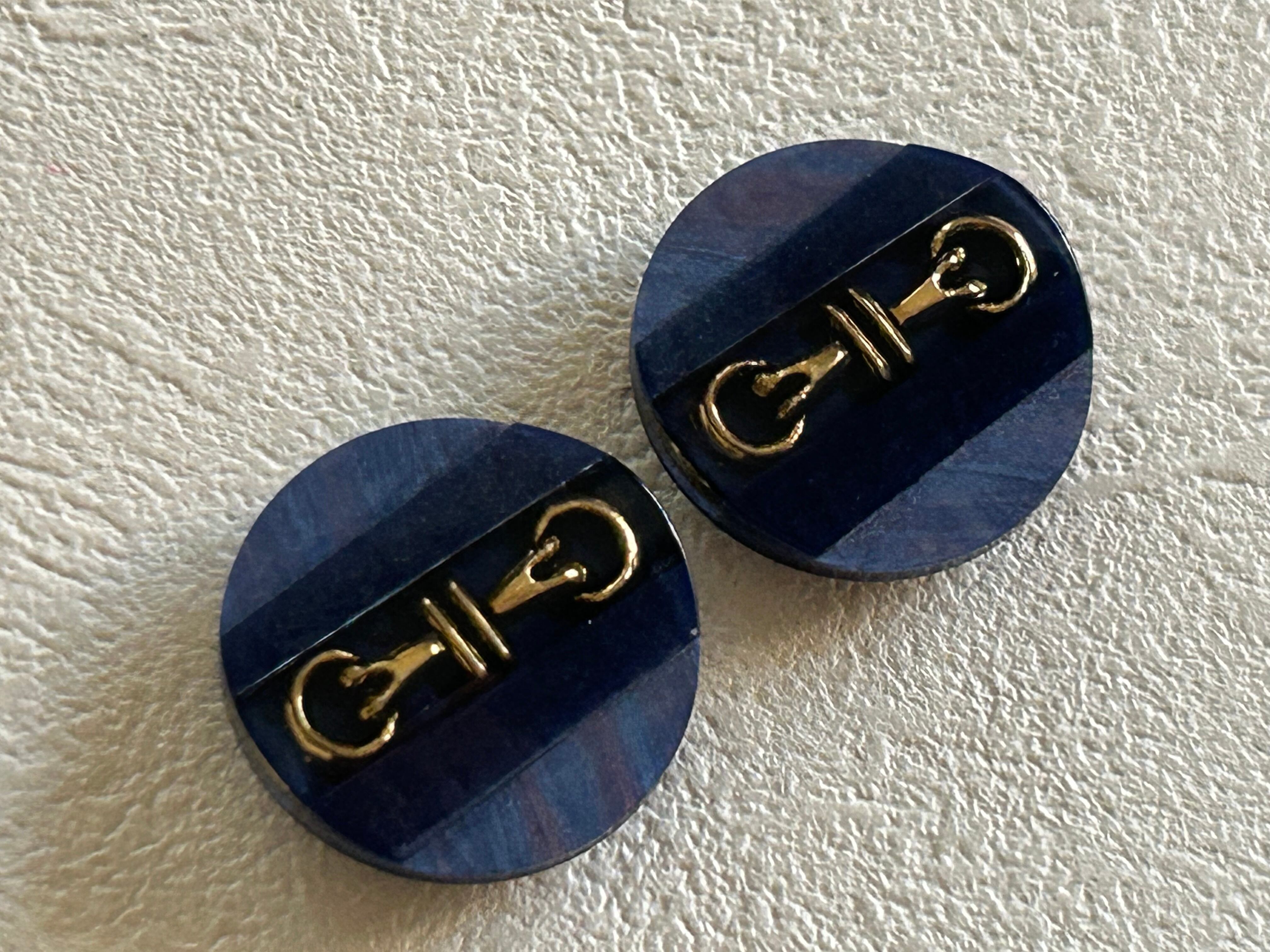 Japanese Vintage ヴィンテージボタン ネイビー×オーロラ ホースビット 22mm デッドストック アクセサリーパーツ カルトナージュ デコレーション材