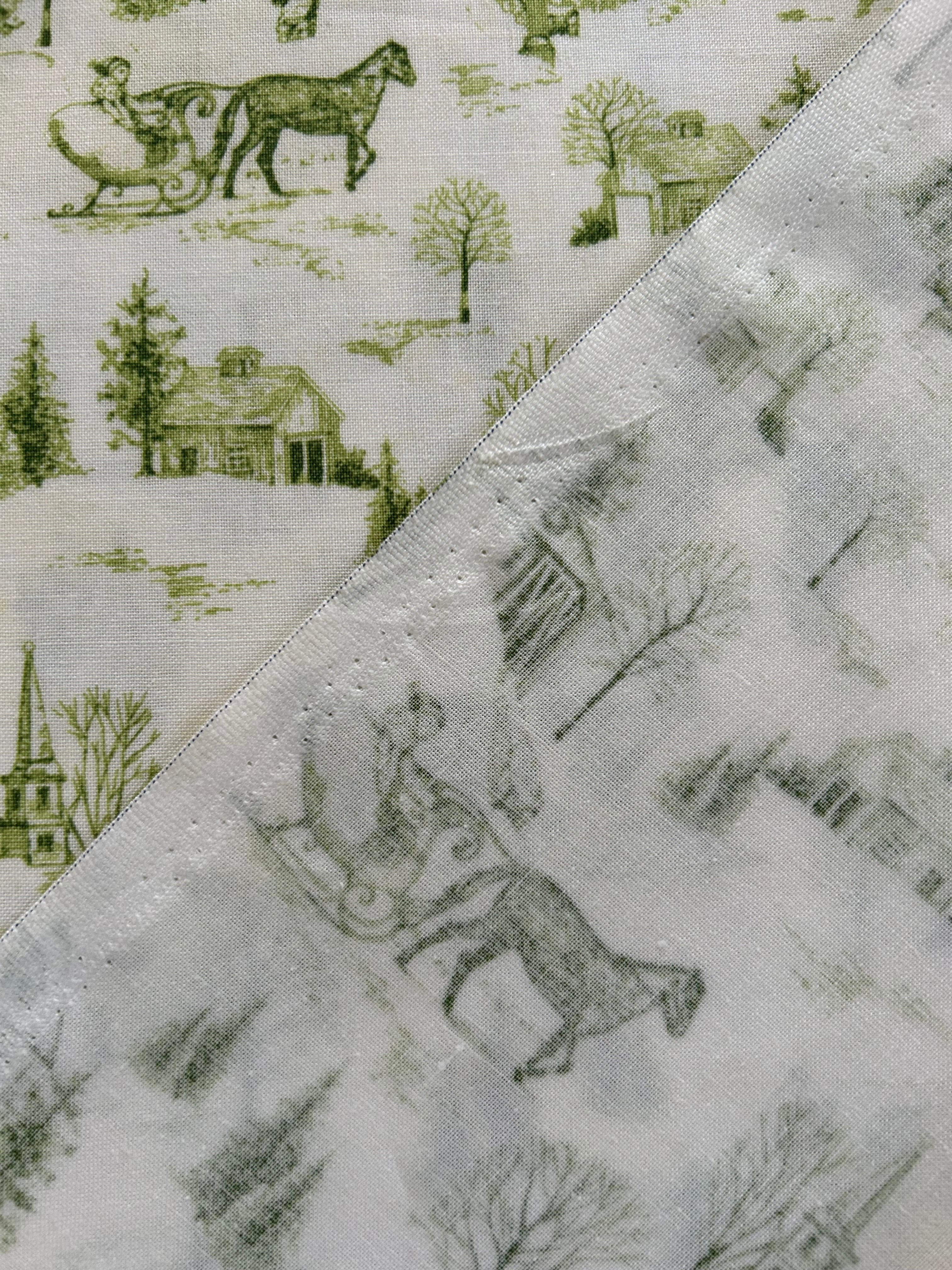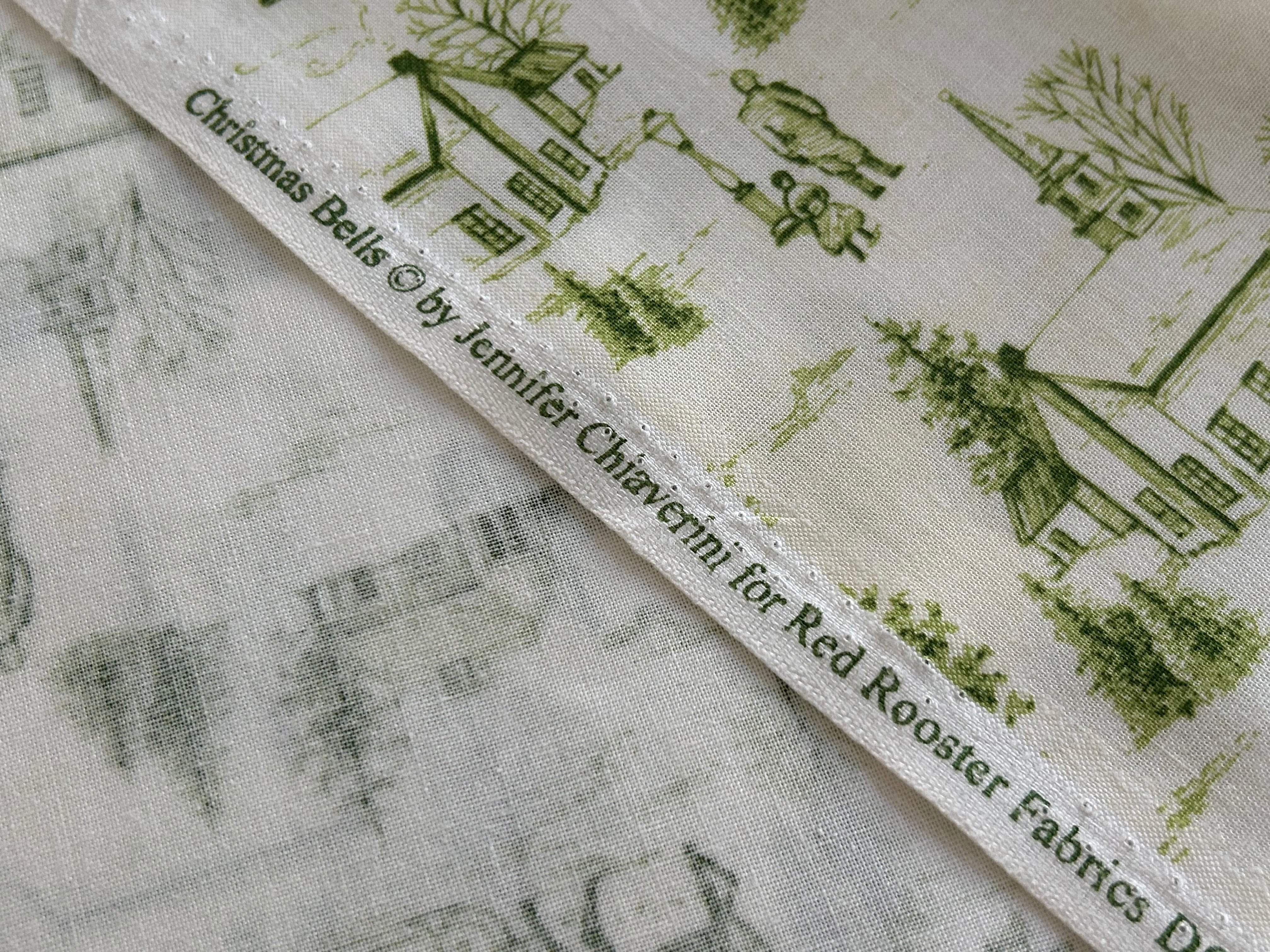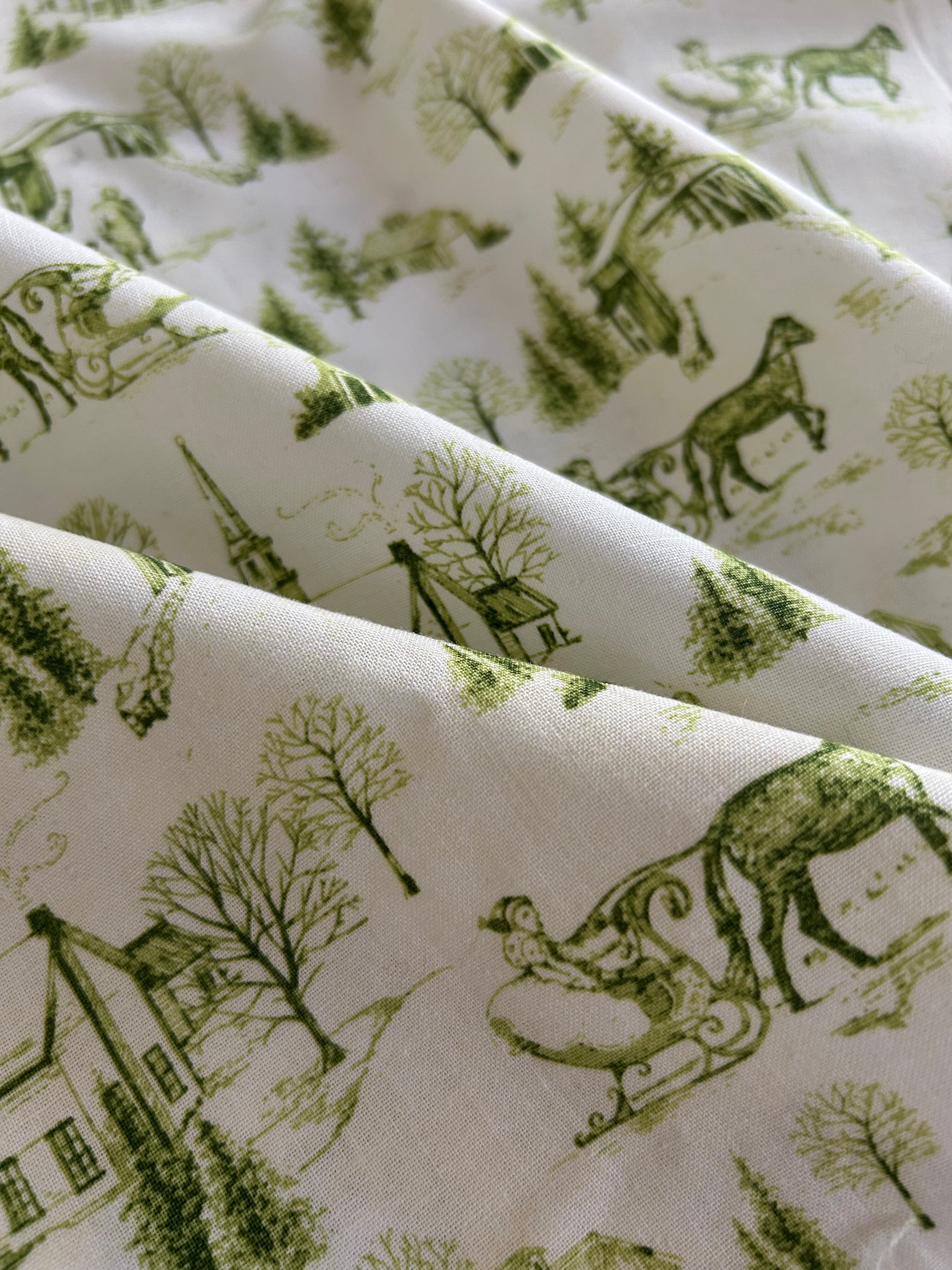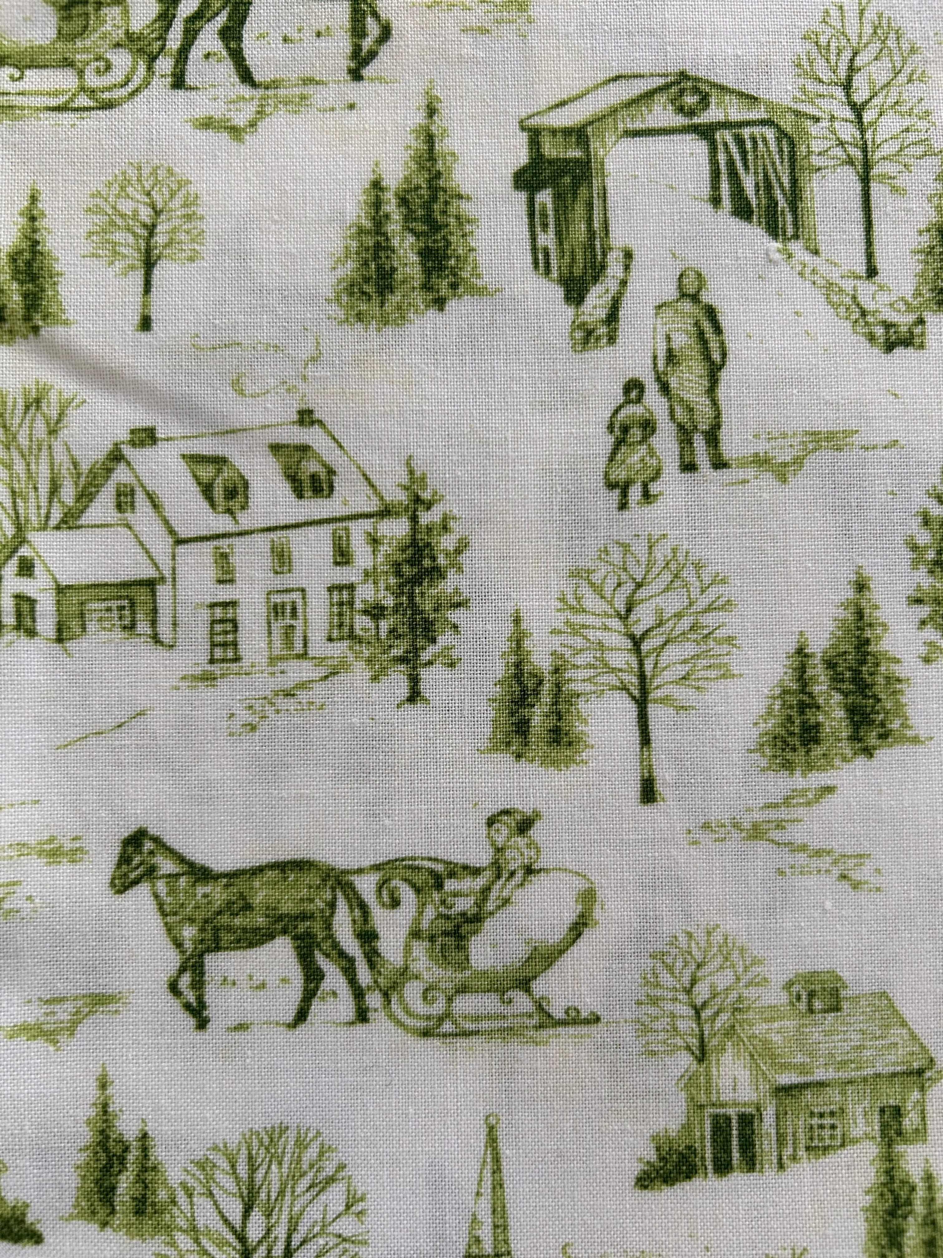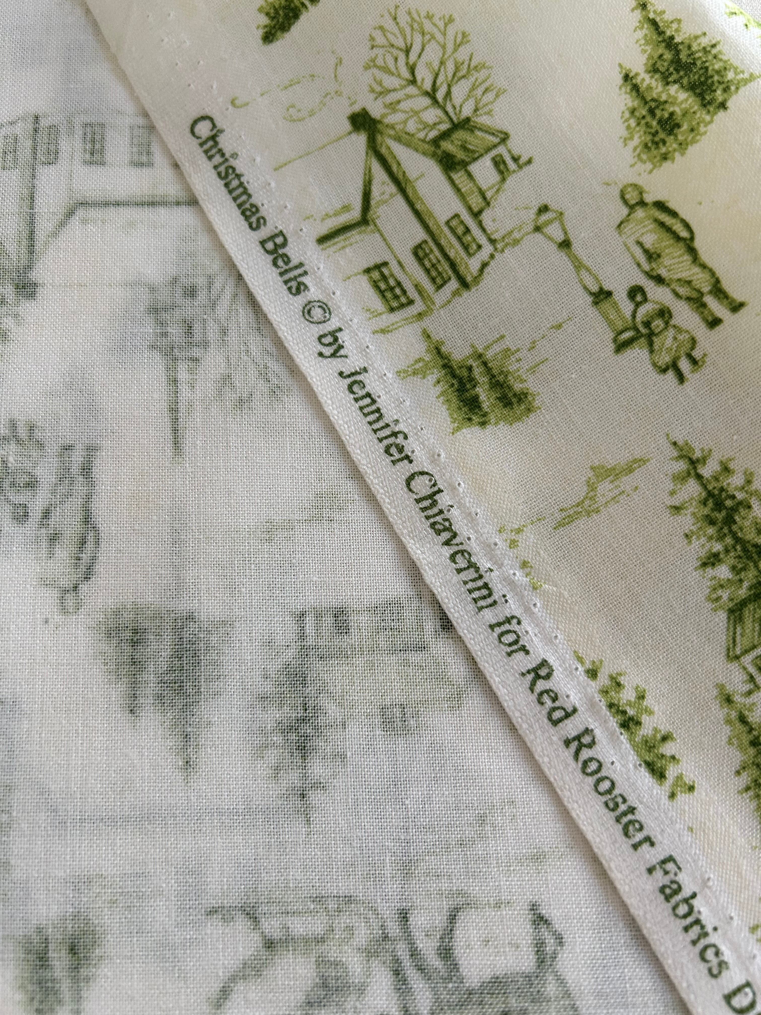 USA 輸入コットンファブリック Christmas Bells クリスマスベル トワルドジュイ Toile de Jouy カーキ系 カルトナージュ Noel ノエル