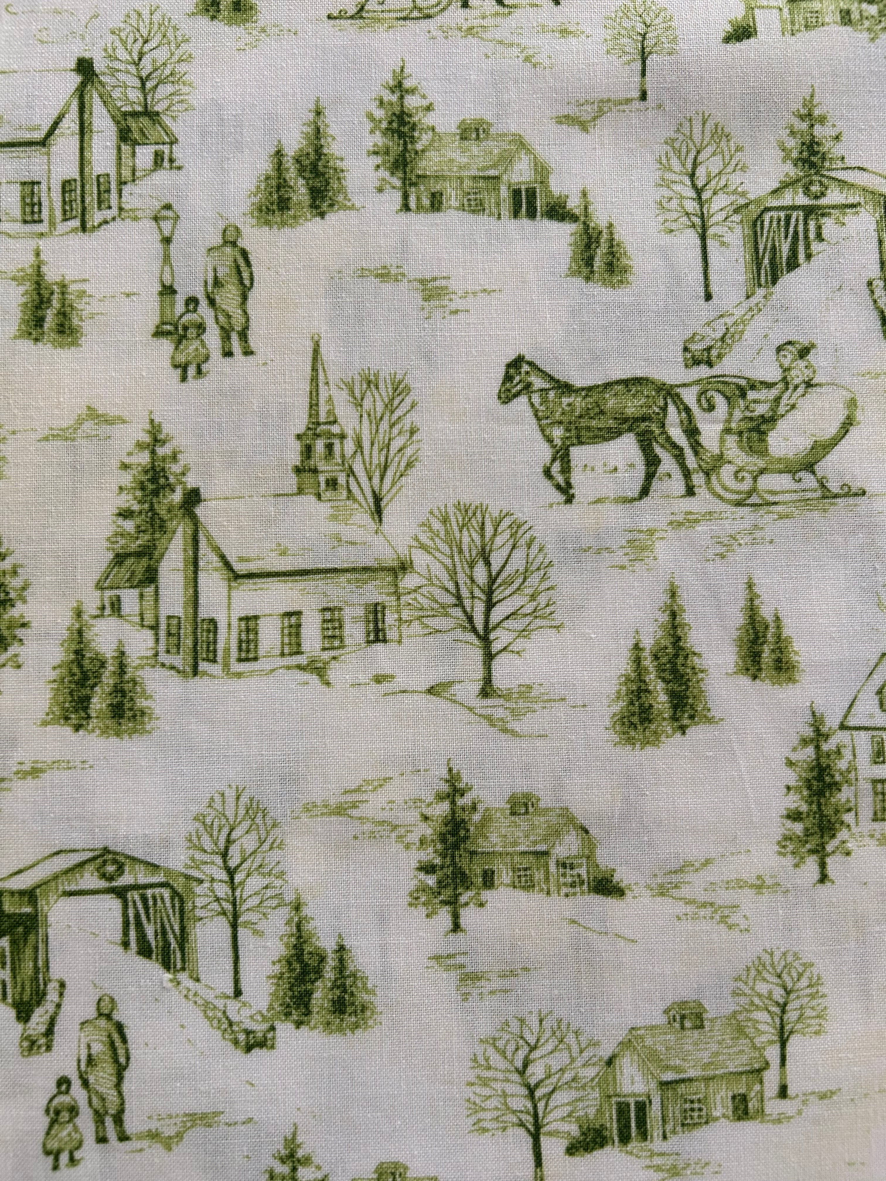 のどかな農村のクリスマスの風景がプリントされています。