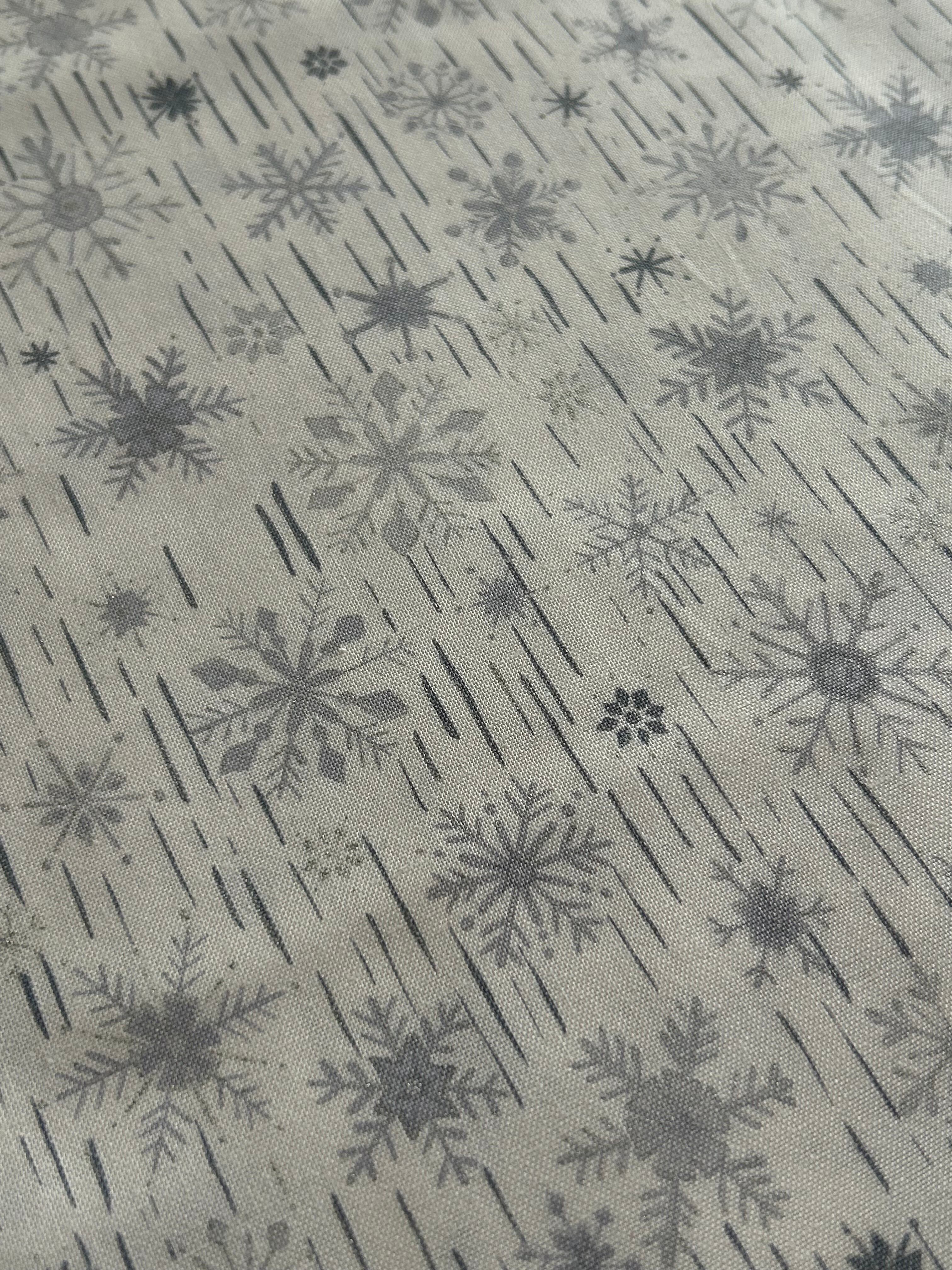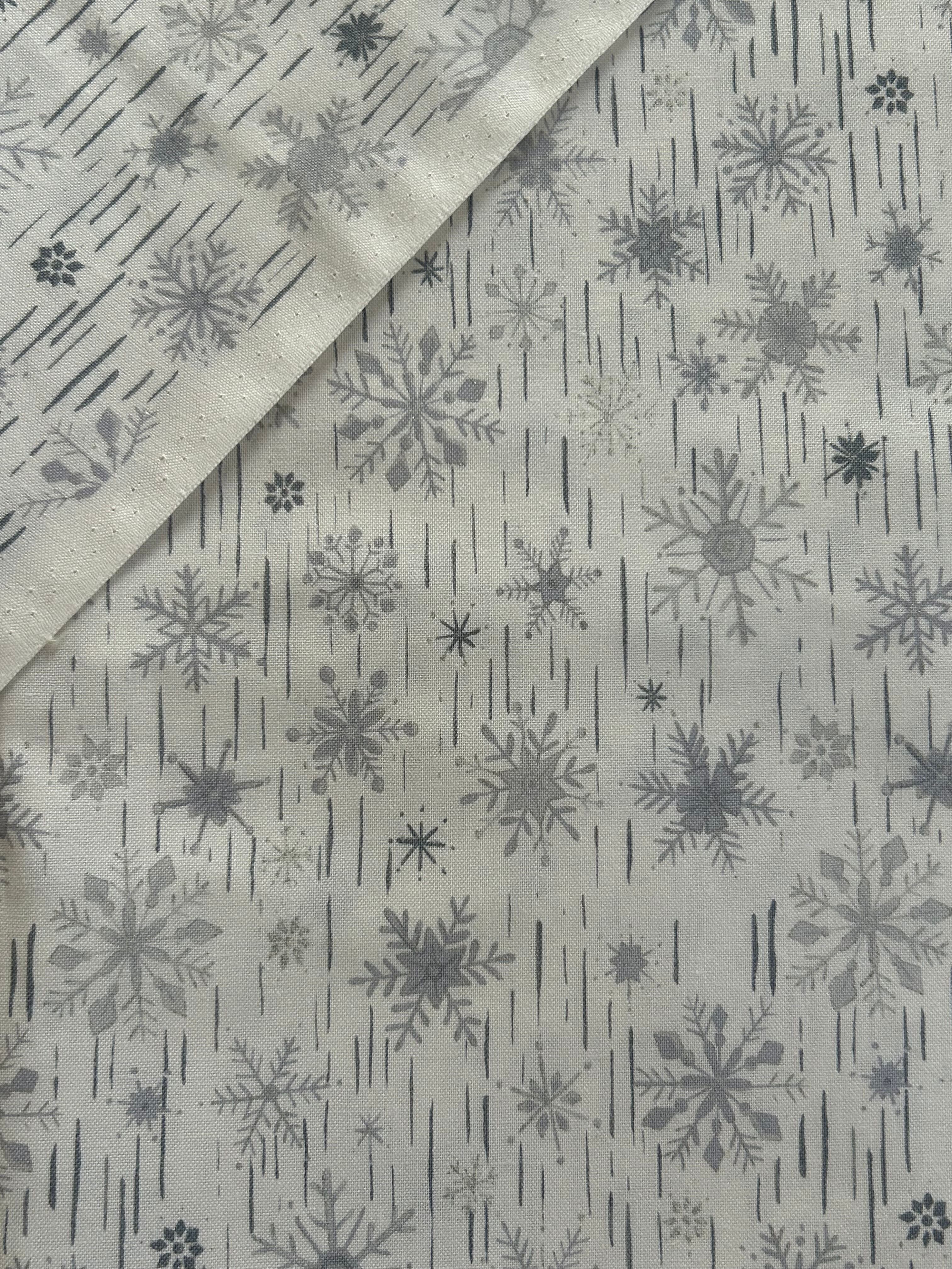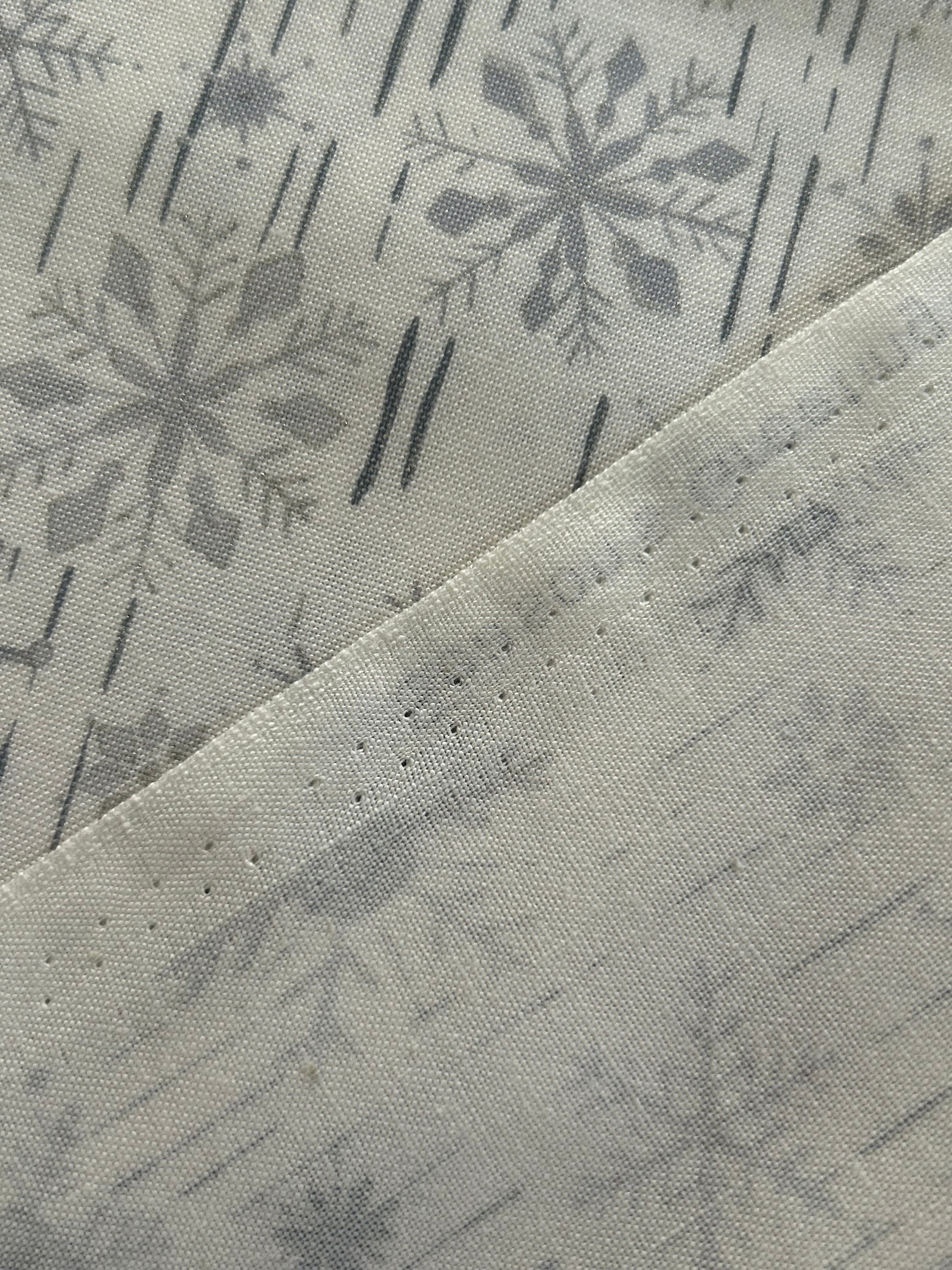 白地に一面シルバーグレーのスノーフレイクのデザインがプリントされています。