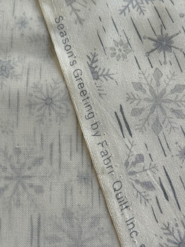 USA 輸入コットンファブリック スノーフレイク柄 雪の結晶 Season’s Greeting ホワイト×シルバー カルトナージュ 冬 クリスマス Noel