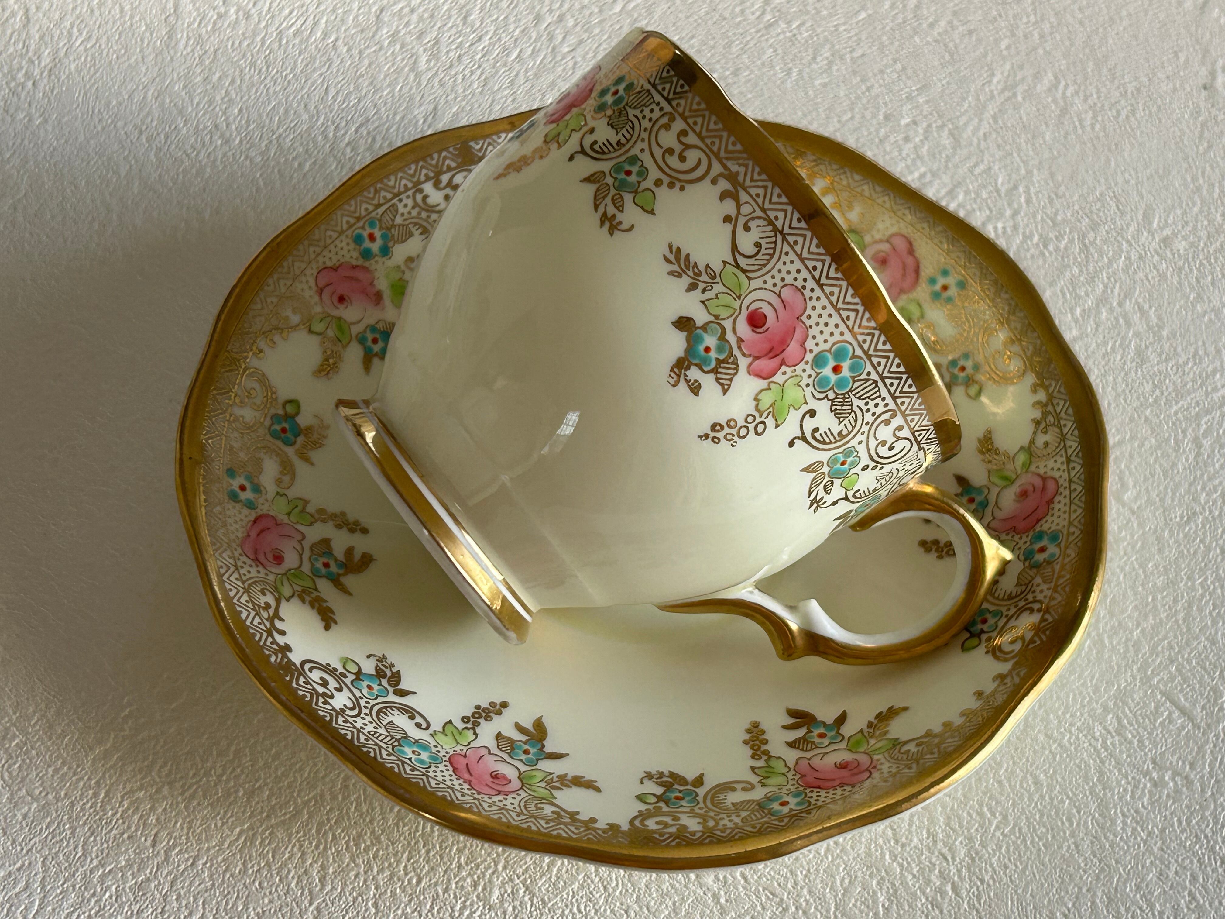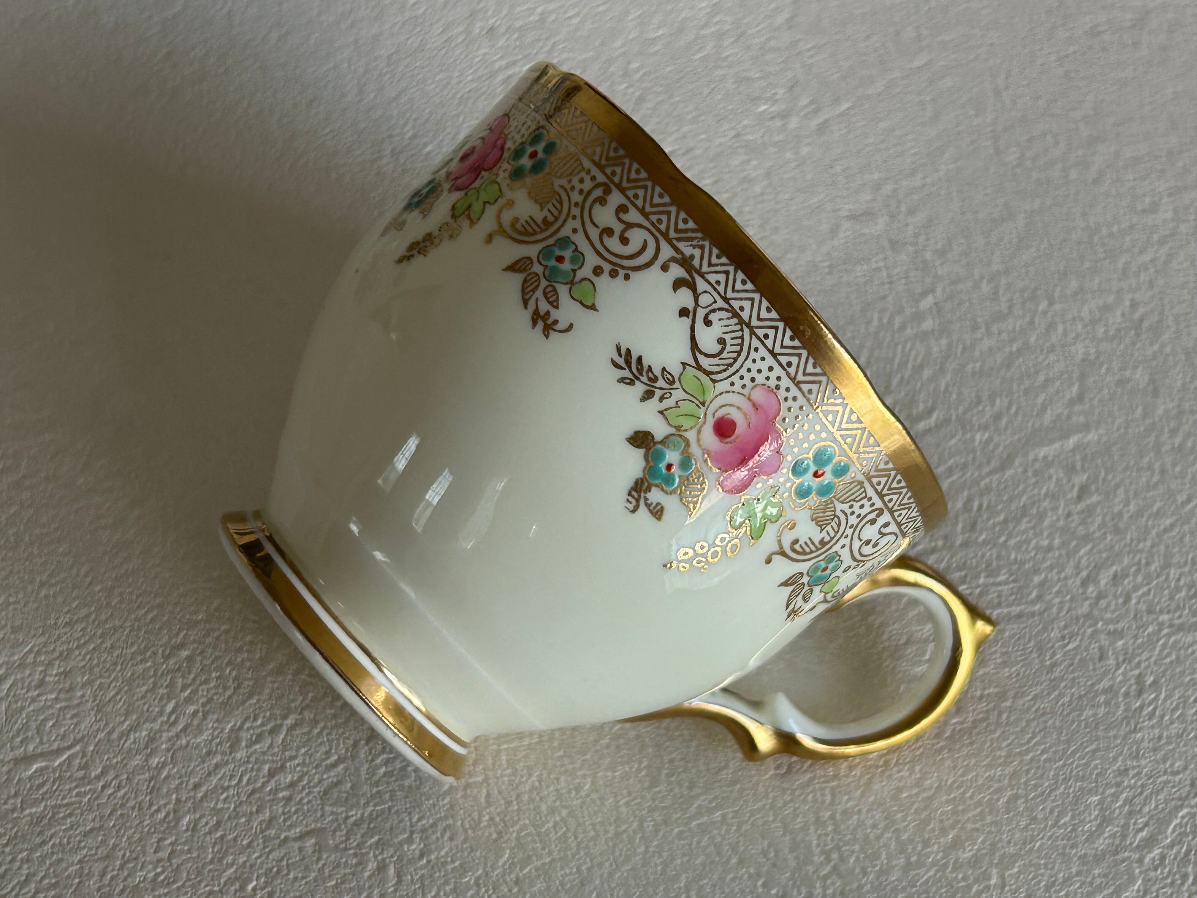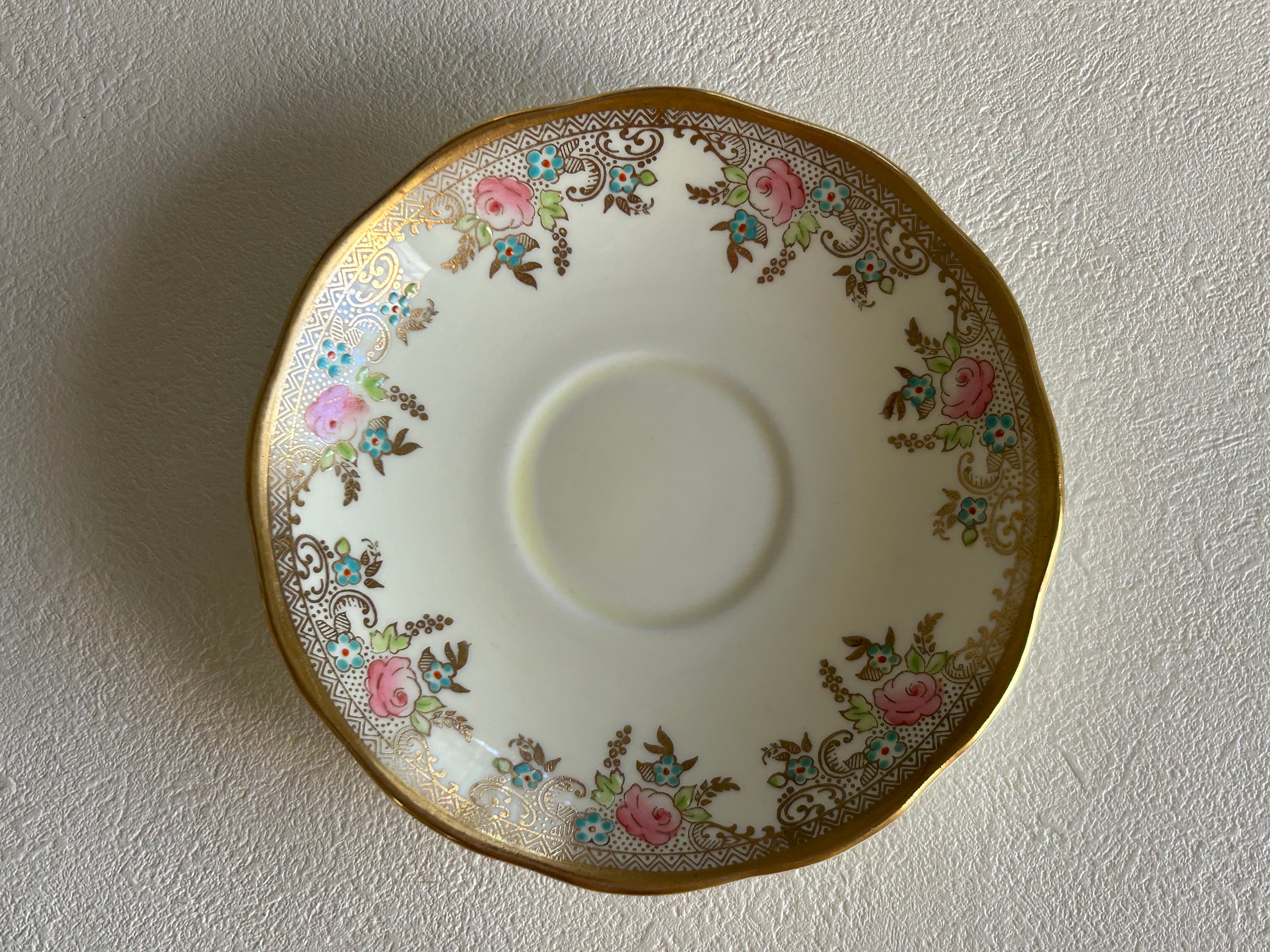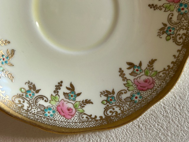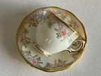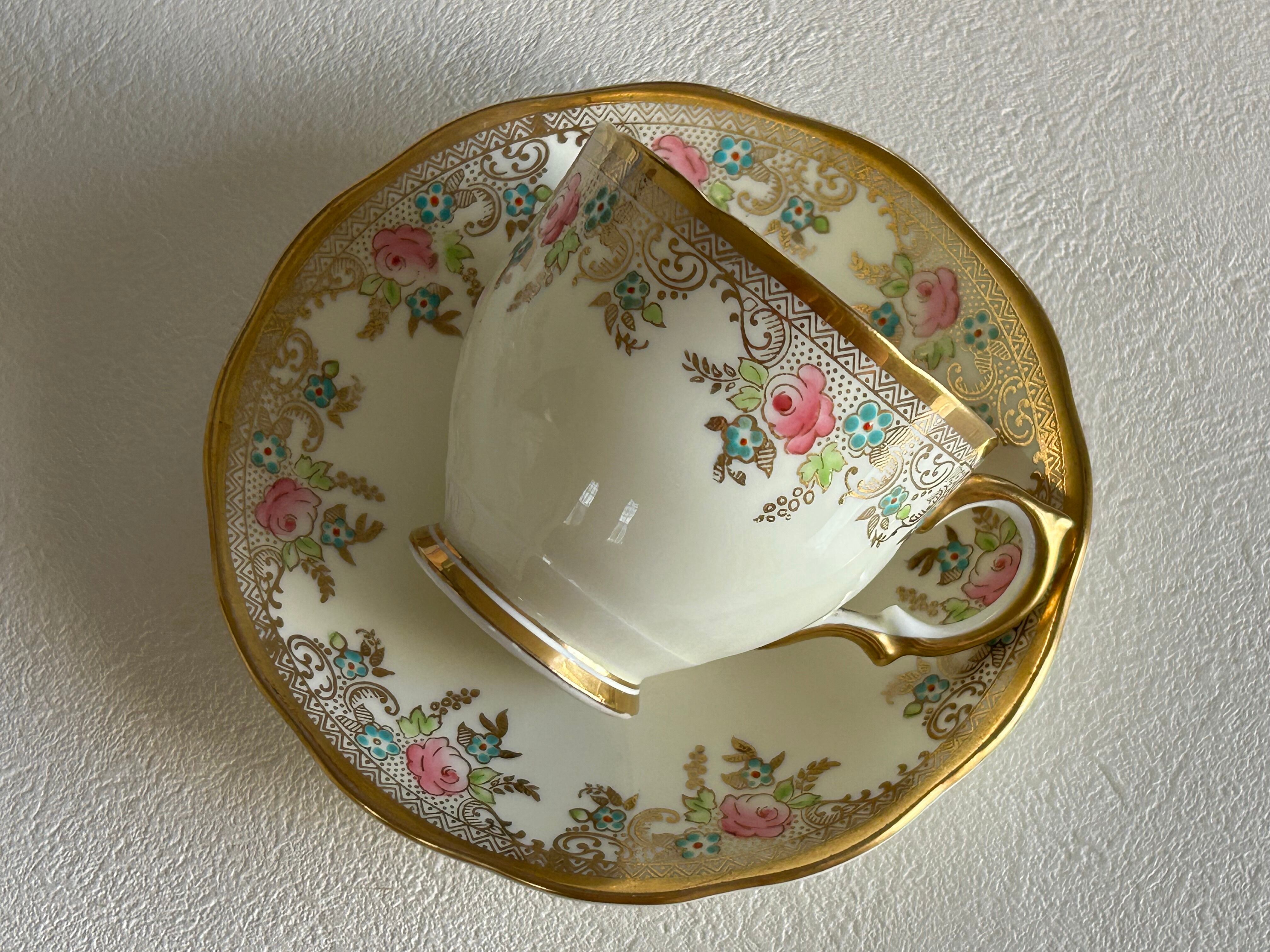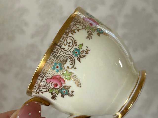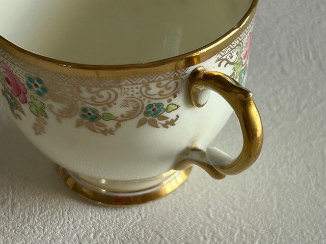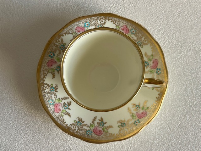 英国アンティーク カップ&ソーサー ① Salisbury China ソールズベリーチャイナ イギリス 1950年代 デュオ 薔薇 エナメル ハンドペイント 金彩