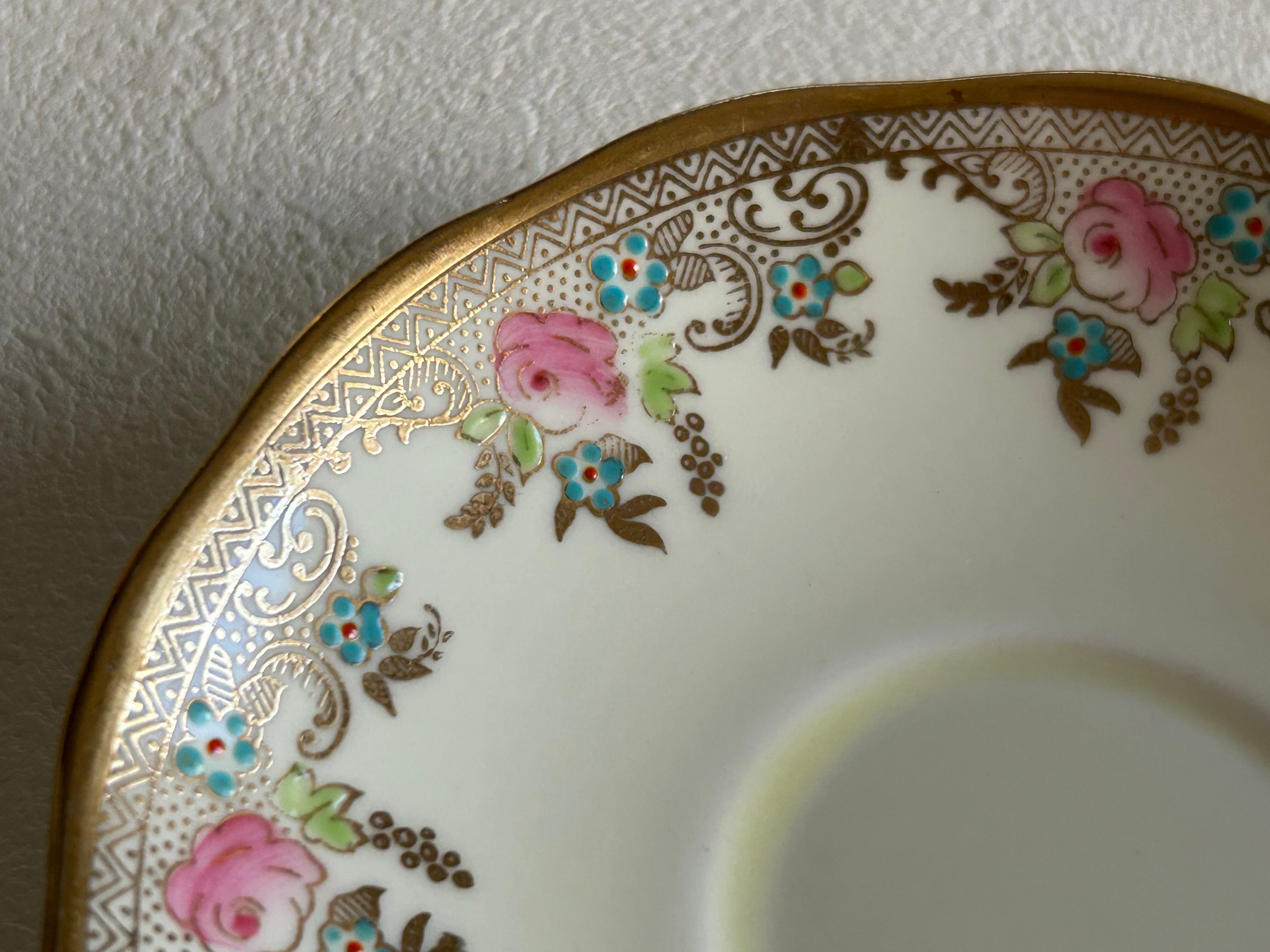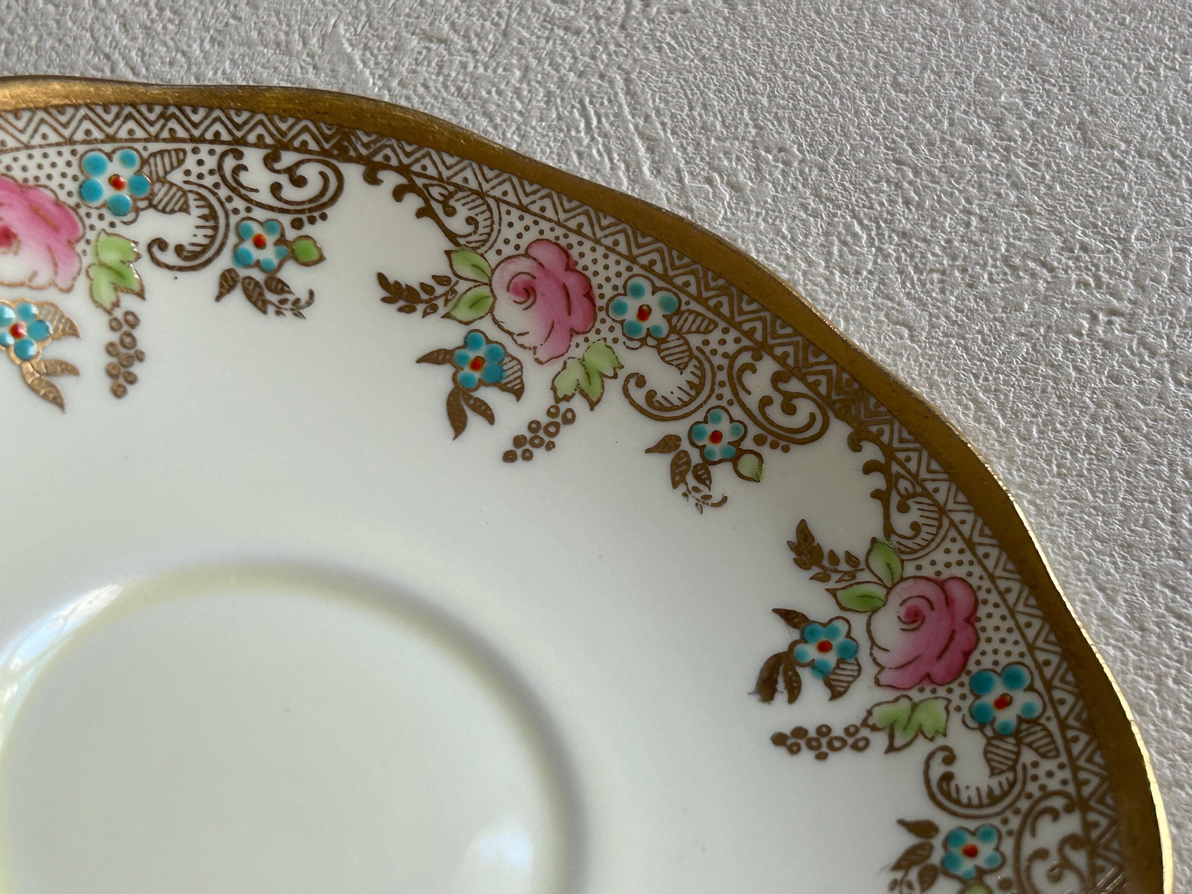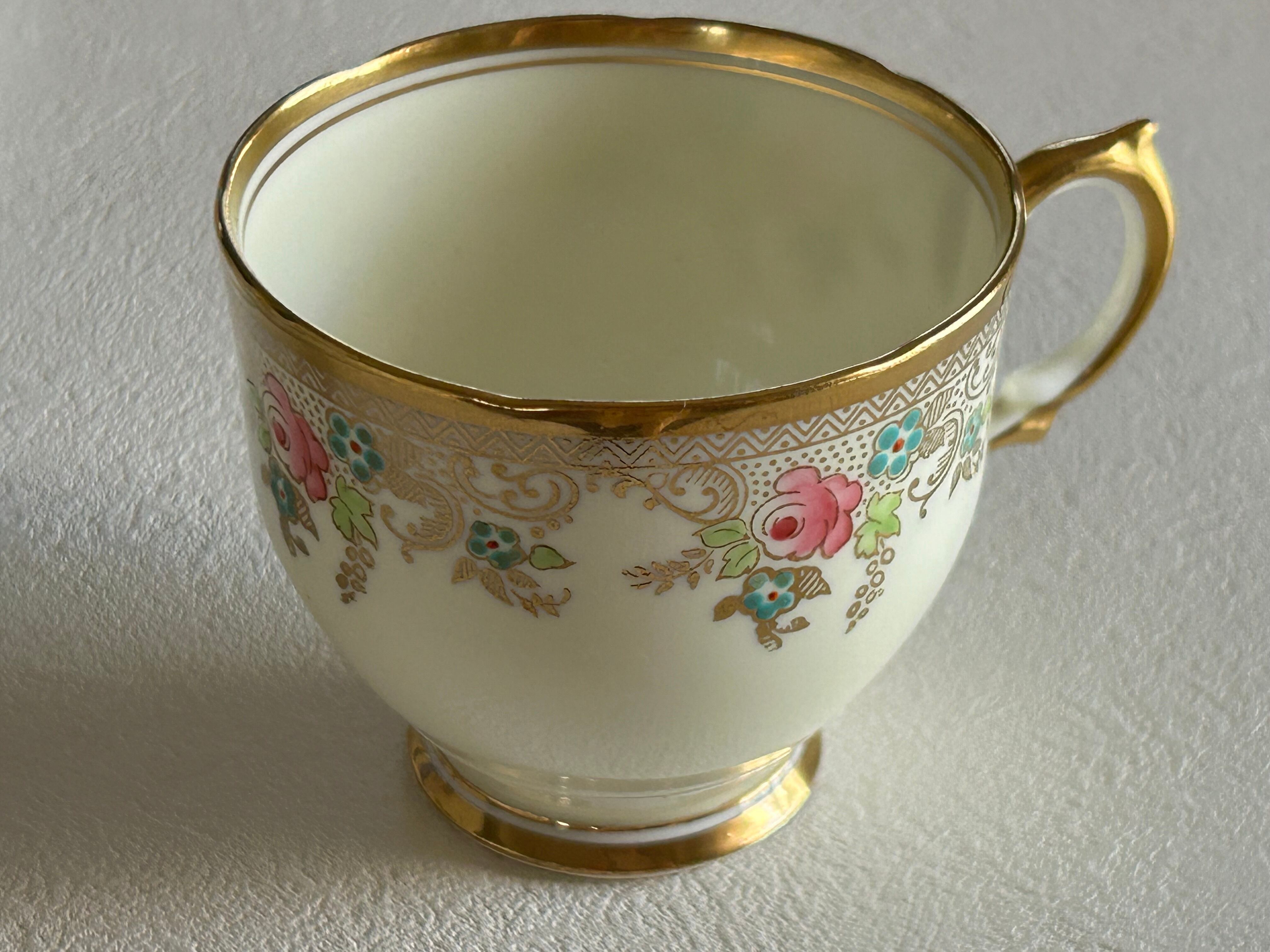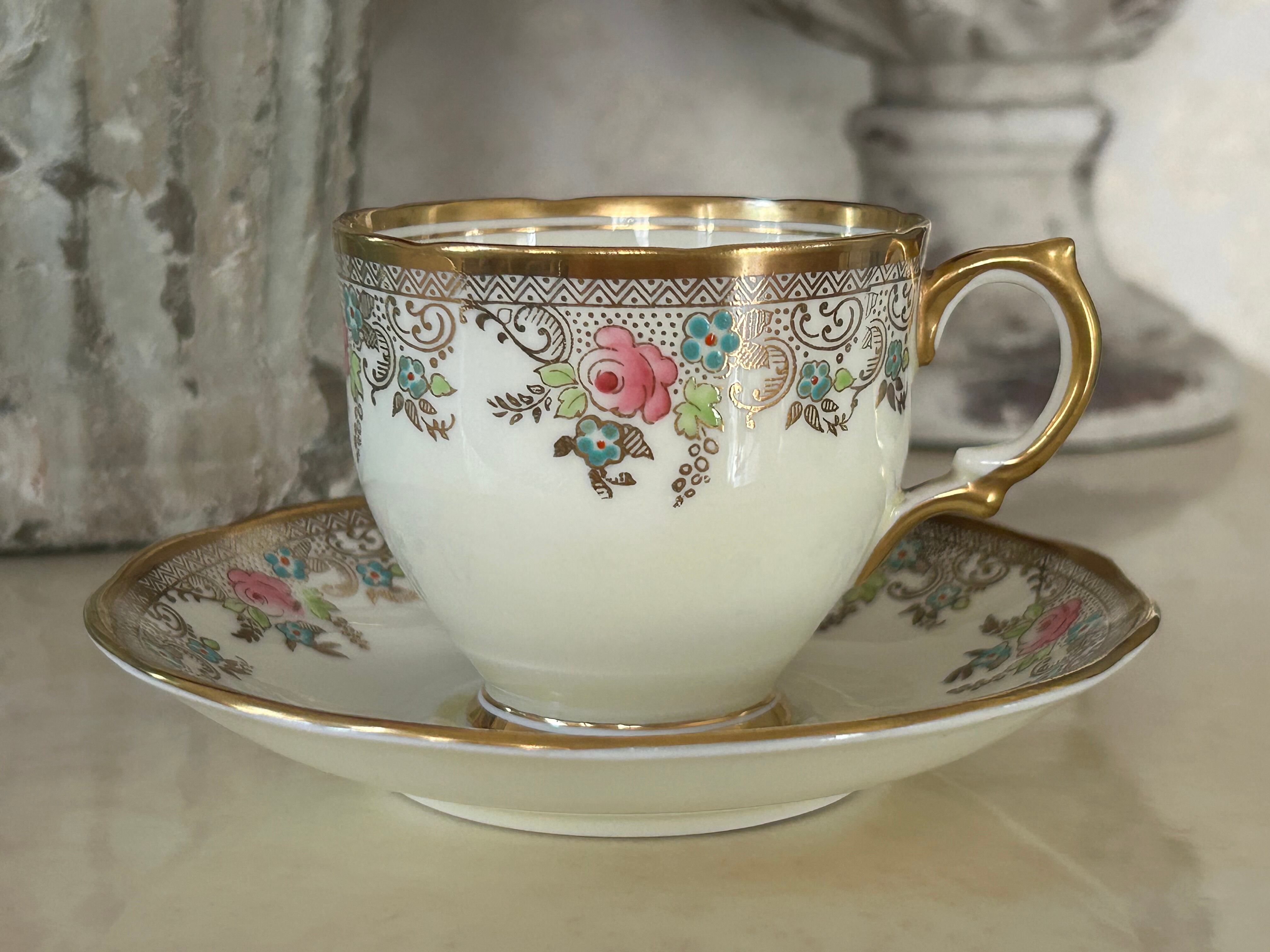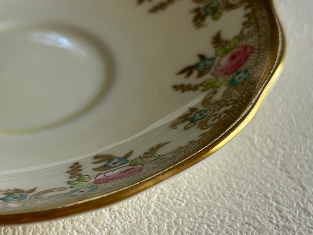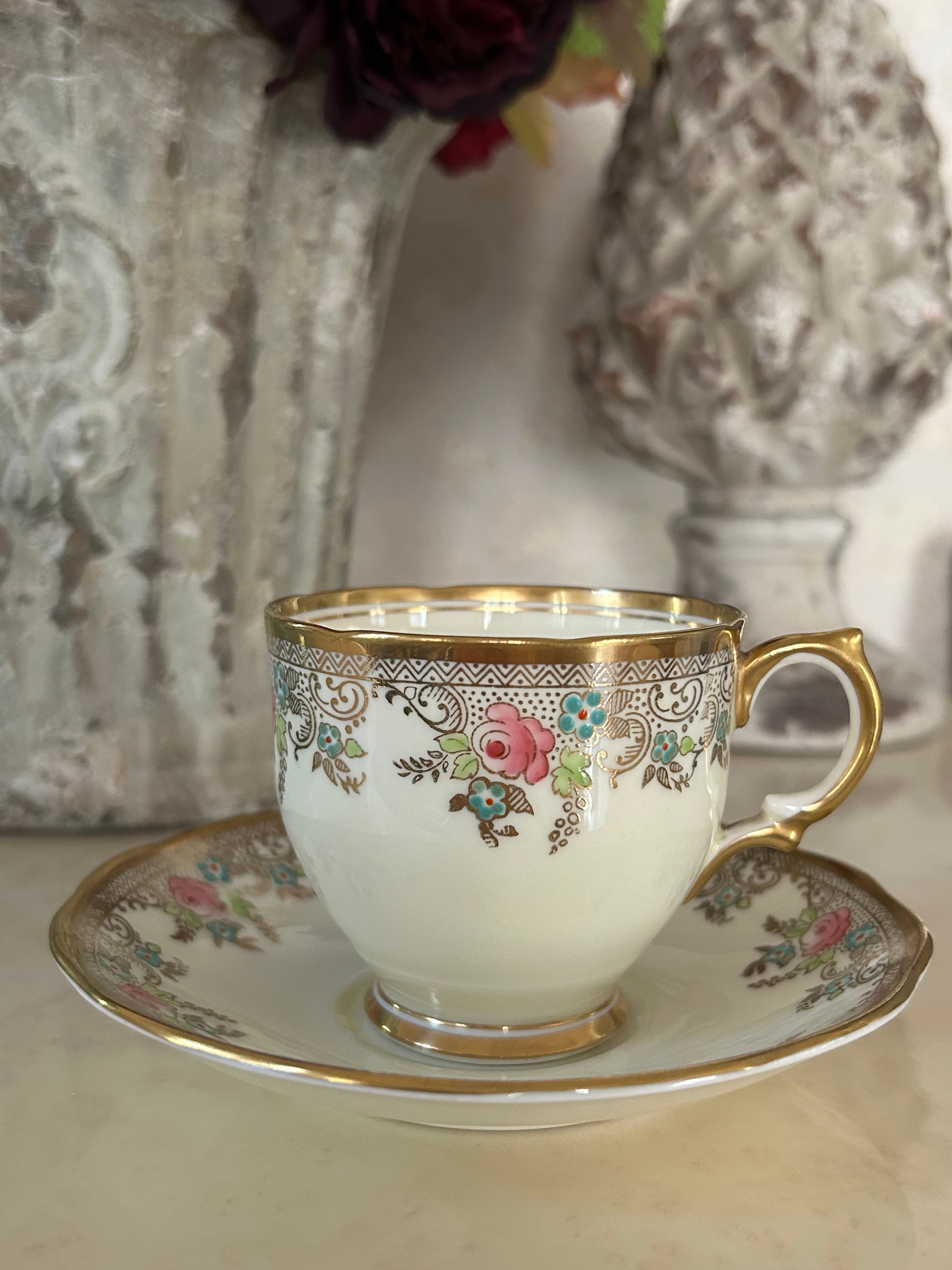英国アンティーク カップ&ソーサー ① Salisbury China ソールズベリーチャイナ イギリス 1950年代 デュオ 薔薇 エナメル ハンドペイント 金彩
