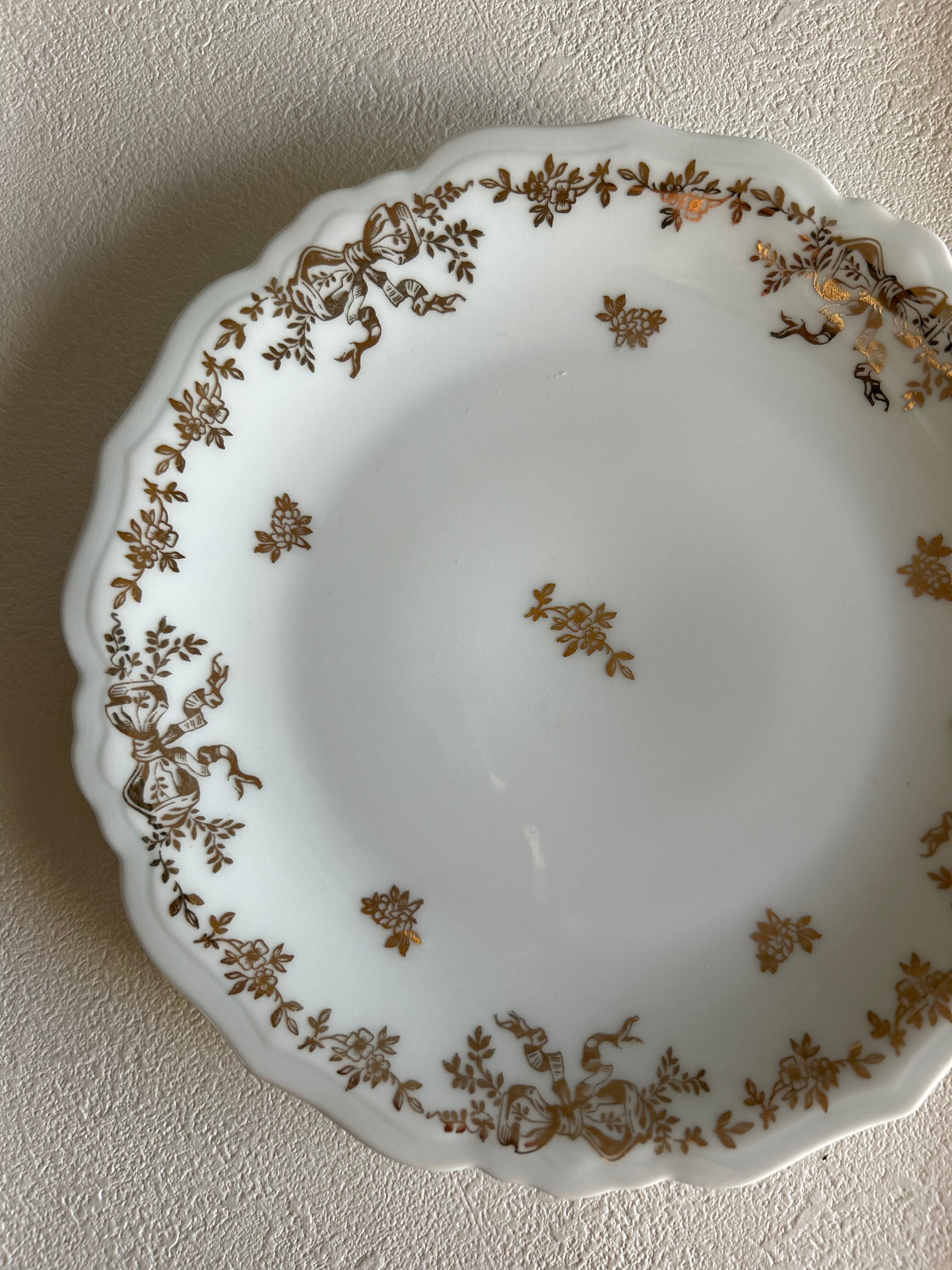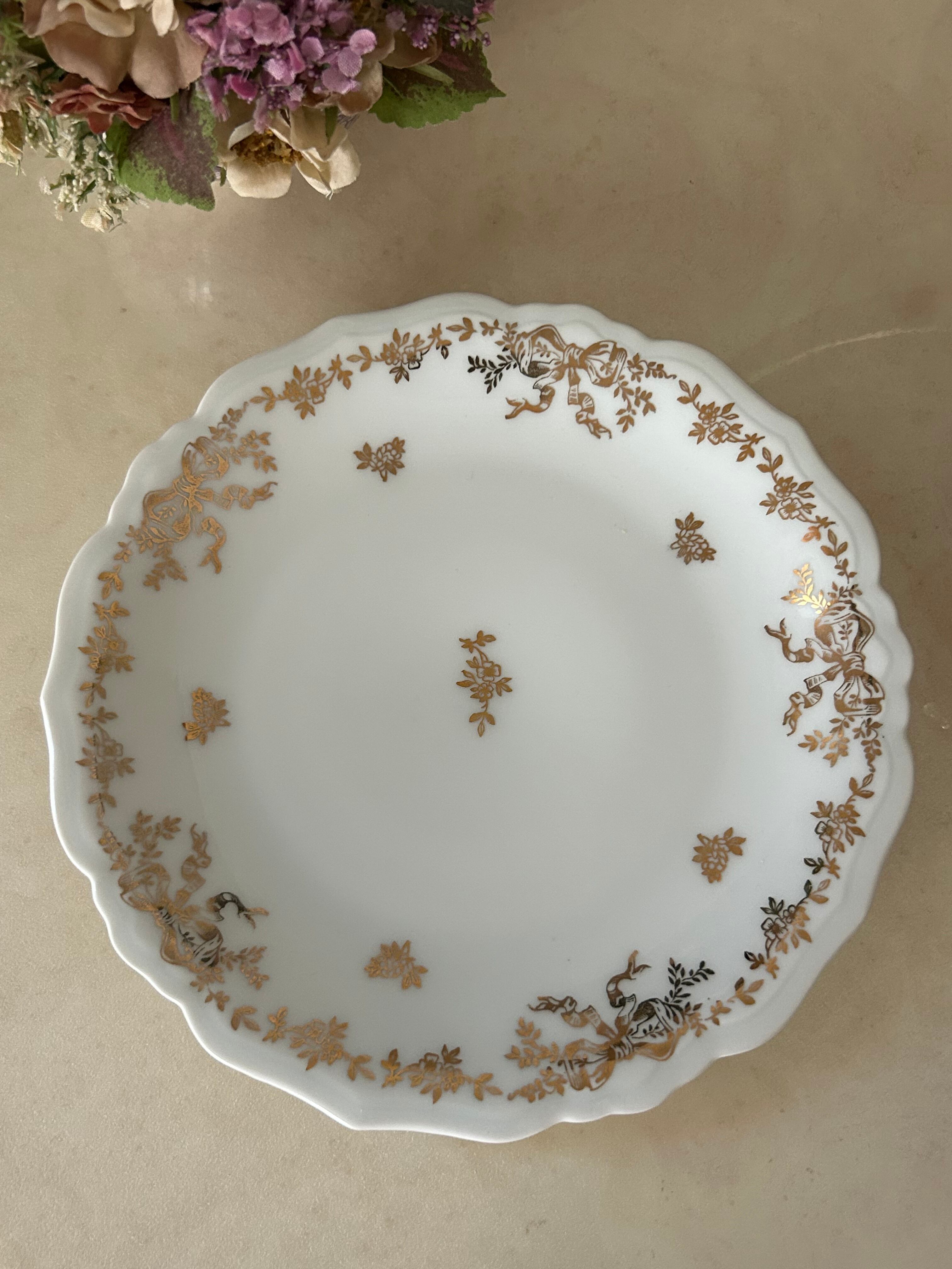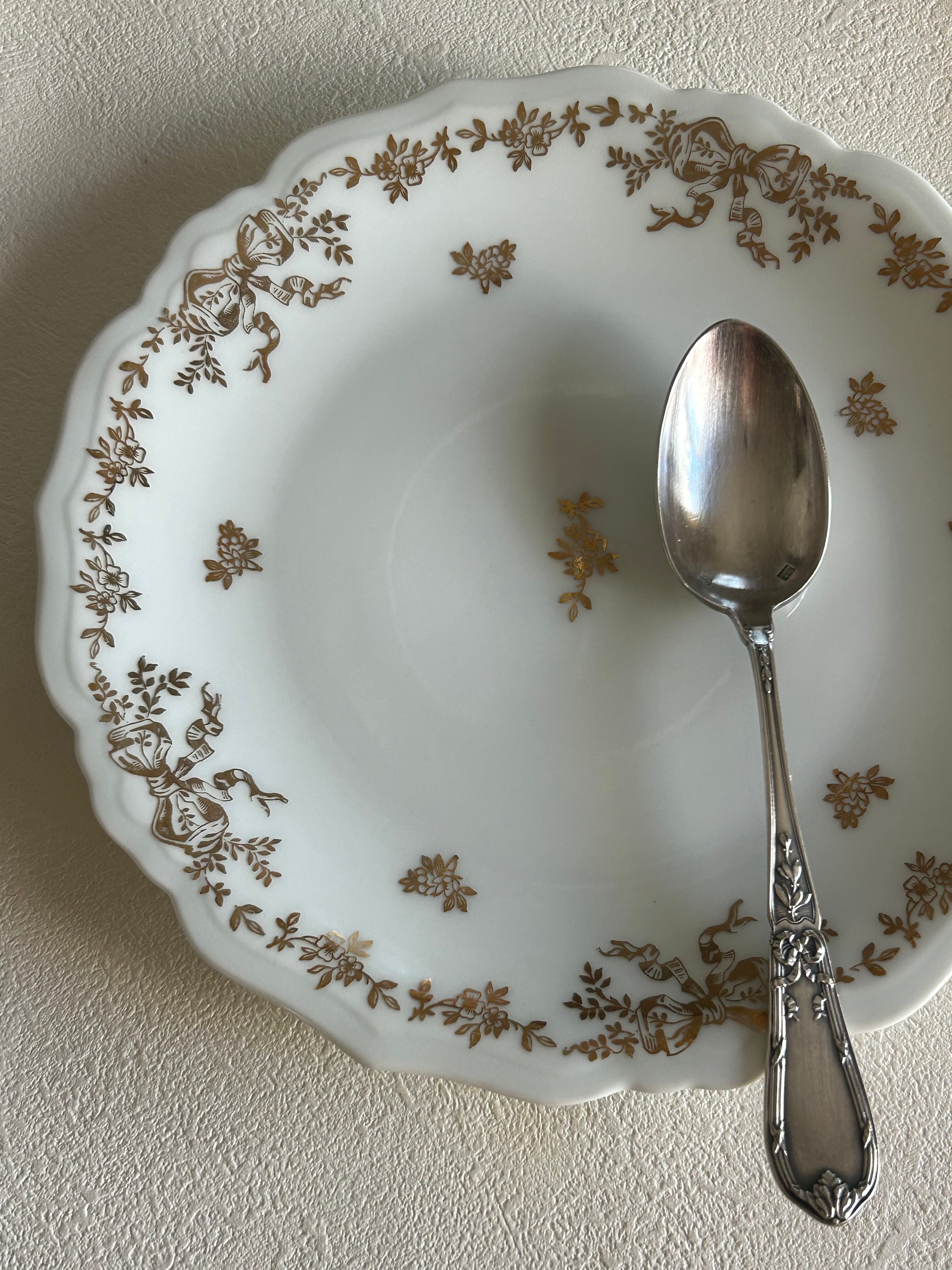フランスVintage LIOGES JAMMET SEIGNOLES ジャメ セニョール 18.1cm Ruban リボン柄 金彩 テーブルウェア