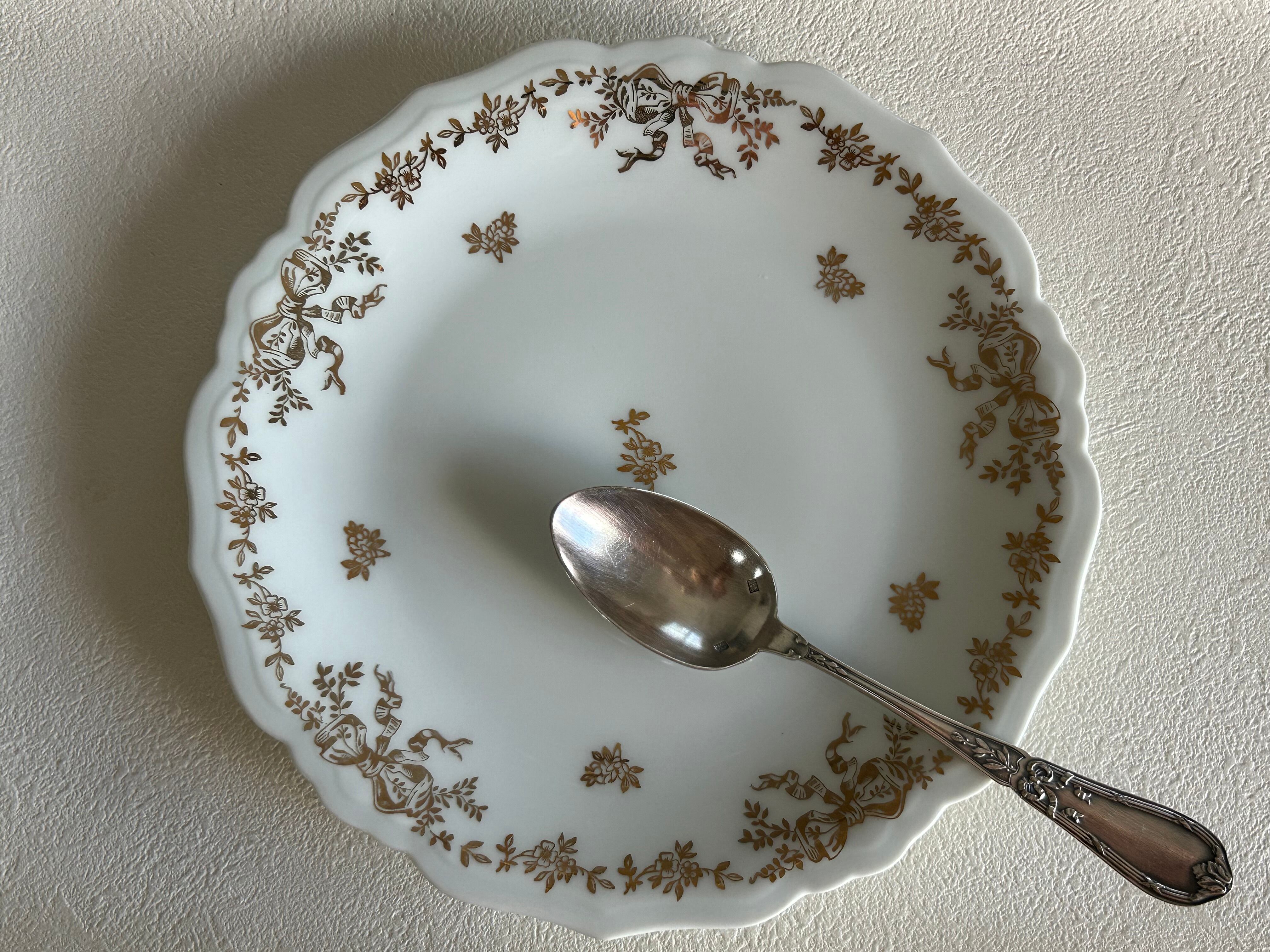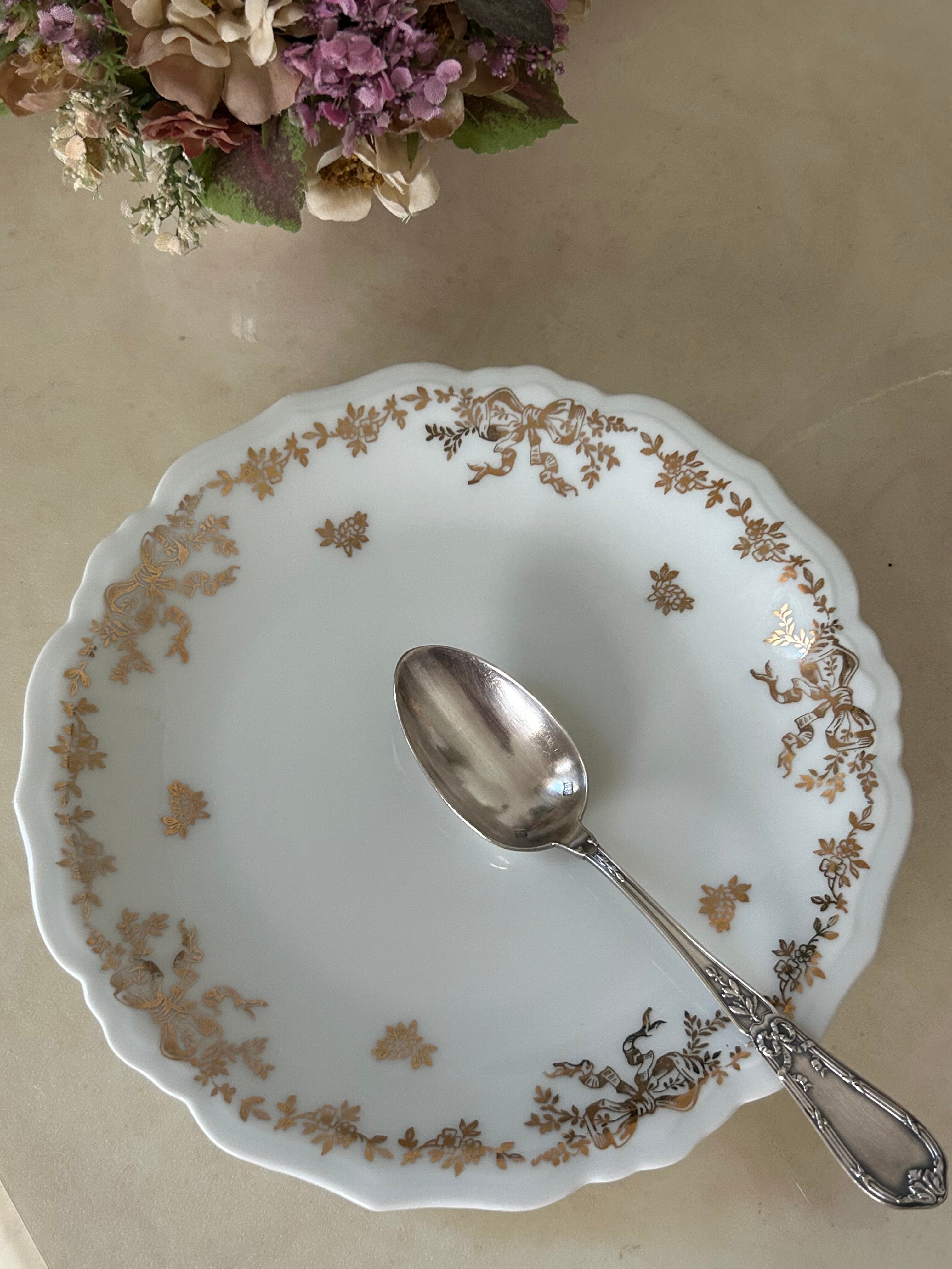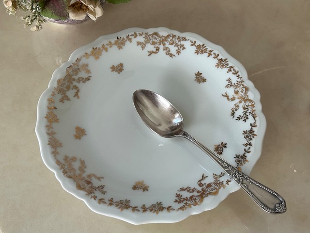 フランスVintage LIOGES JAMMET SEIGNOLES ジャメ セニョール 18.1cm Ruban リボン柄 金彩 テーブルウェア