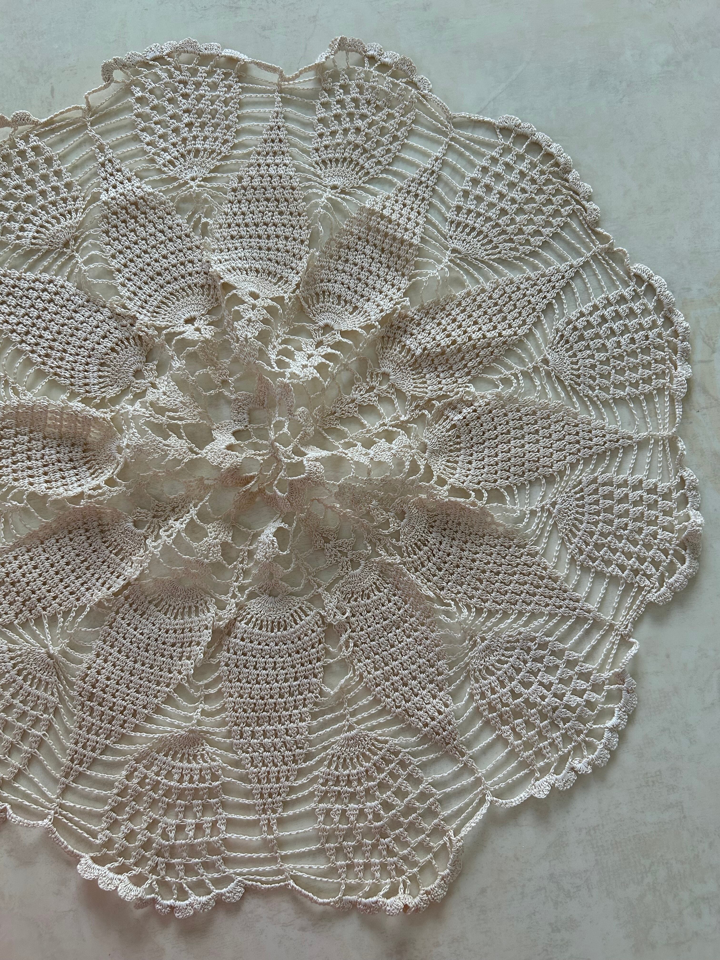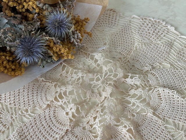 美しいお花が咲いたような存在感のある大判のドイリー。