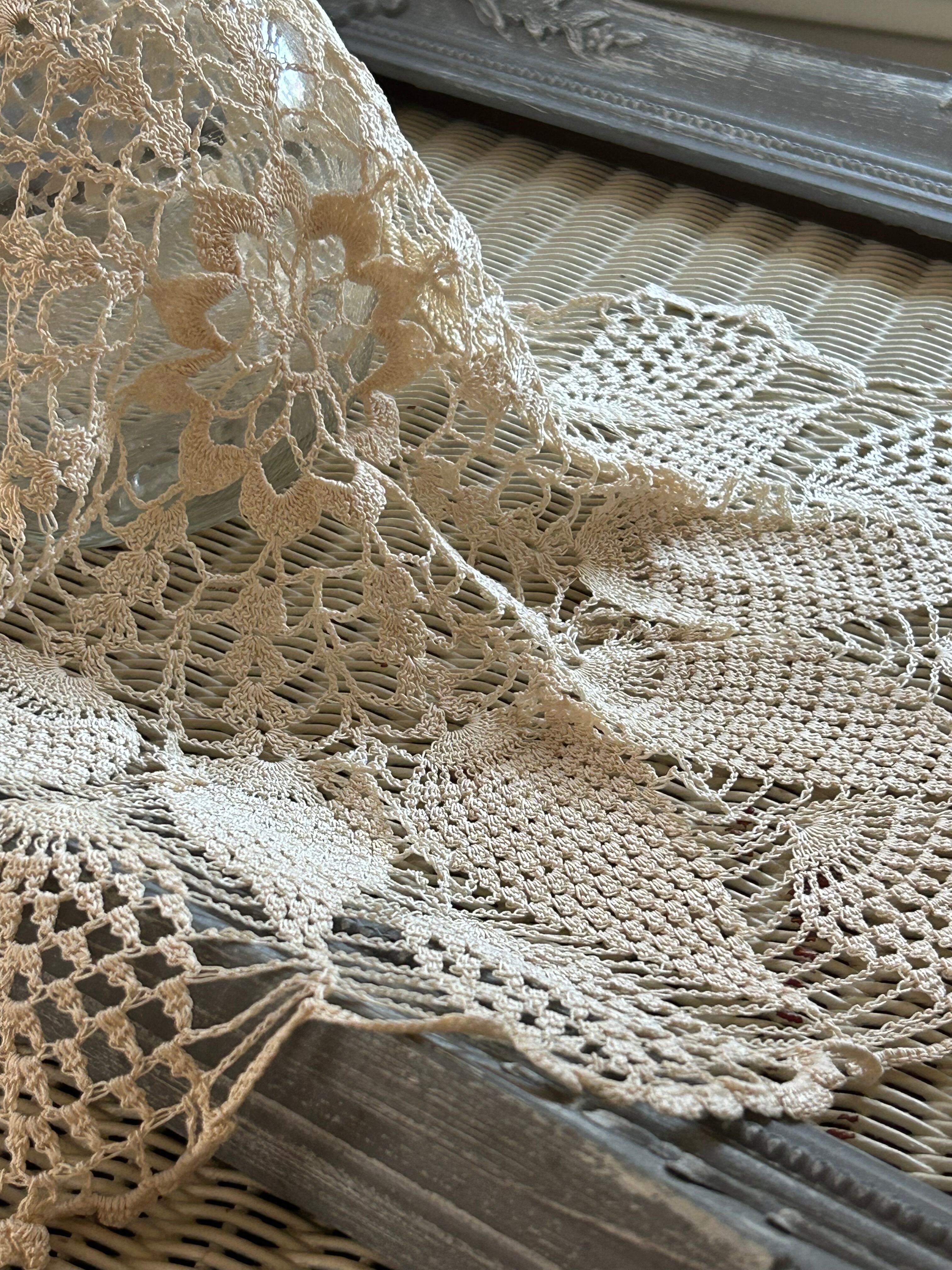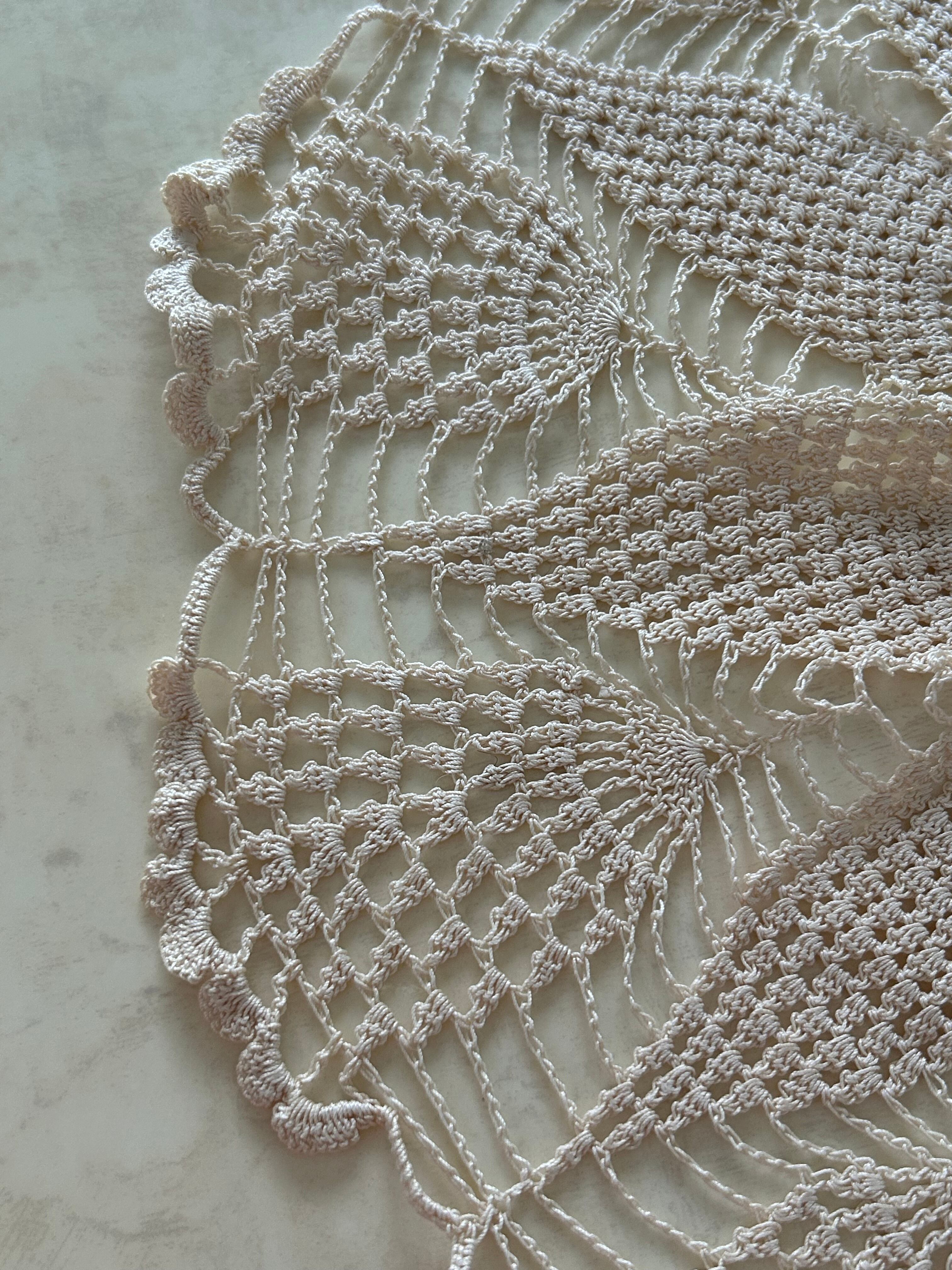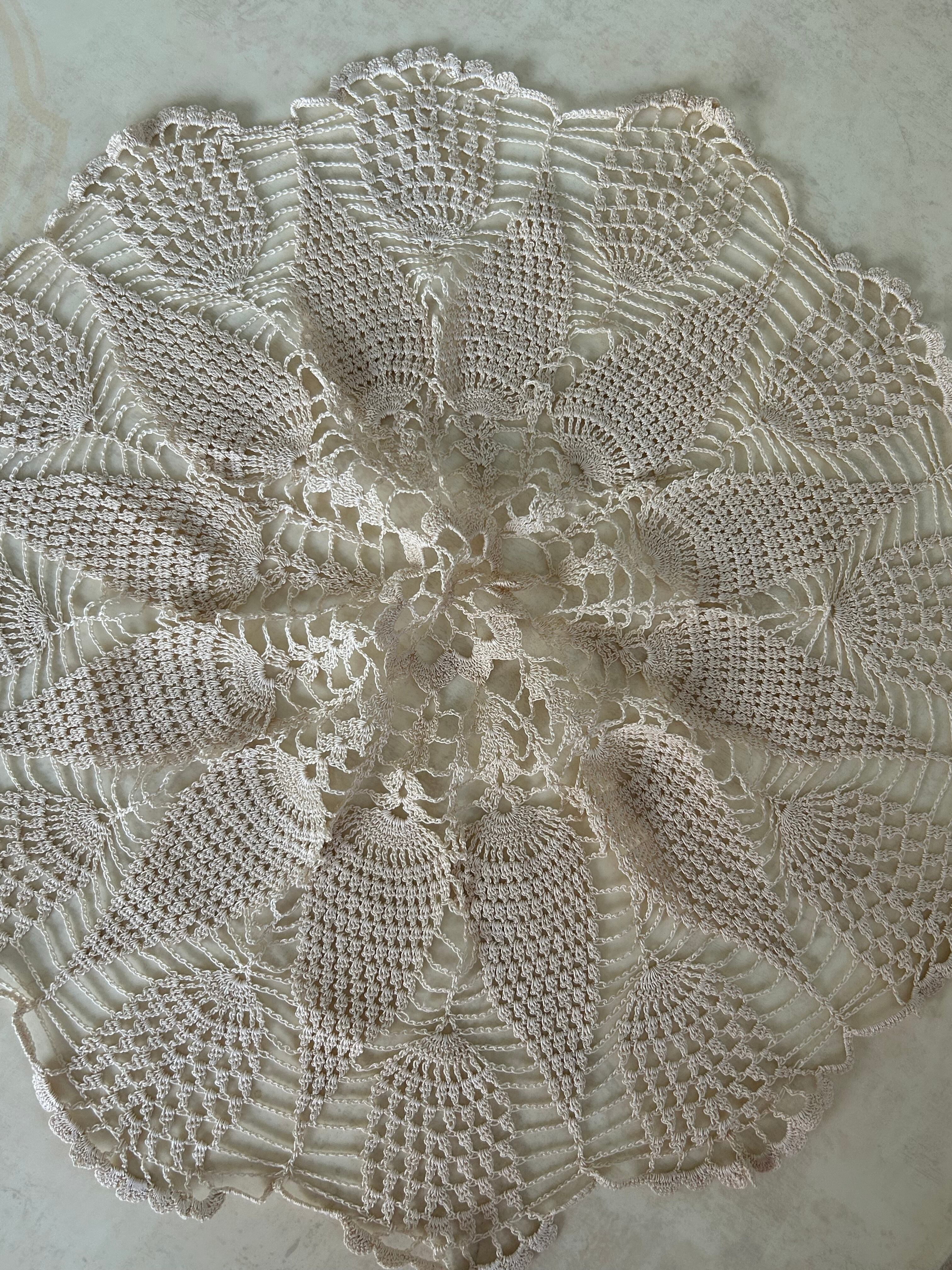 フランスVintage ヴィンテージ ドイリー クロッシェ 40cm レース ベージュ 大判 敷物 インテリア ハンドメイド素材 BE
