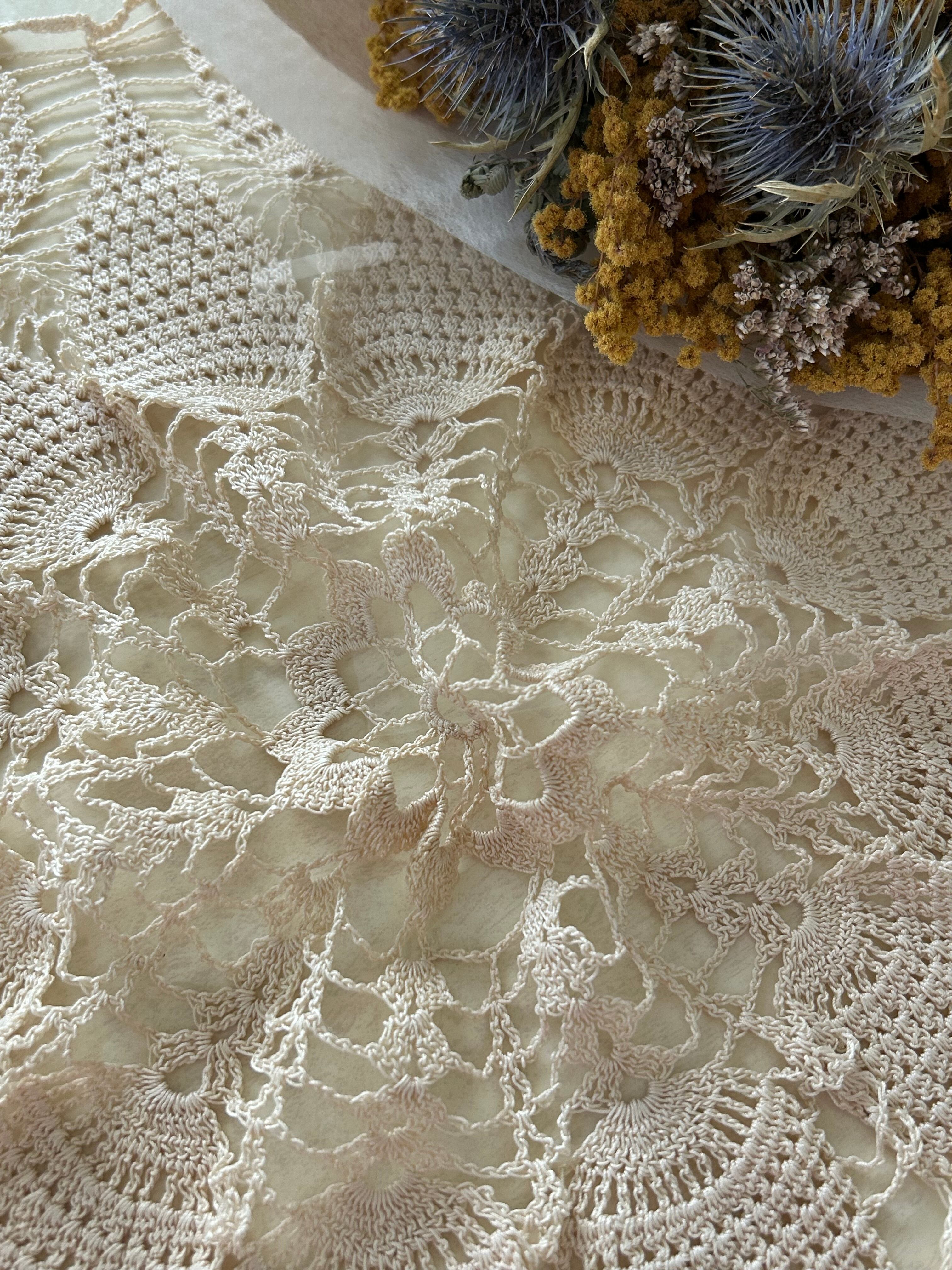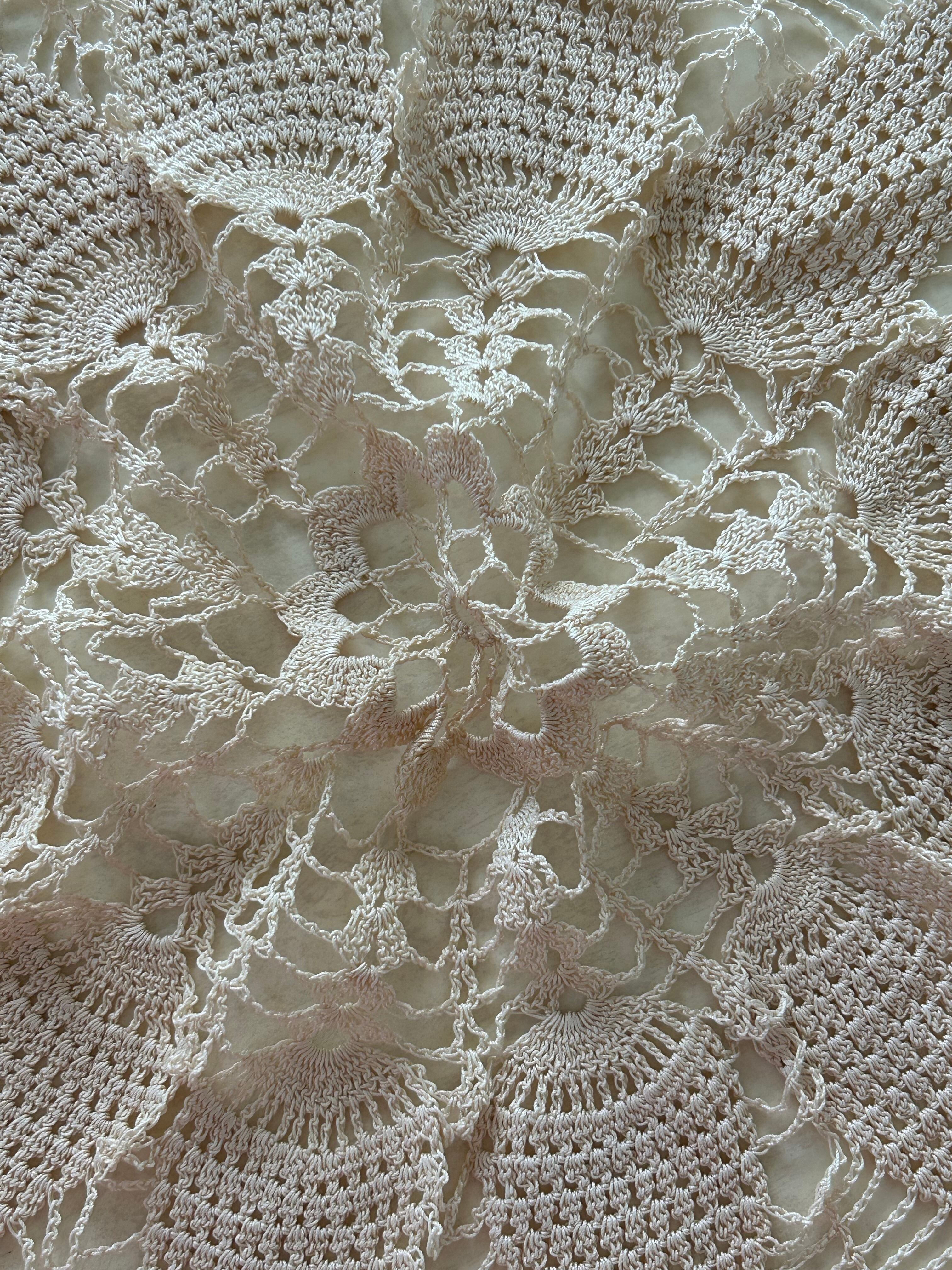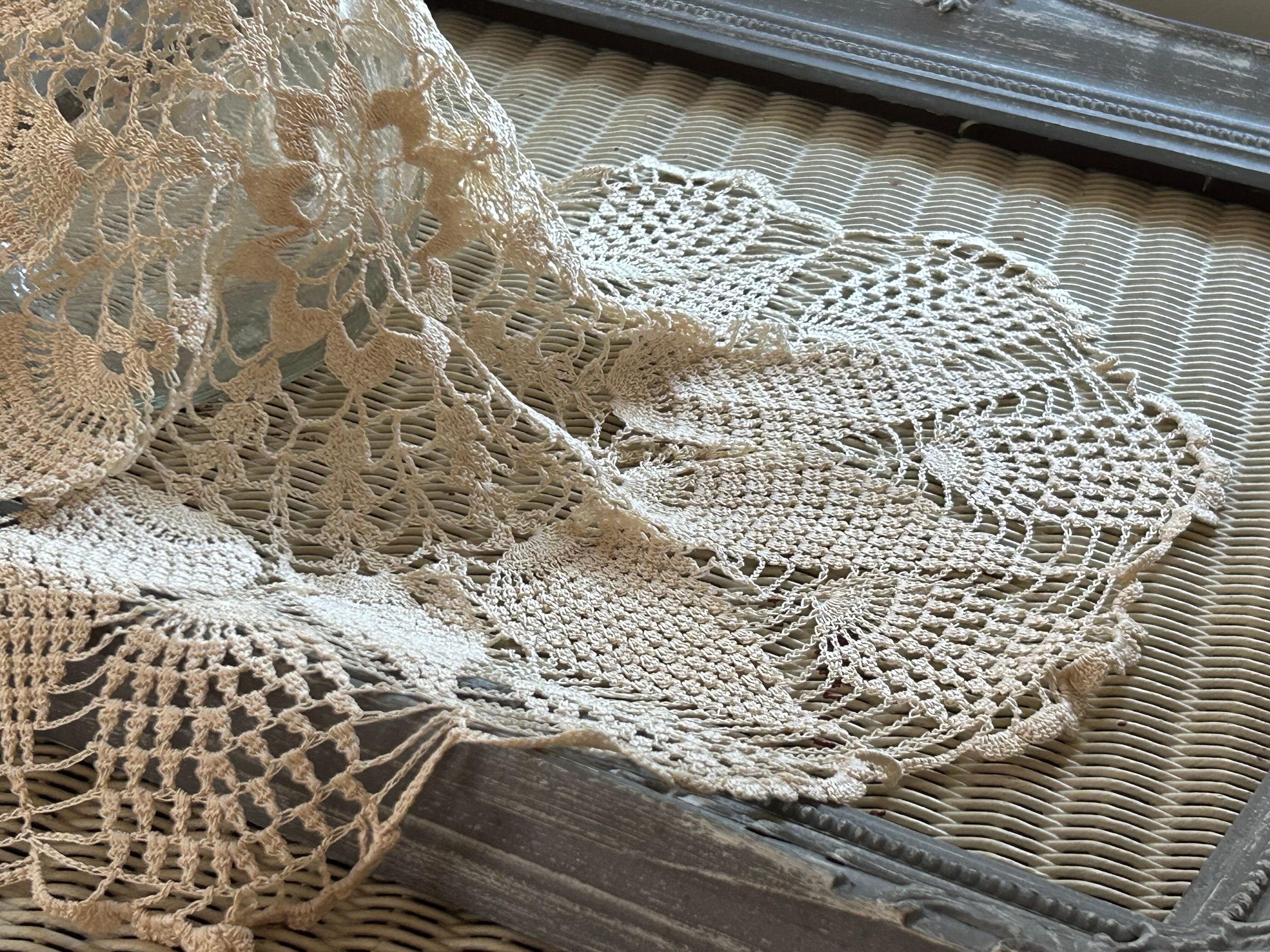 フランスVintage ヴィンテージ ドイリー クロッシェ 40cm レース ベージュ 大判 敷物 インテリア ハンドメイド素材 BE