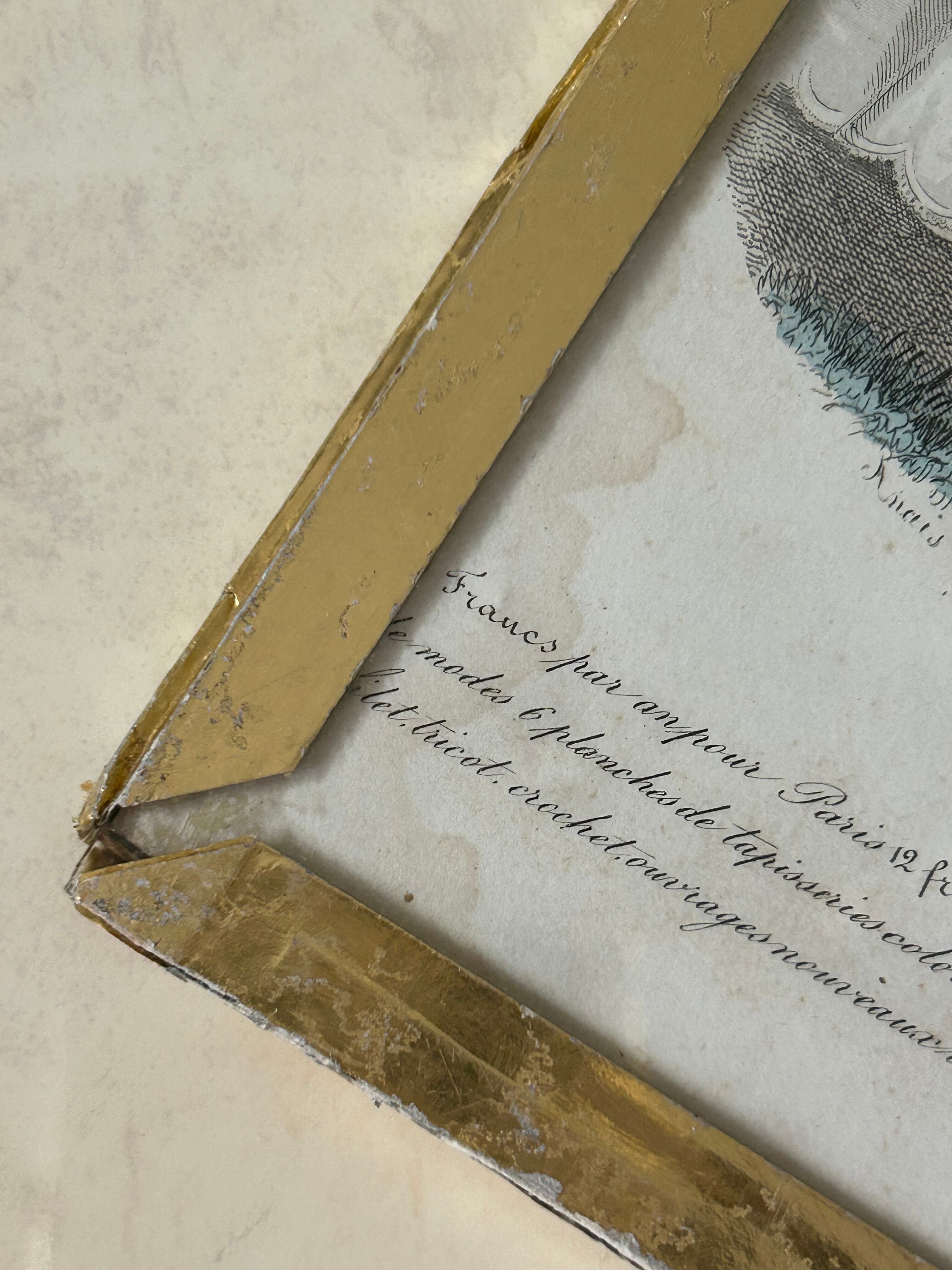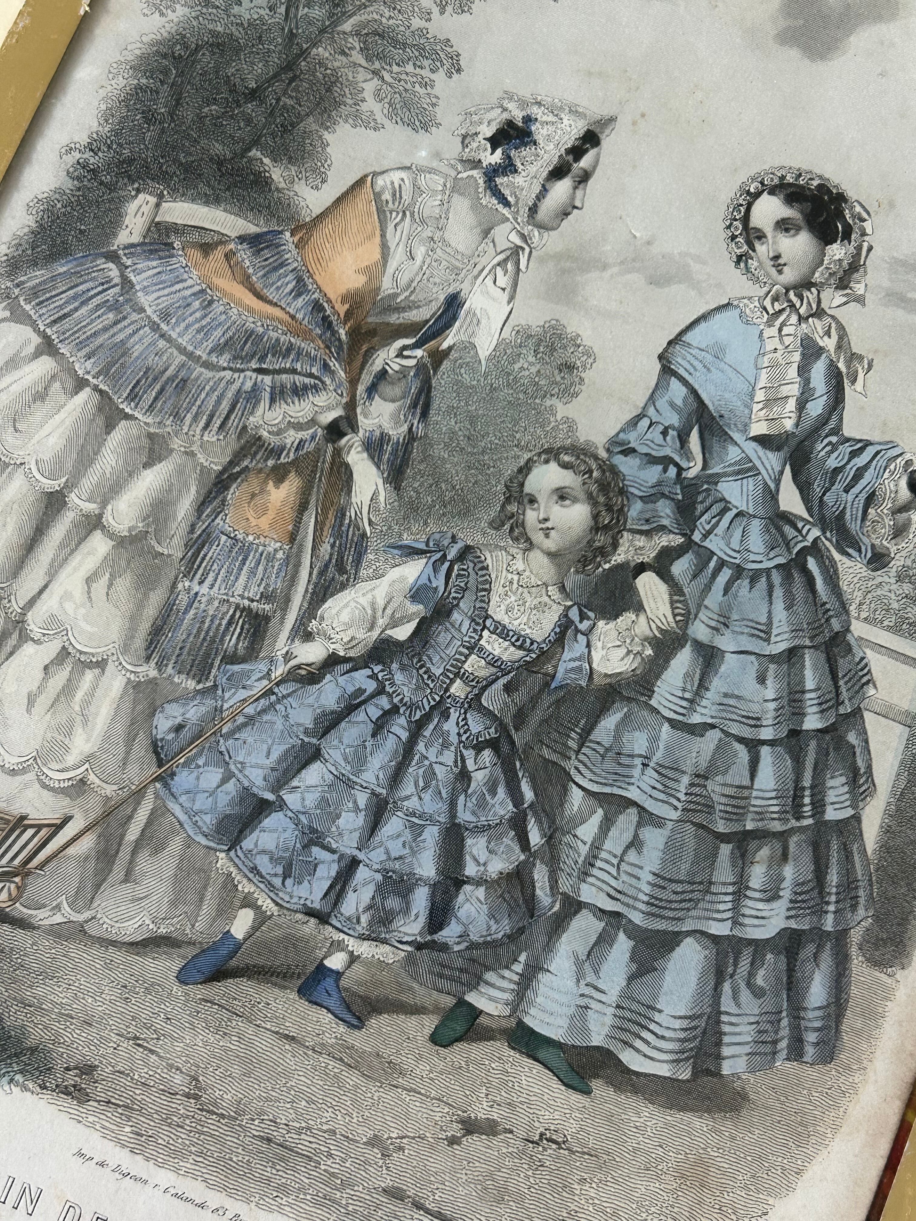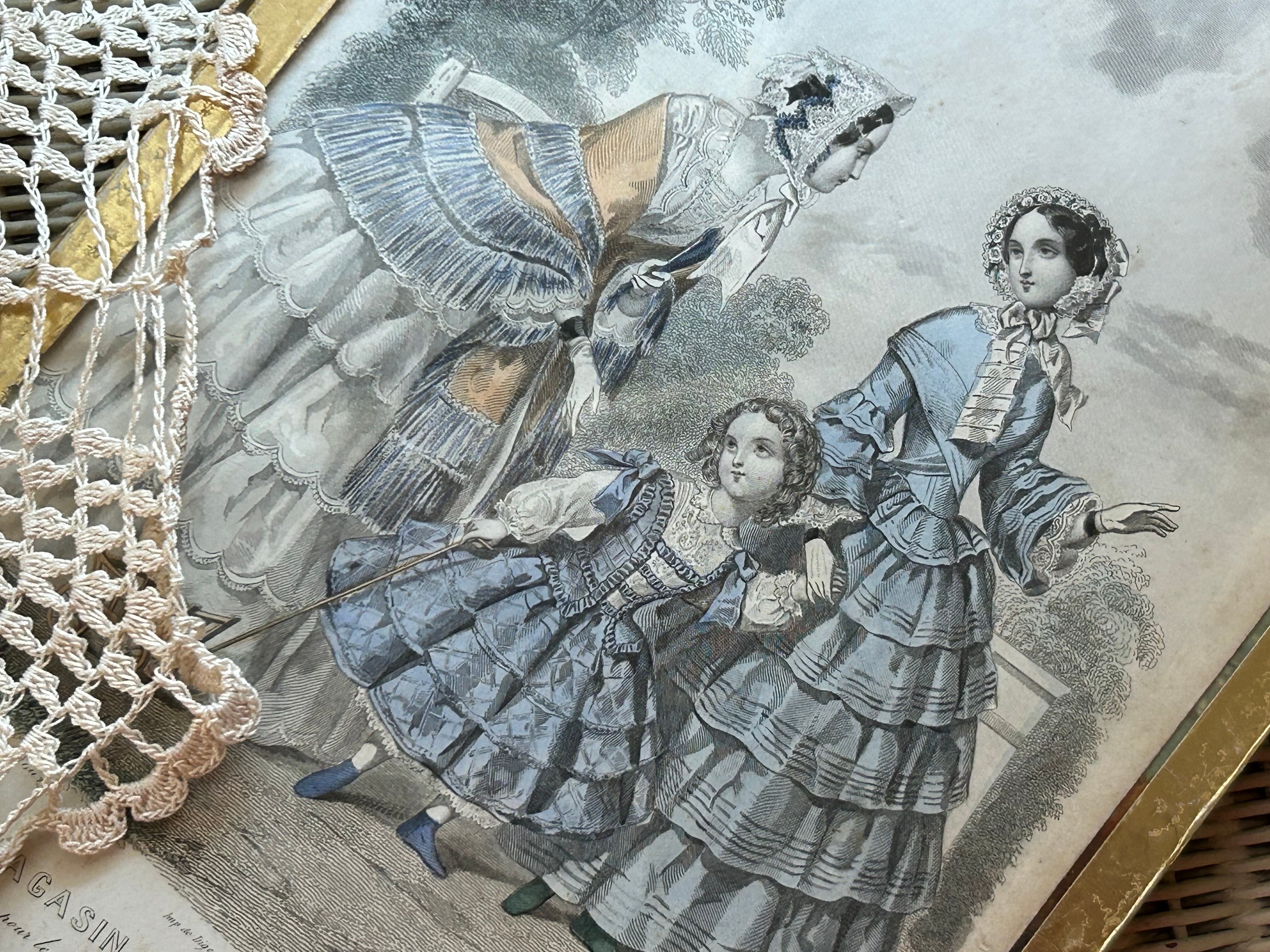 フランスアンティーク MAGASIN DES DEMOISELLES リトグラフ モード画 1853年 版画 ファッションプレート 額装 インテリア