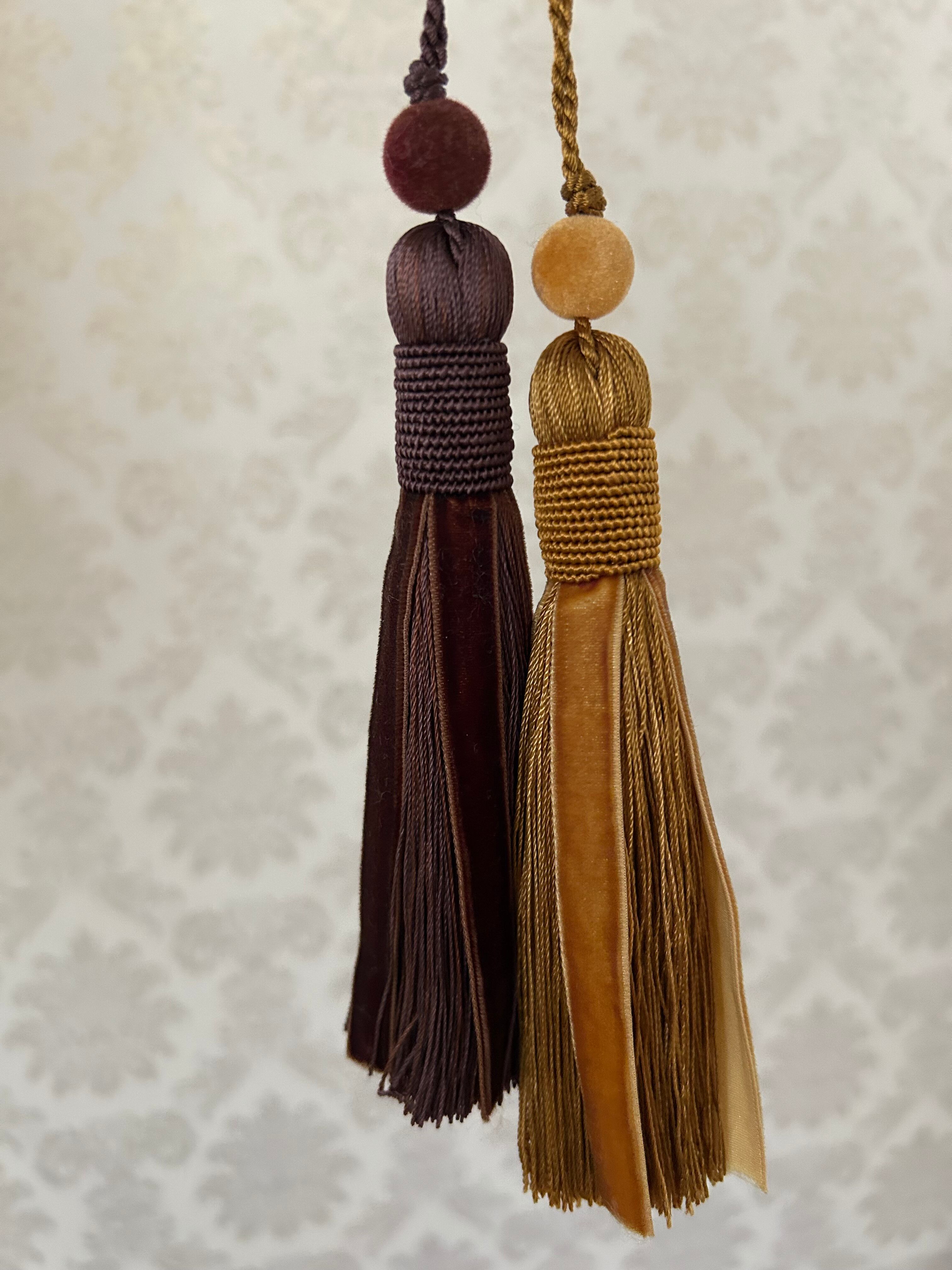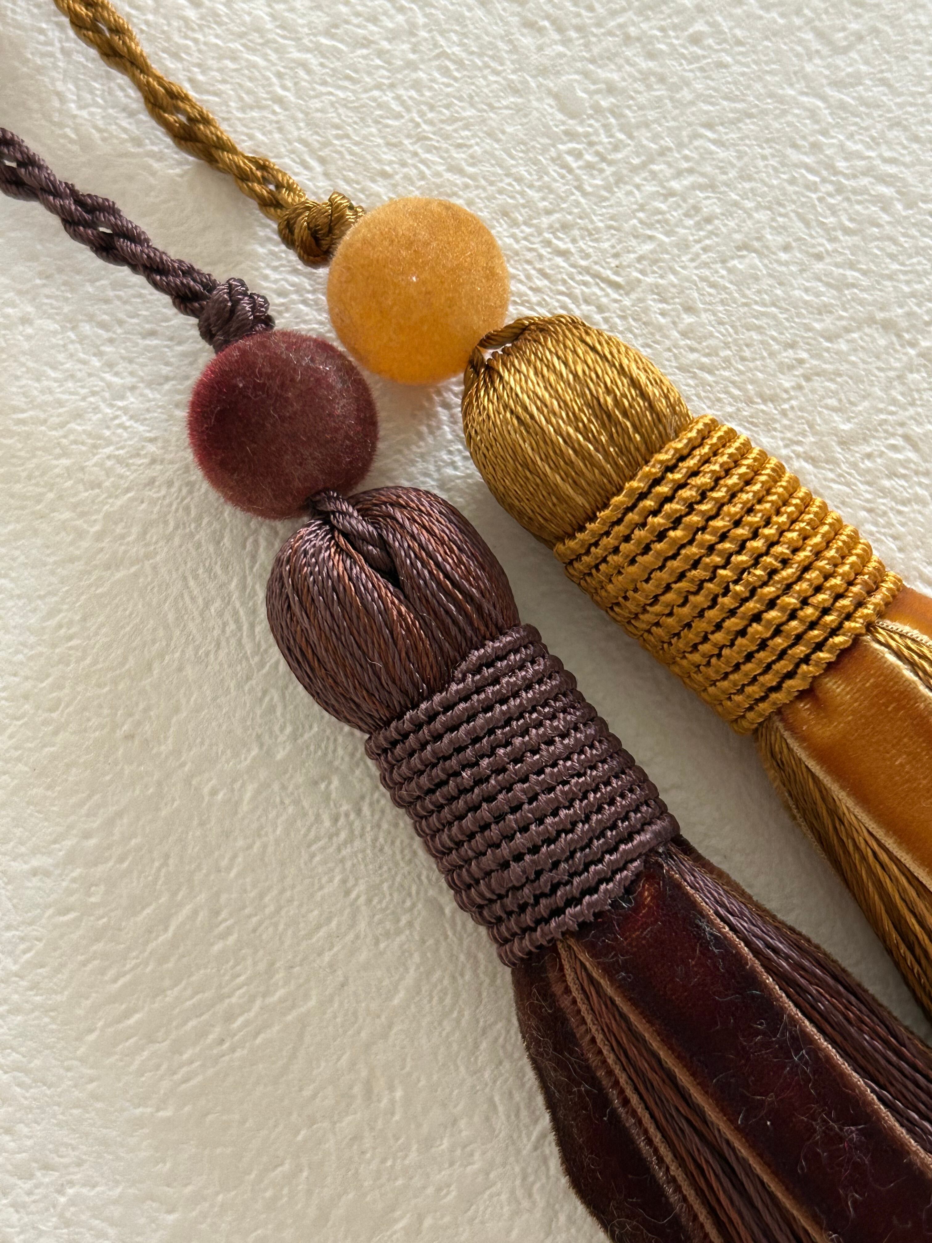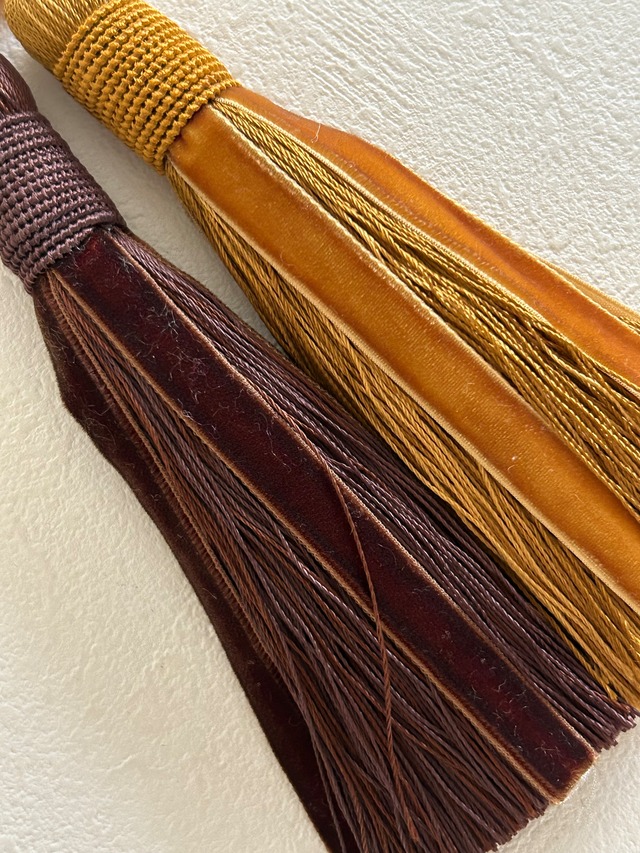 輸入デザインタッセル ベルベット ブラウン/イエローゴールド 15cm カルトナージュ チャーム インテリアタッセル 撮影小物