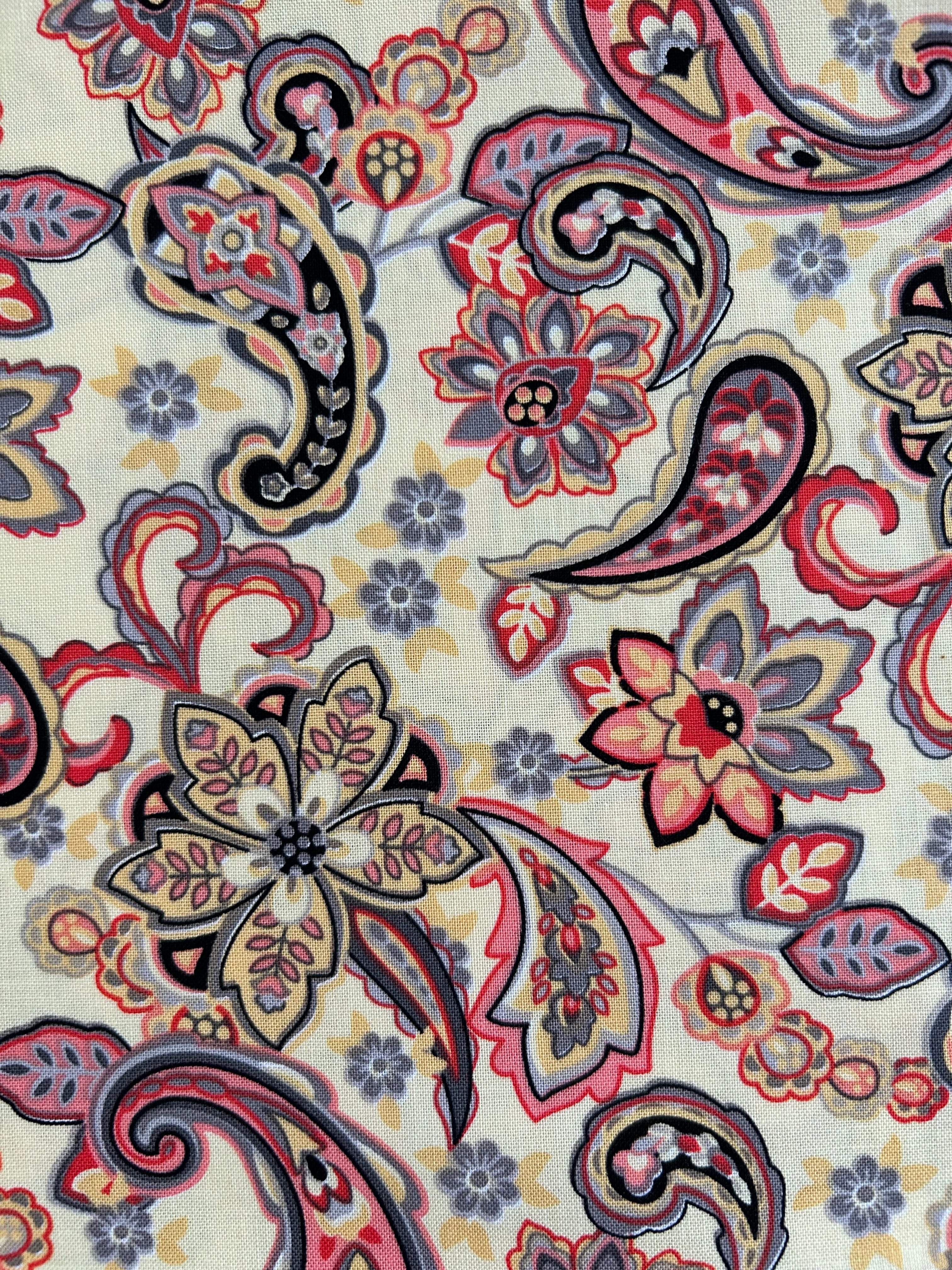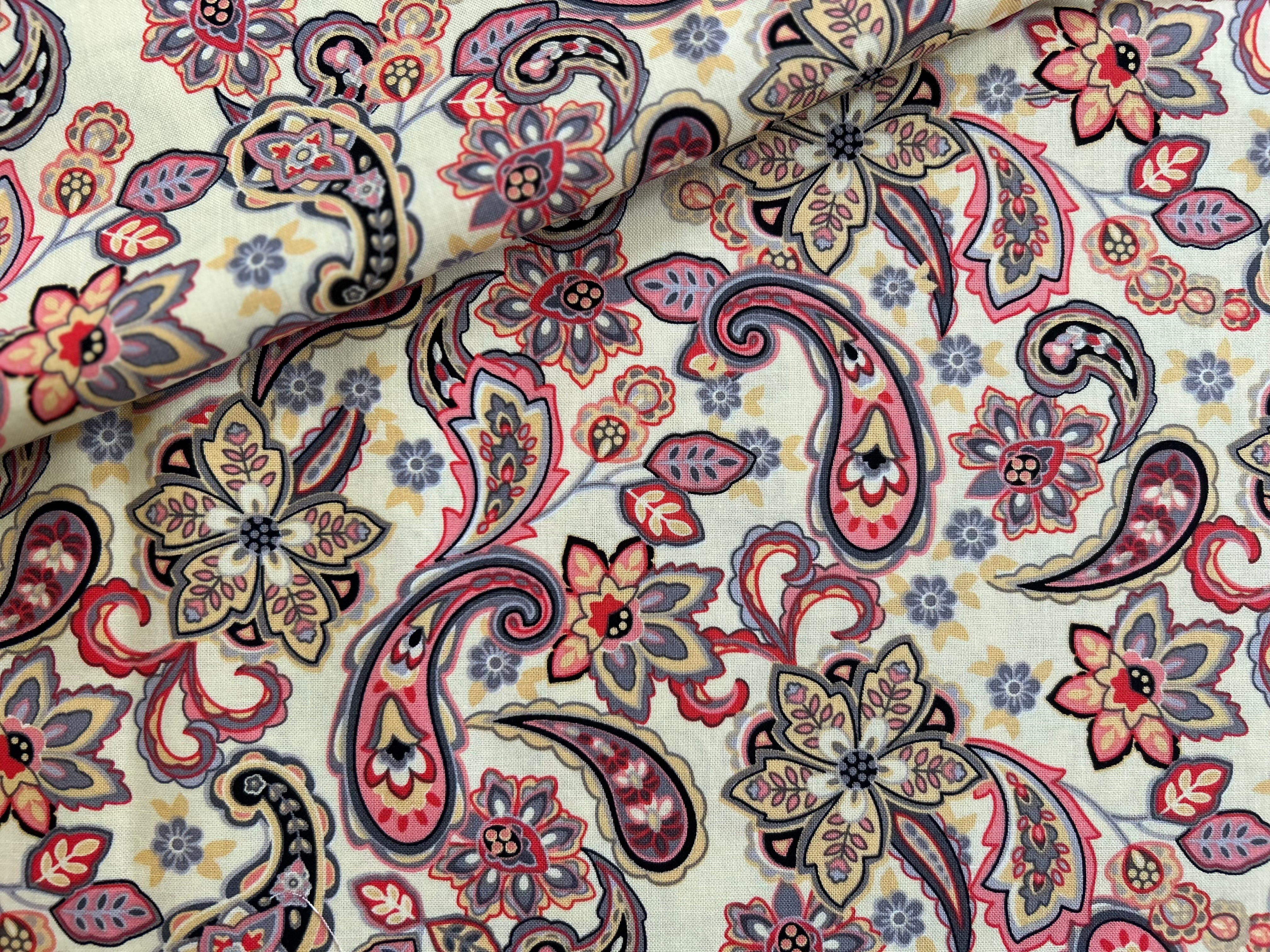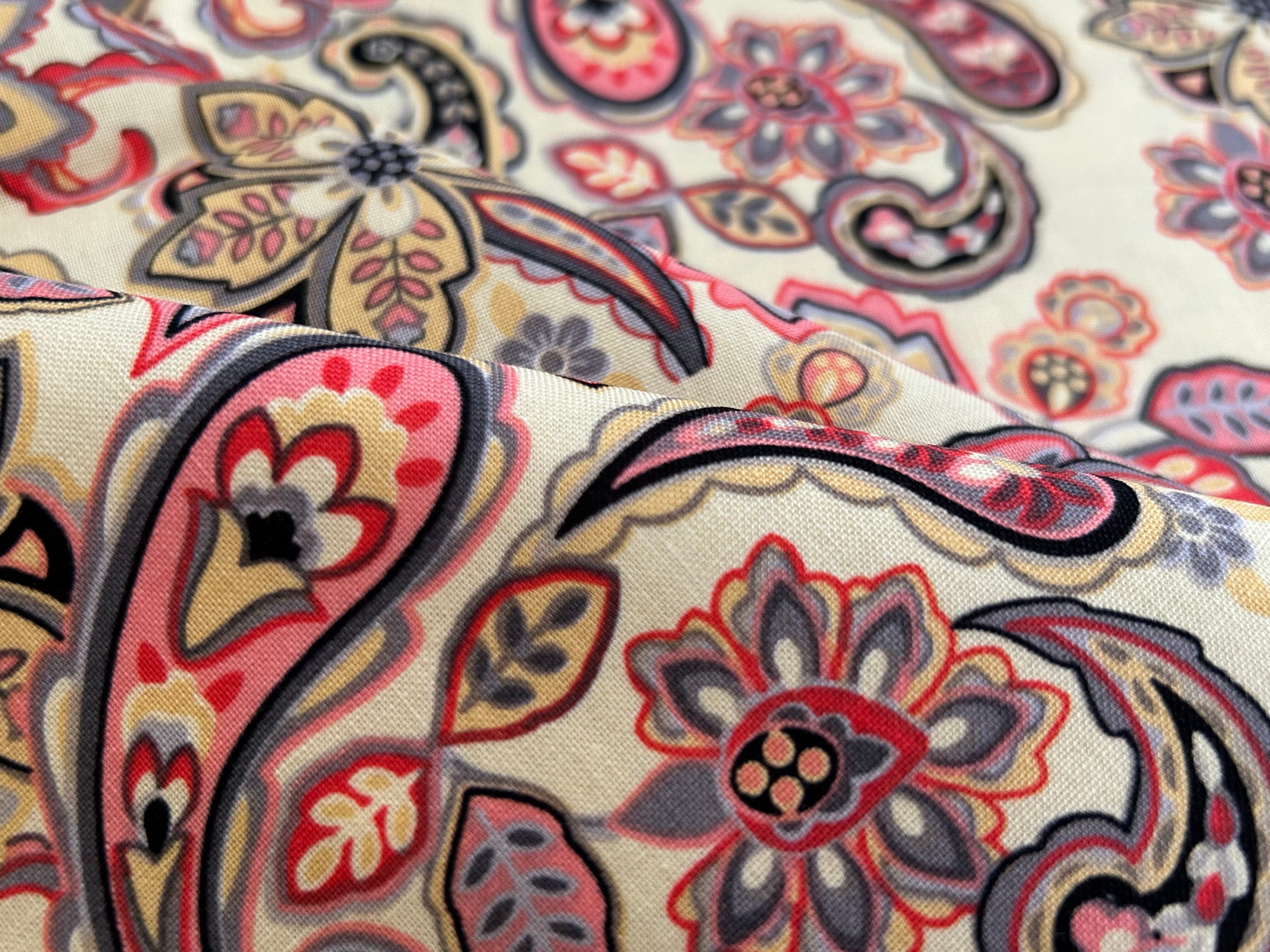 USA 輸入コットンファブリック ペイズリー柄 クリームイエロー×マルチカラー Morristoson カルトナージュ 薄手 コットンファブリック