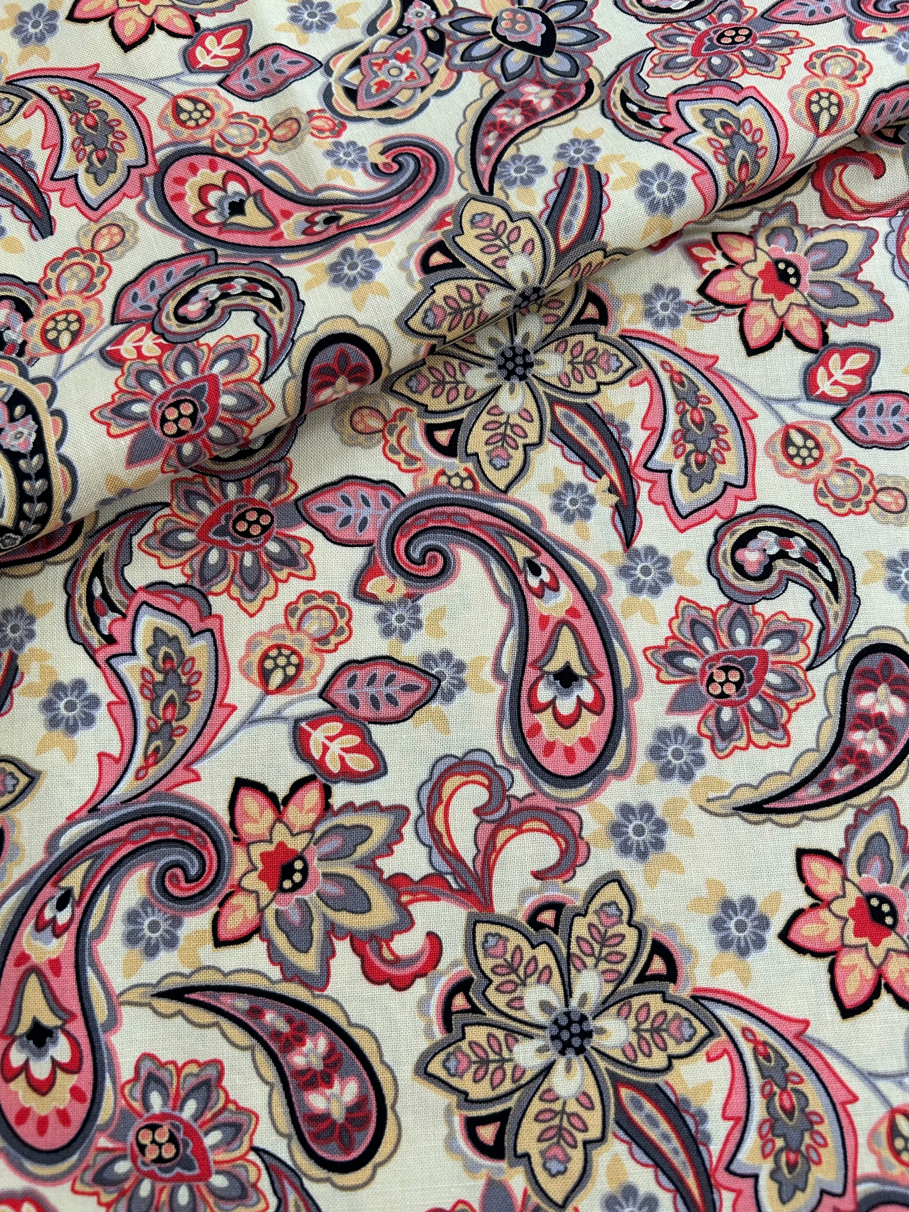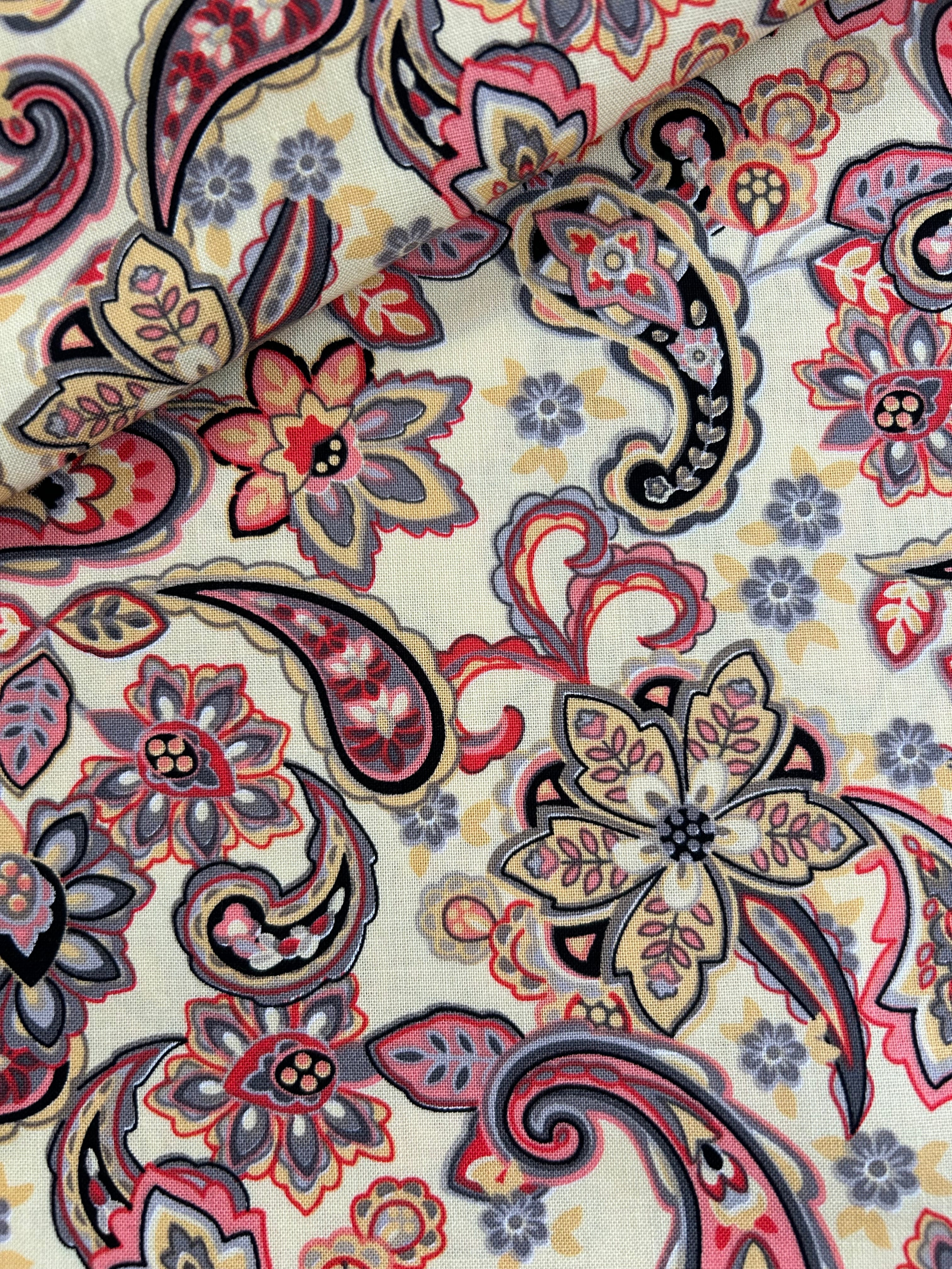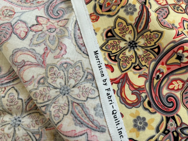 USA 輸入コットンファブリック ペイズリー柄 クリームイエロー×マルチカラー Morristoson カルトナージュ 薄手 コットンファブリック