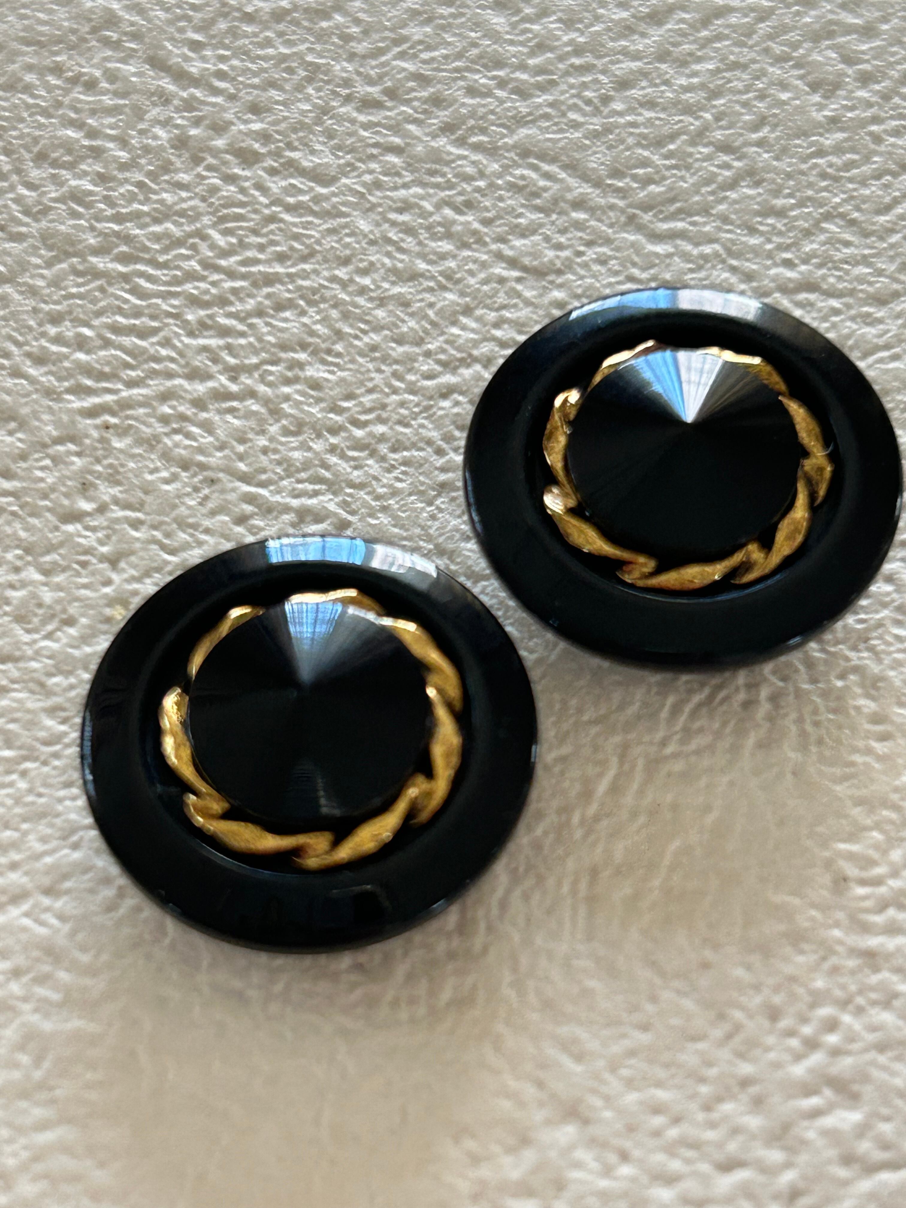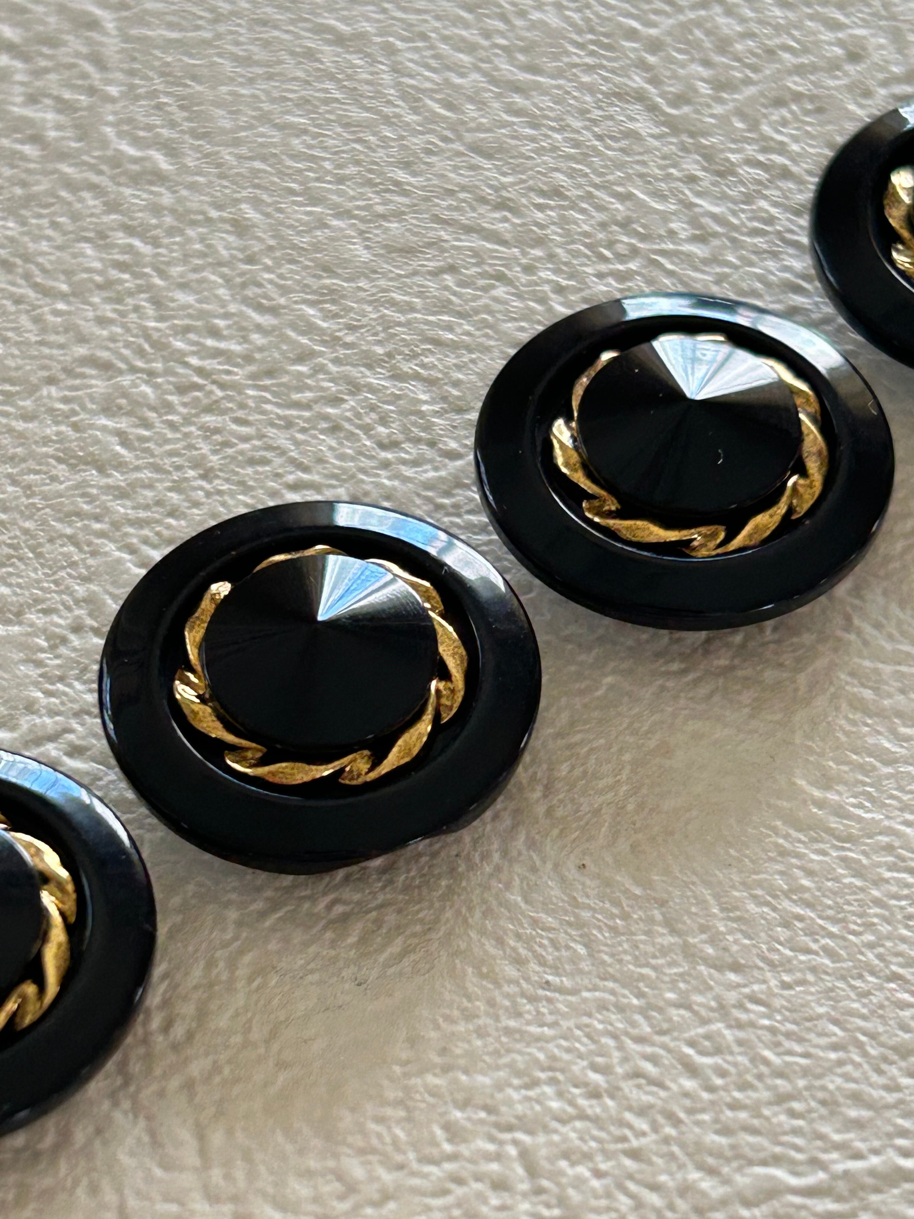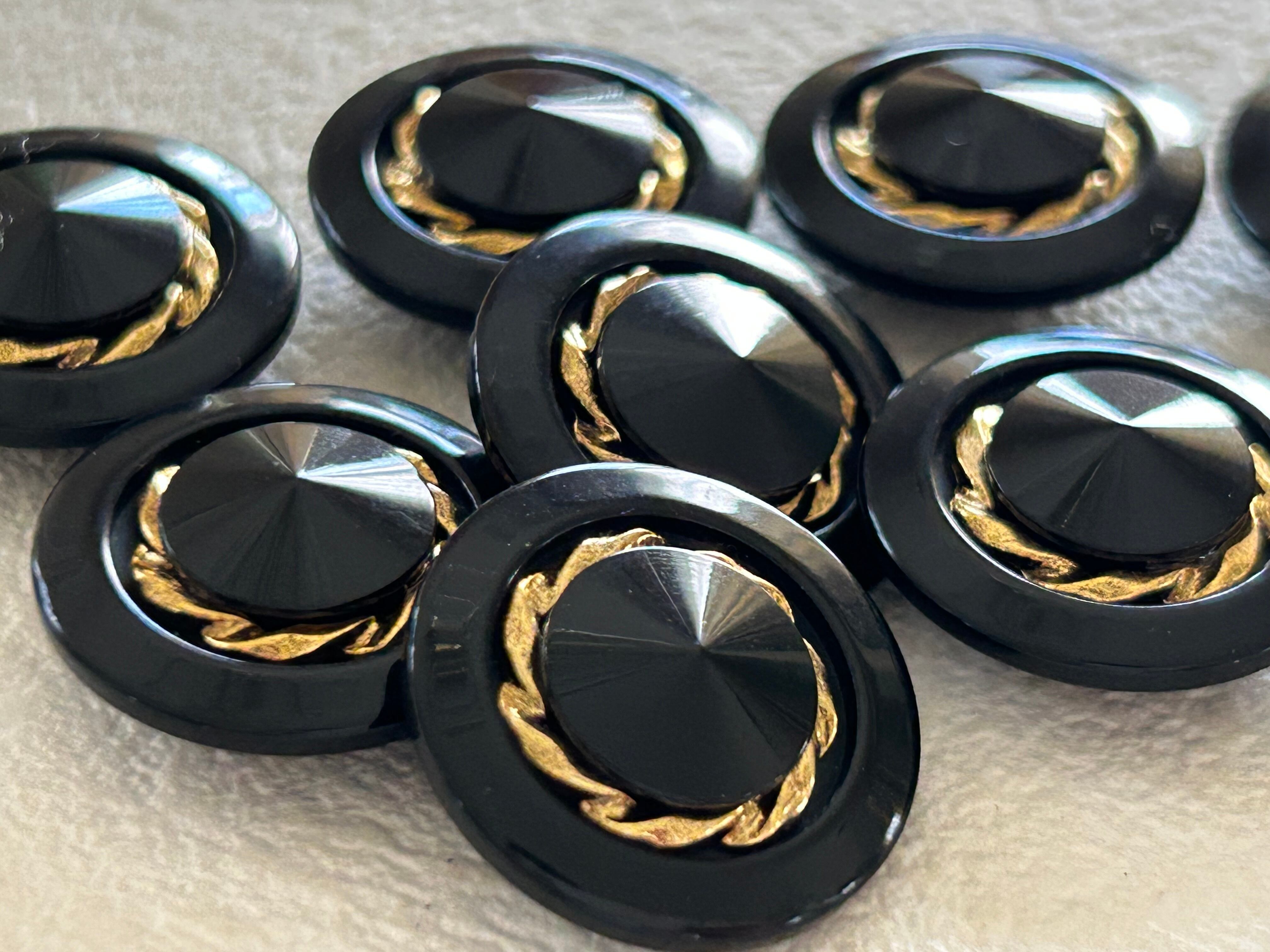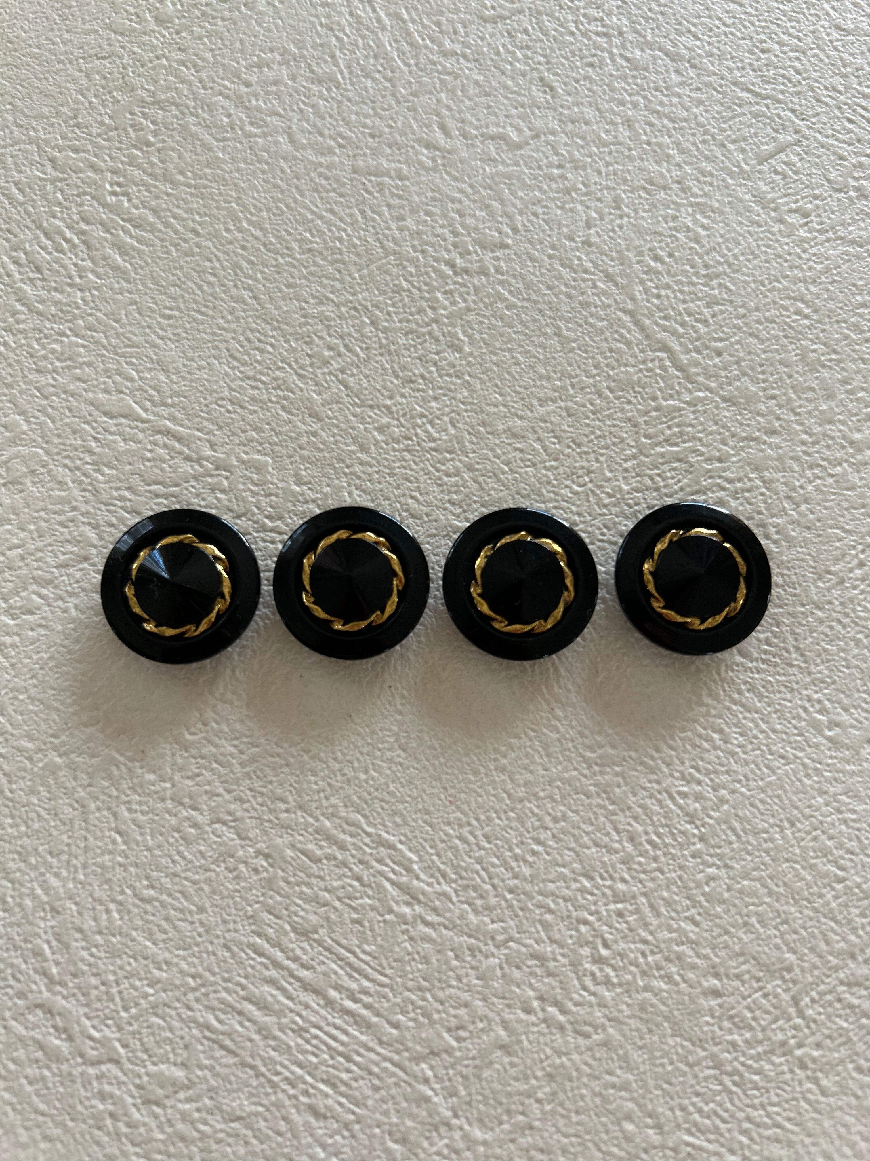 Japanese Vintage ボタン 17mm プラスチックボタン ブラック×ゴールド 昭和レトロ アクセサリーパーツ 装飾材 カルトナージュ