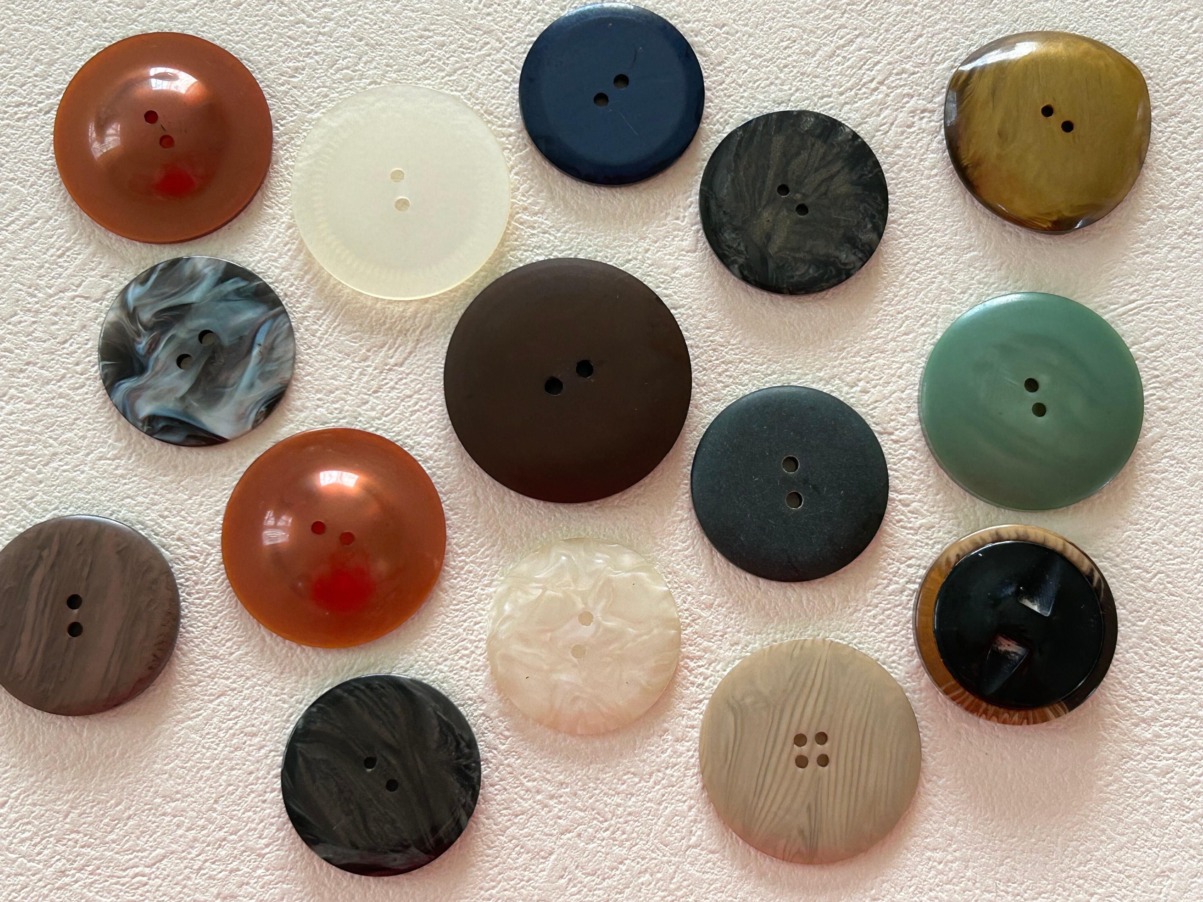 Japanese Vintage 大型ボタン 15個セット レトロボタン 30mm〜38mmサイズ 昭和レトロ アクセサリーパーツ デコレーション材