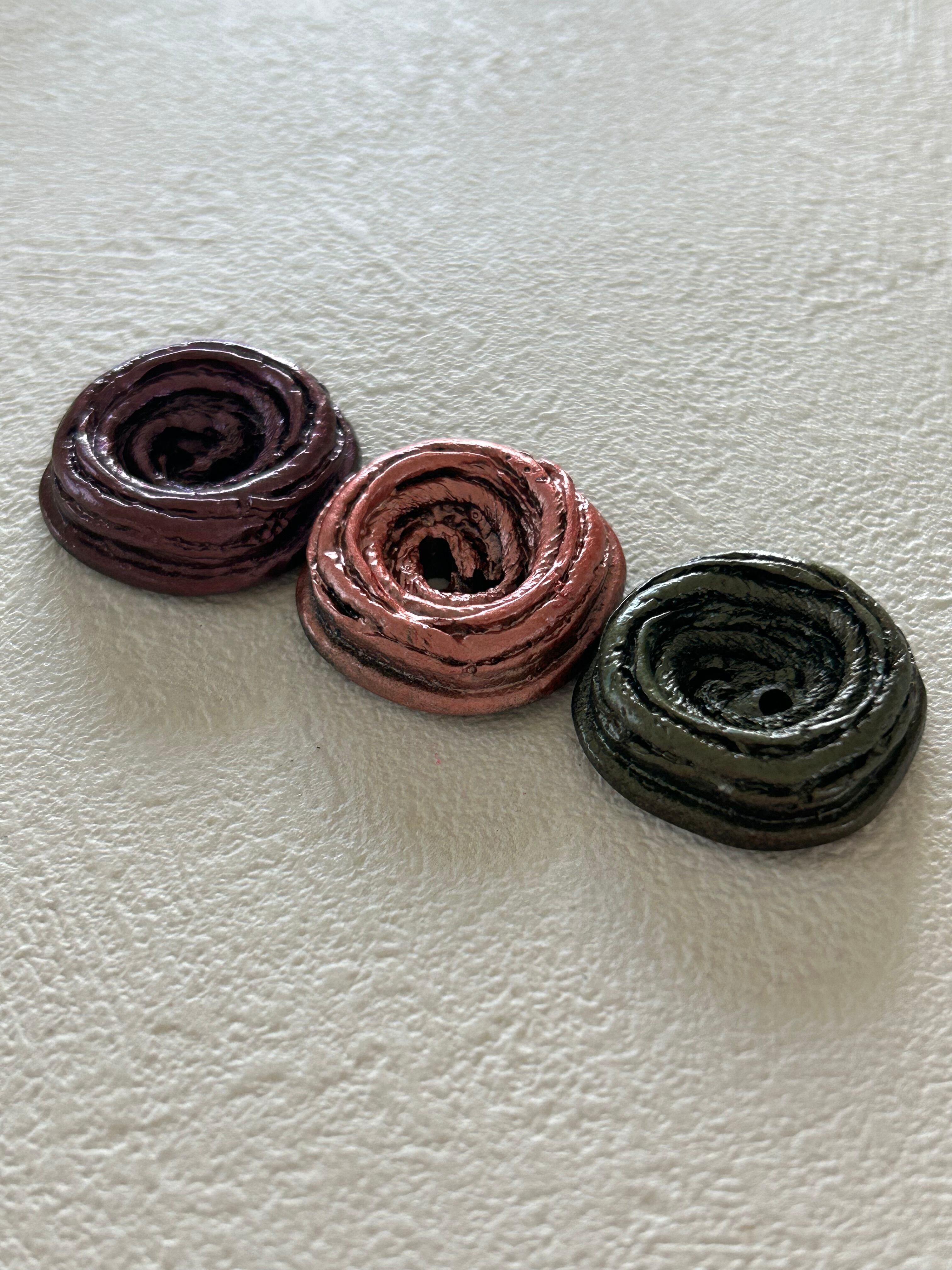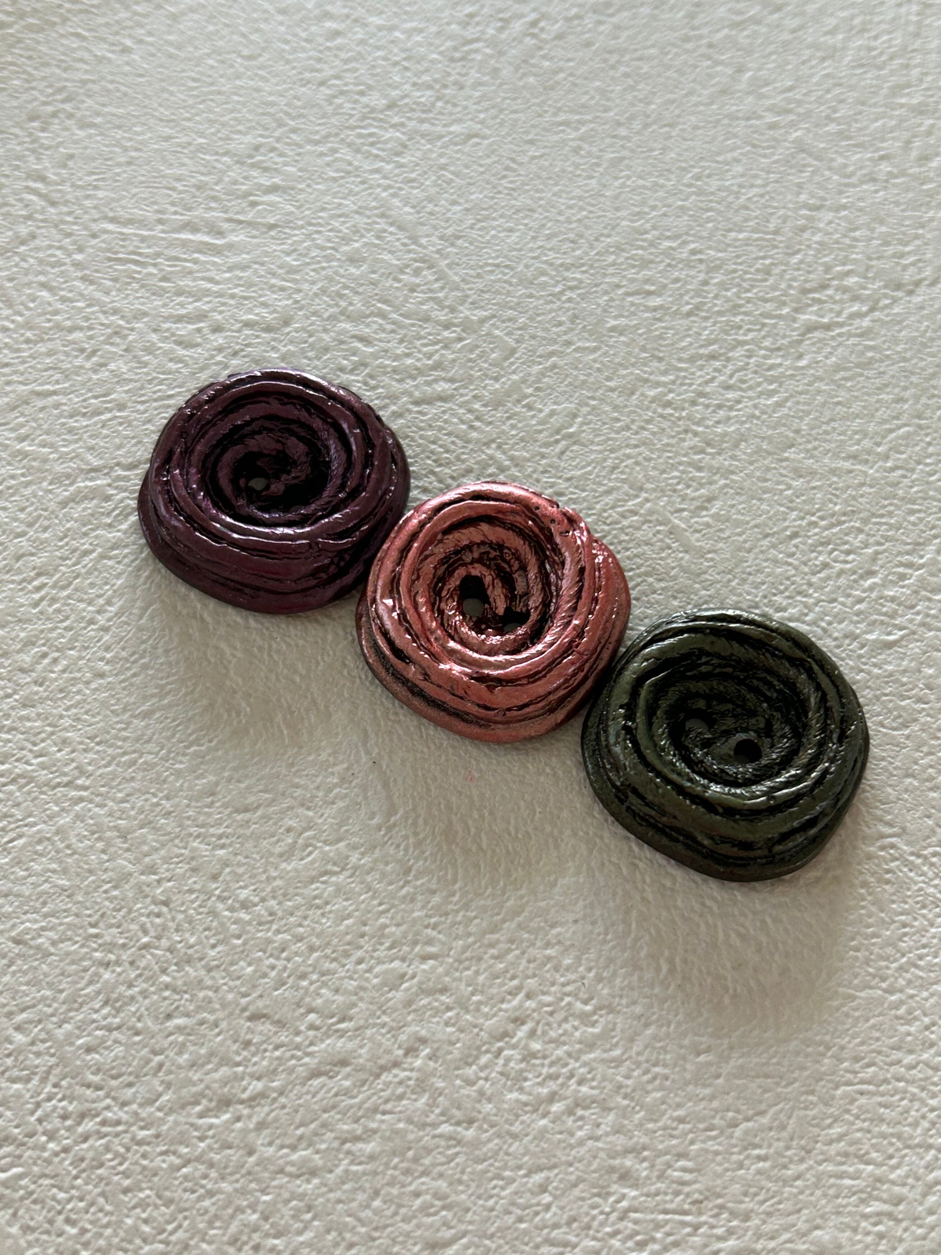 お洋服のボタンの付け替えには勿論のことアクセサリーパーツとして、カルトナージュのデコレーション材になど様々な用途でお役立て下さいませ。