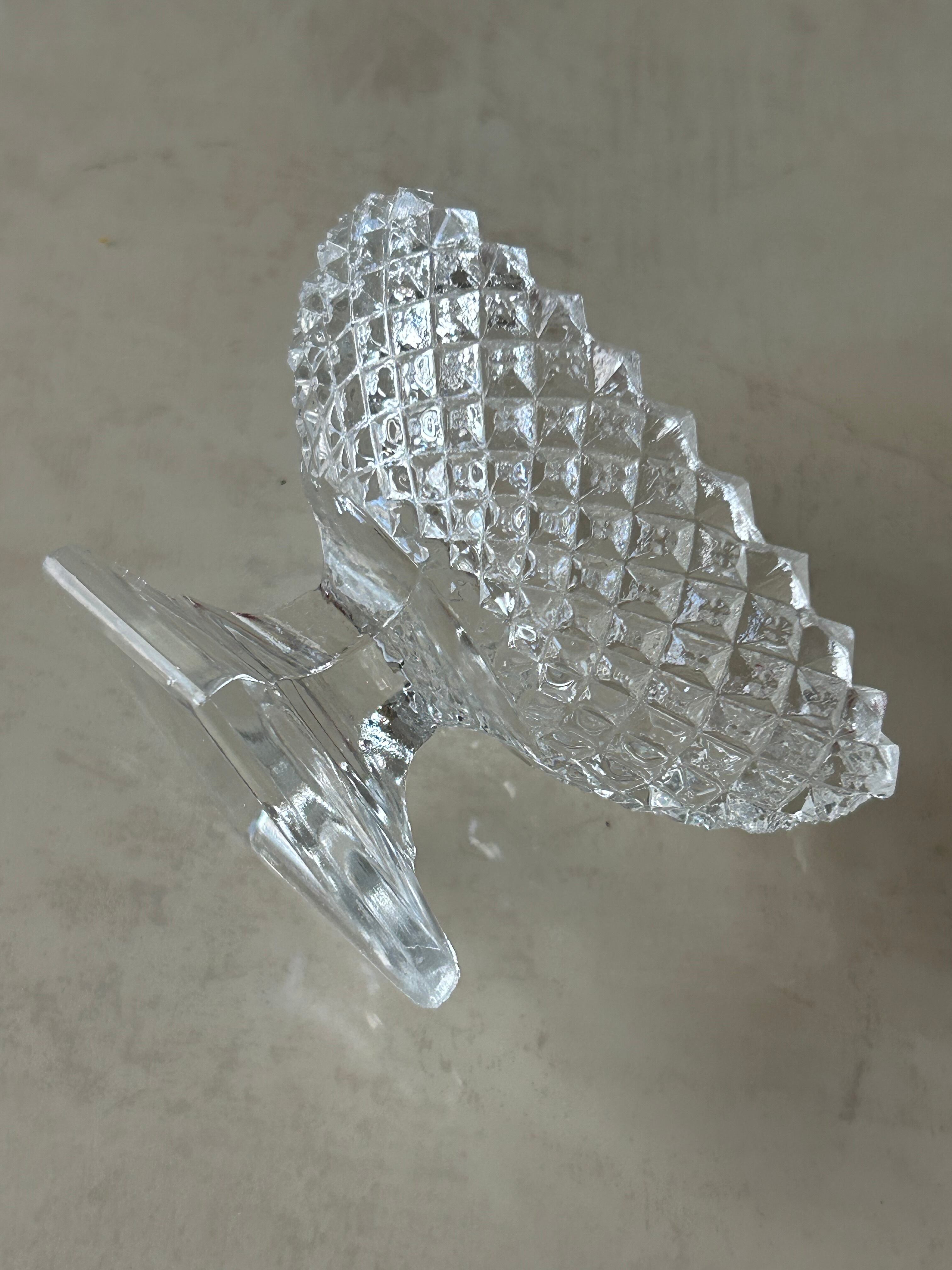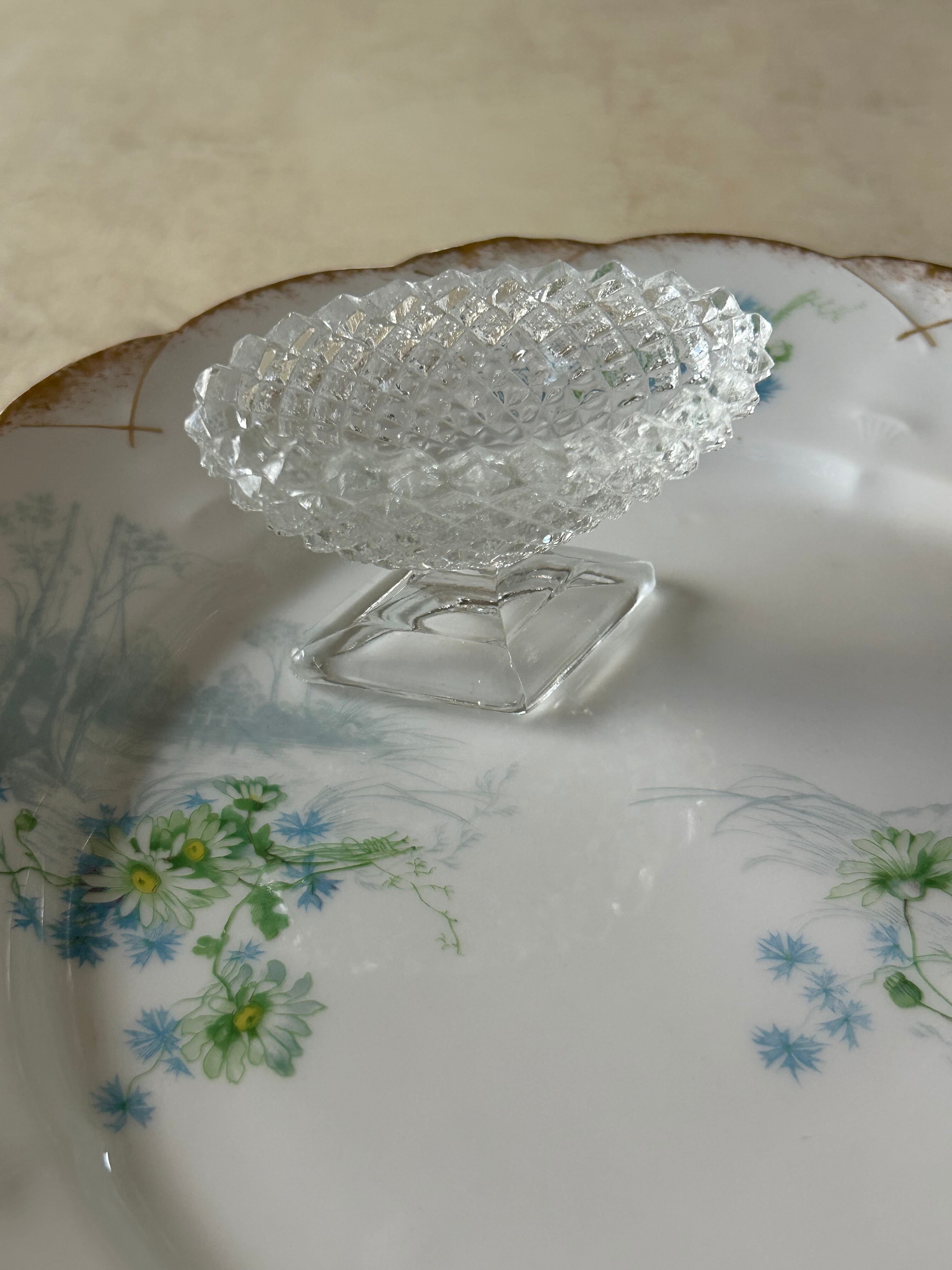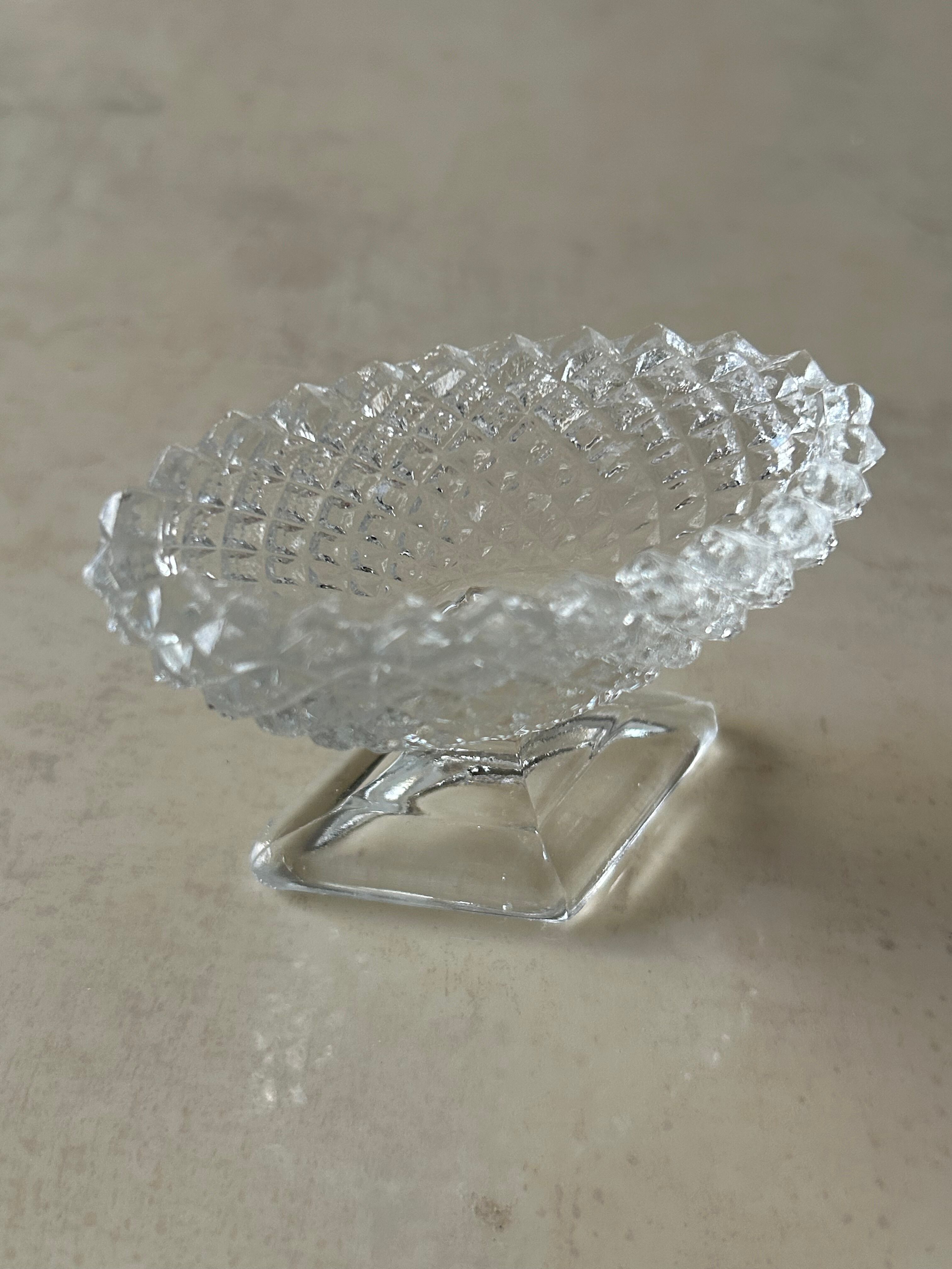 英国Vintage 小さなクリアガラスの脚付きスパイスディッシュ スパイスボウル ソルト&ペッパー 小物入れ フラワーベースイ ンテリア小物 撮影小物