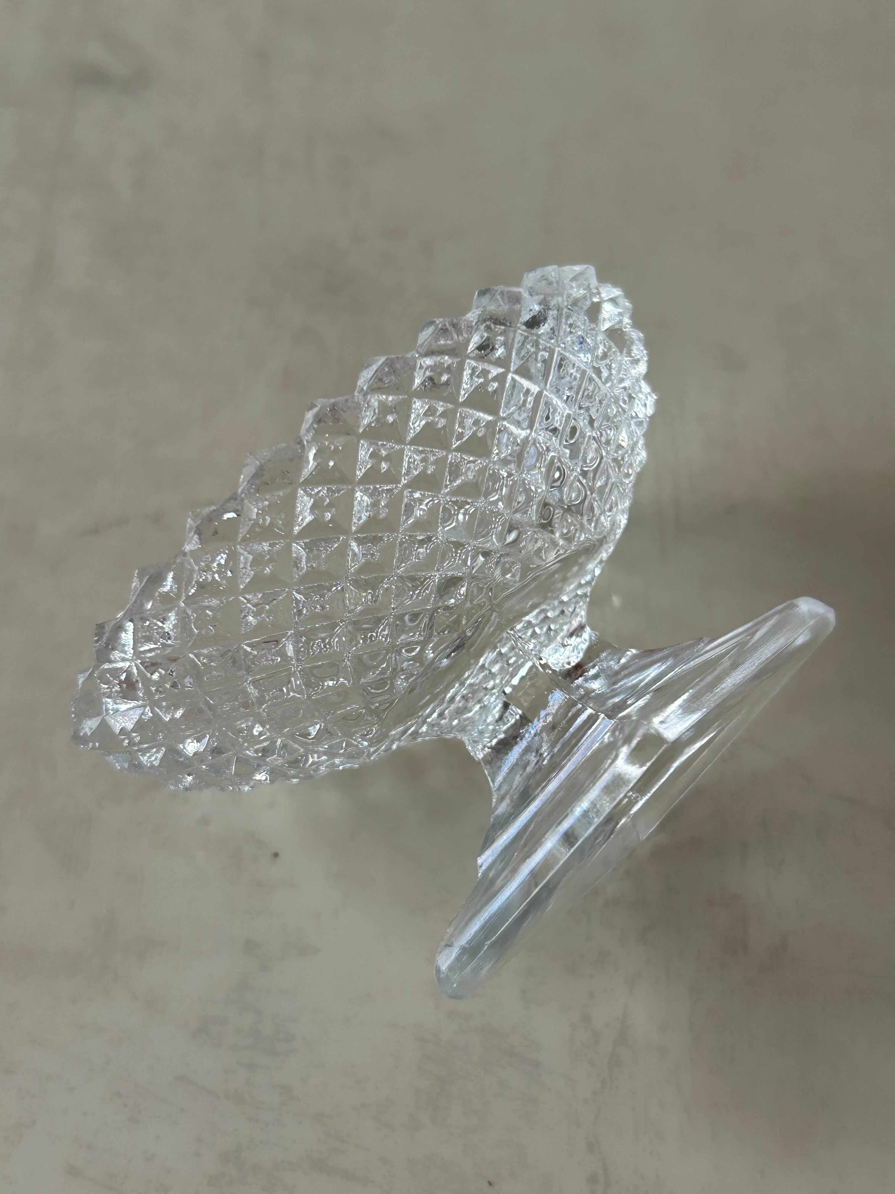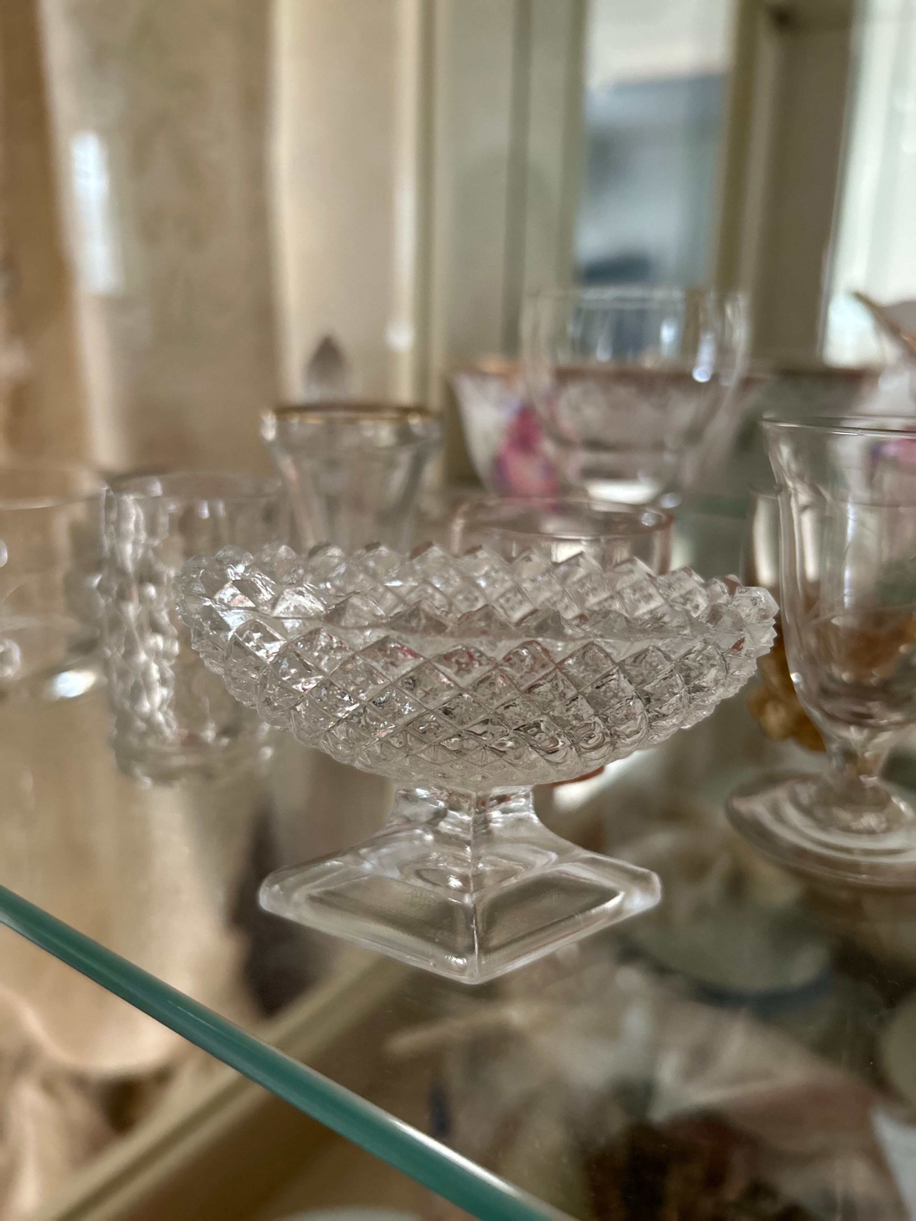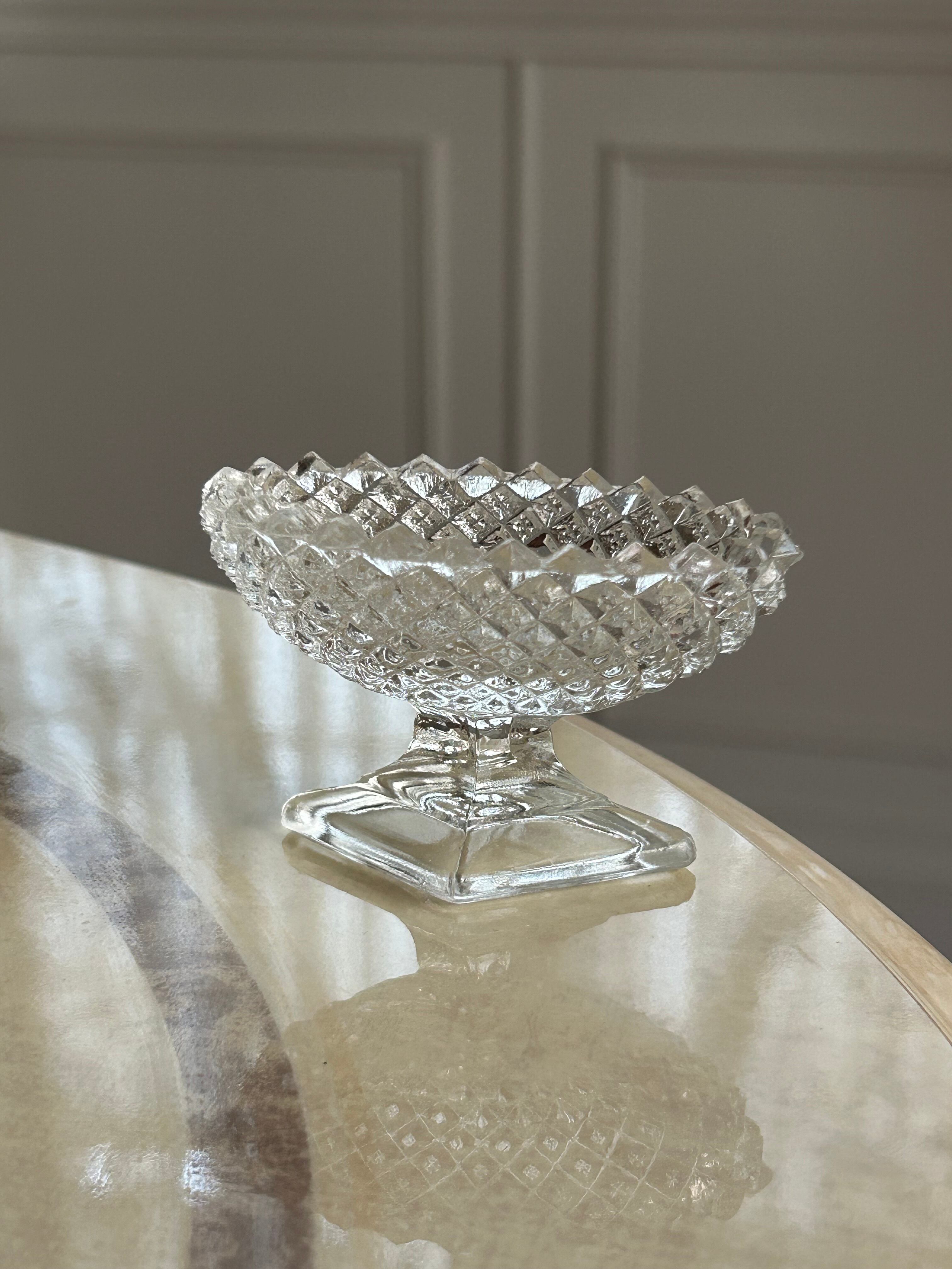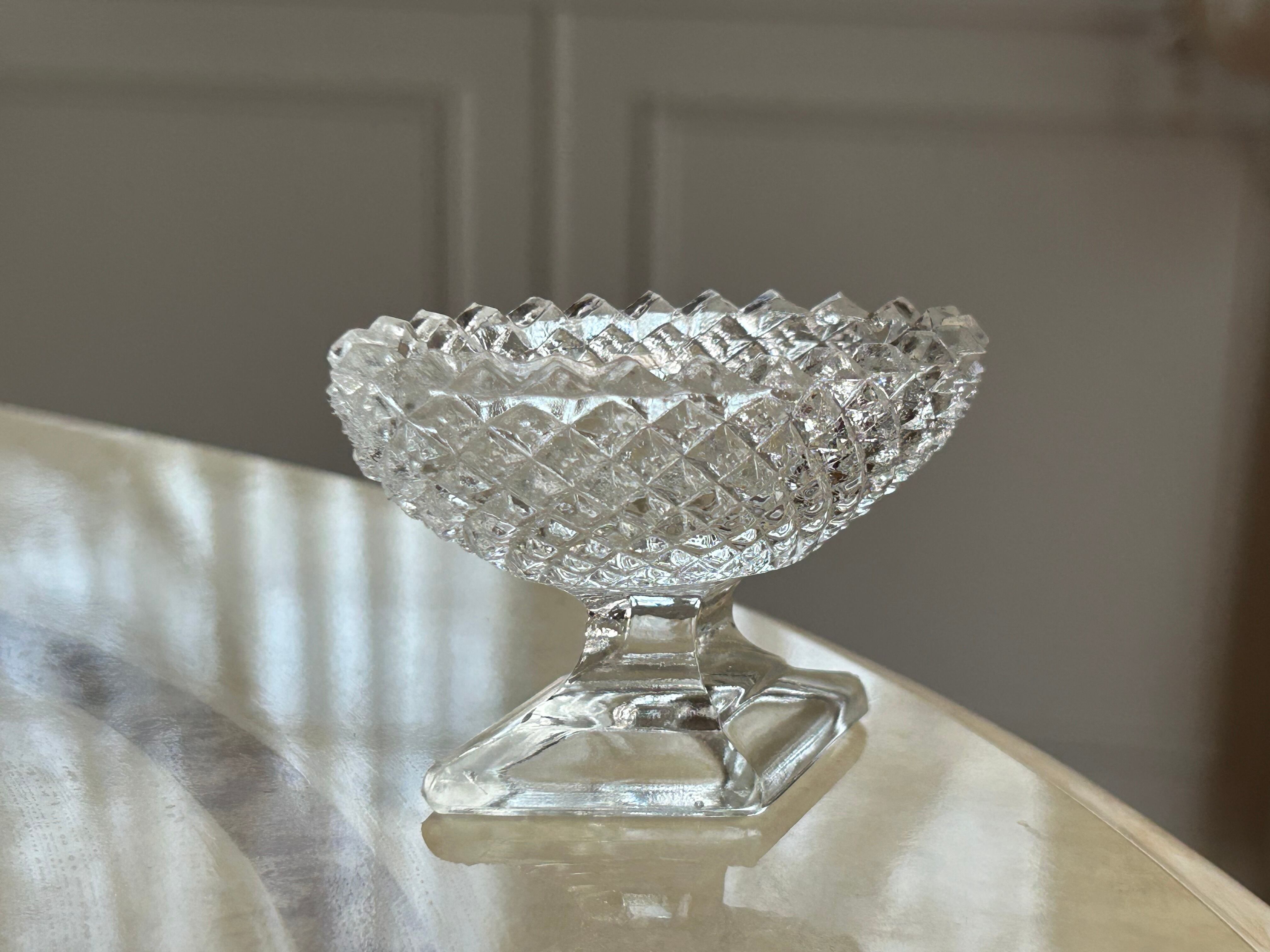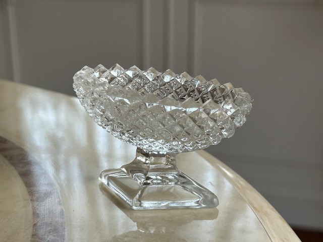 古い脚付きのガラスの小さなスパイスディッシュになります。