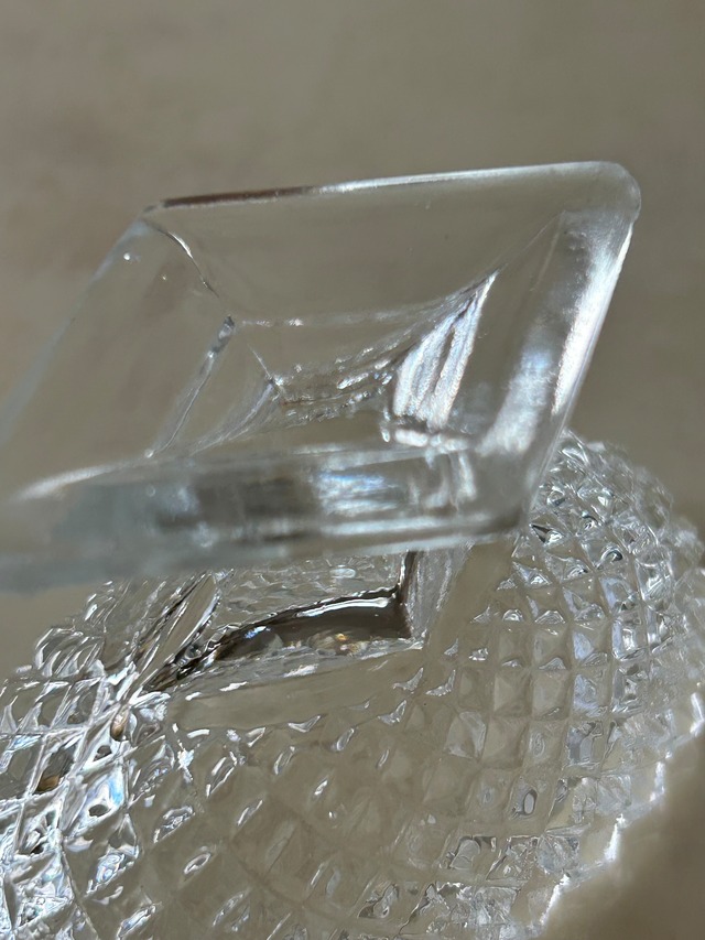 側面のカットが美しく窓辺で光が差し込むとうっとりするような優しい輝き。
