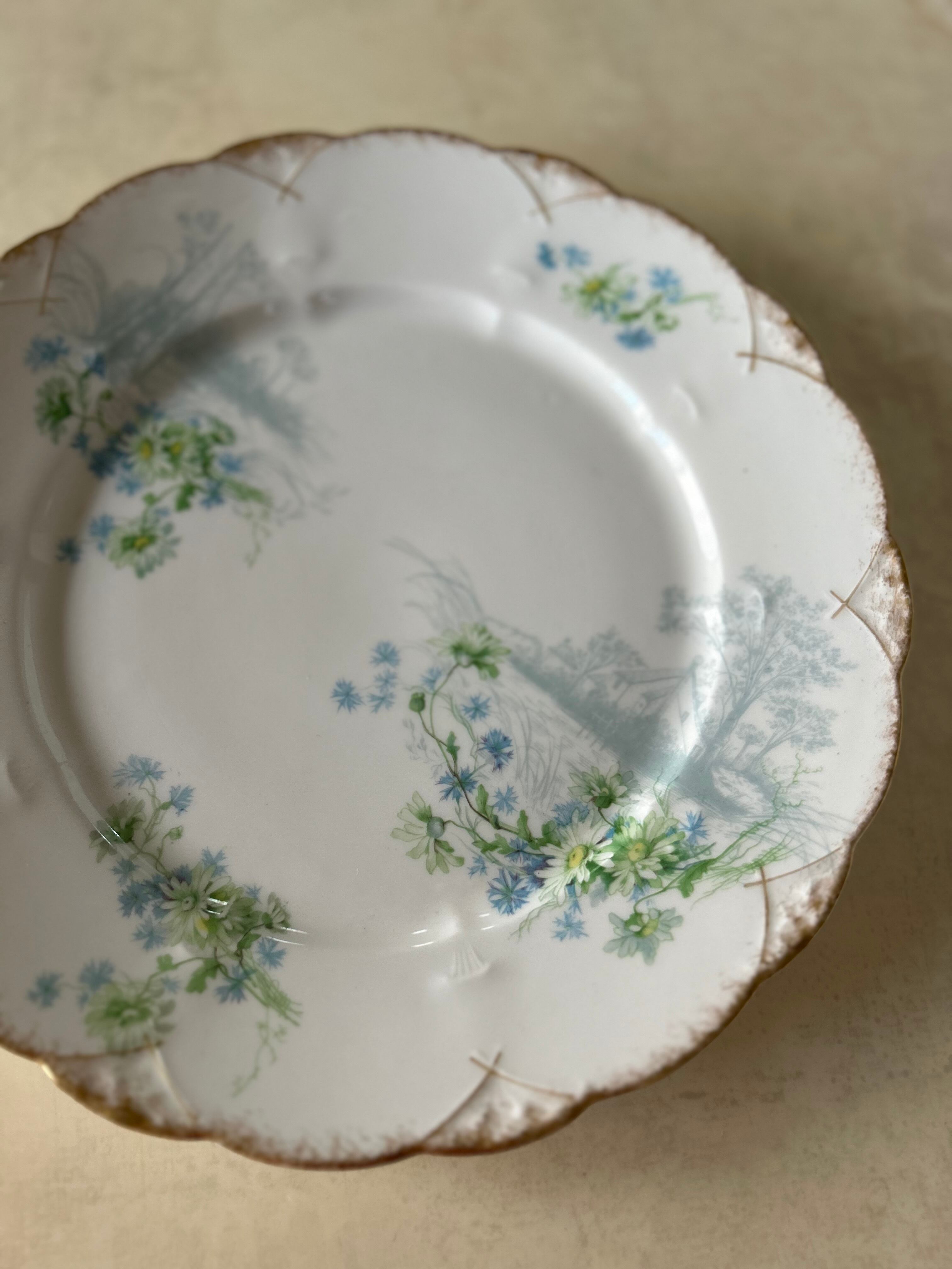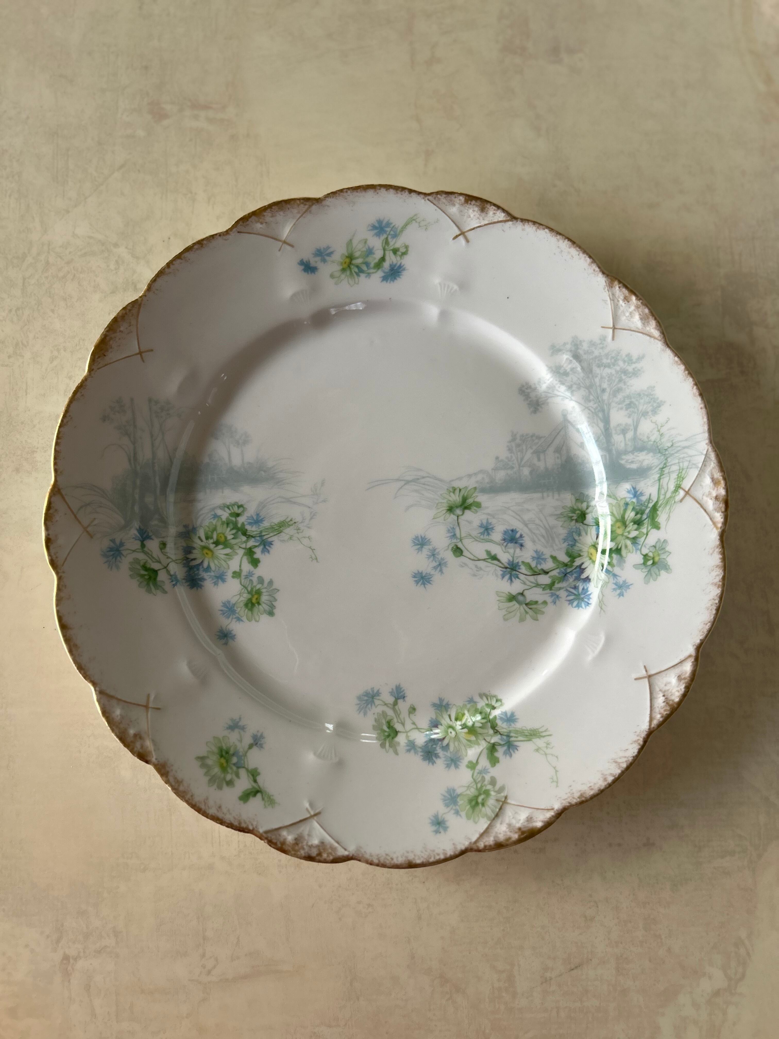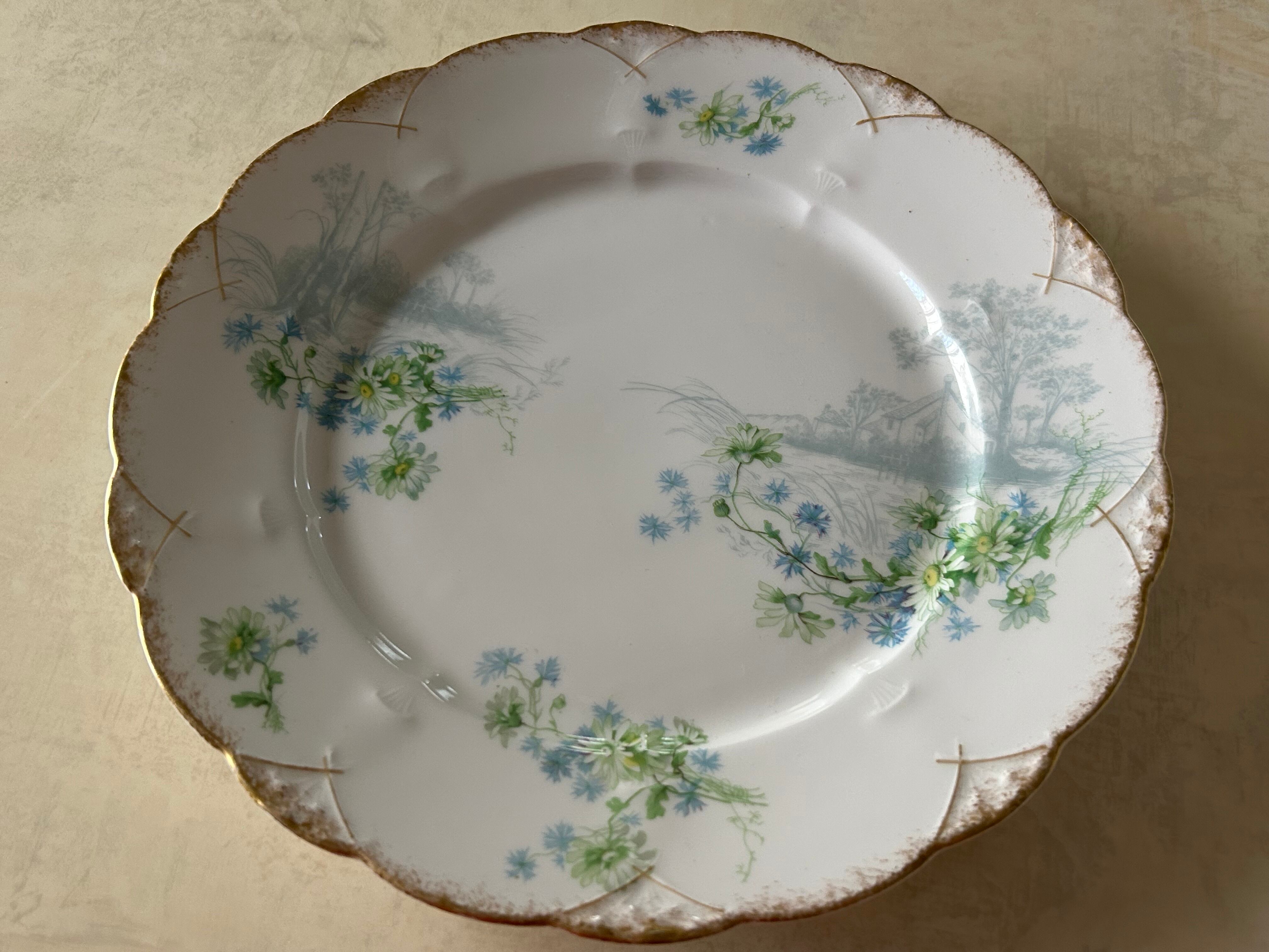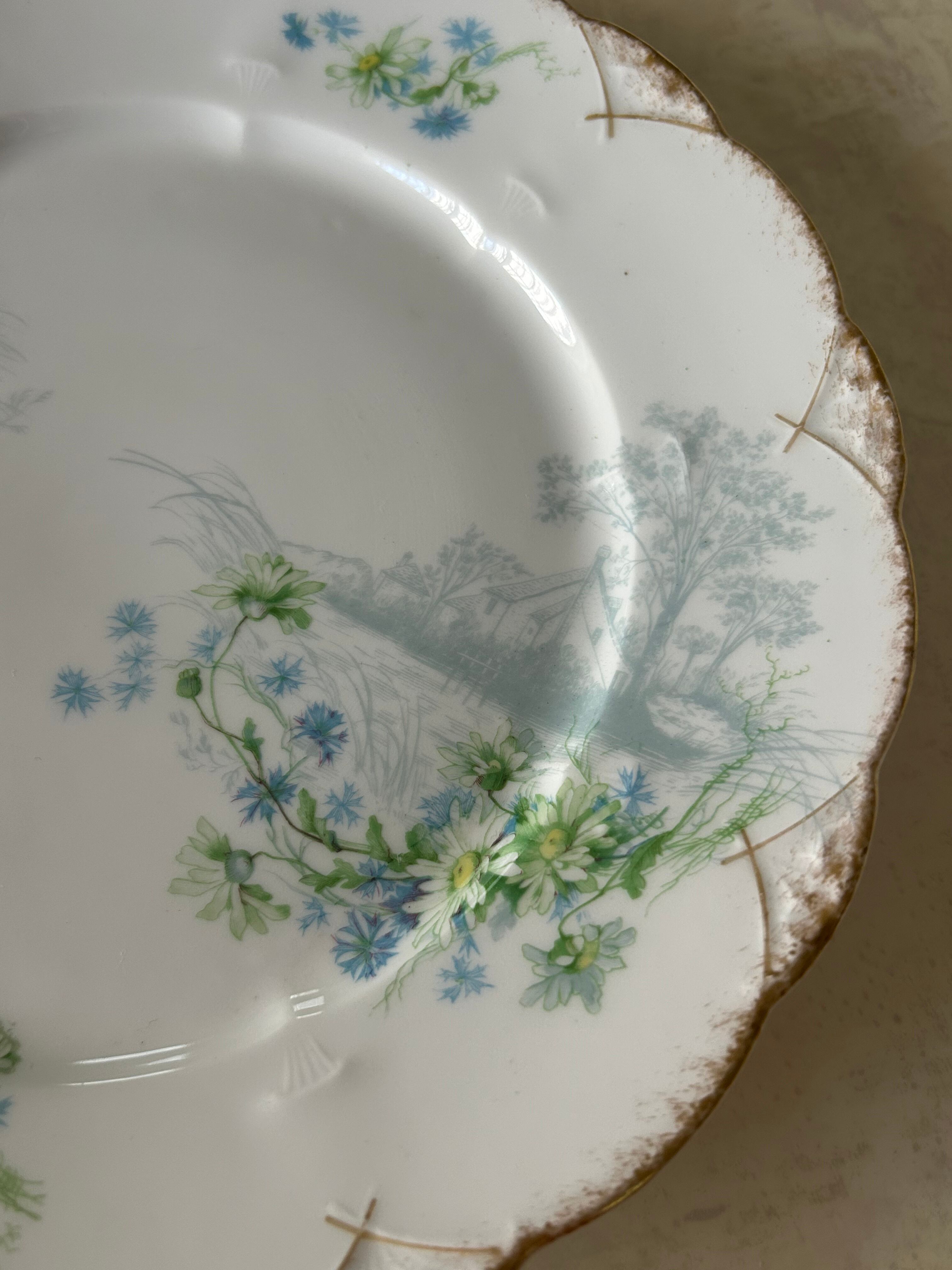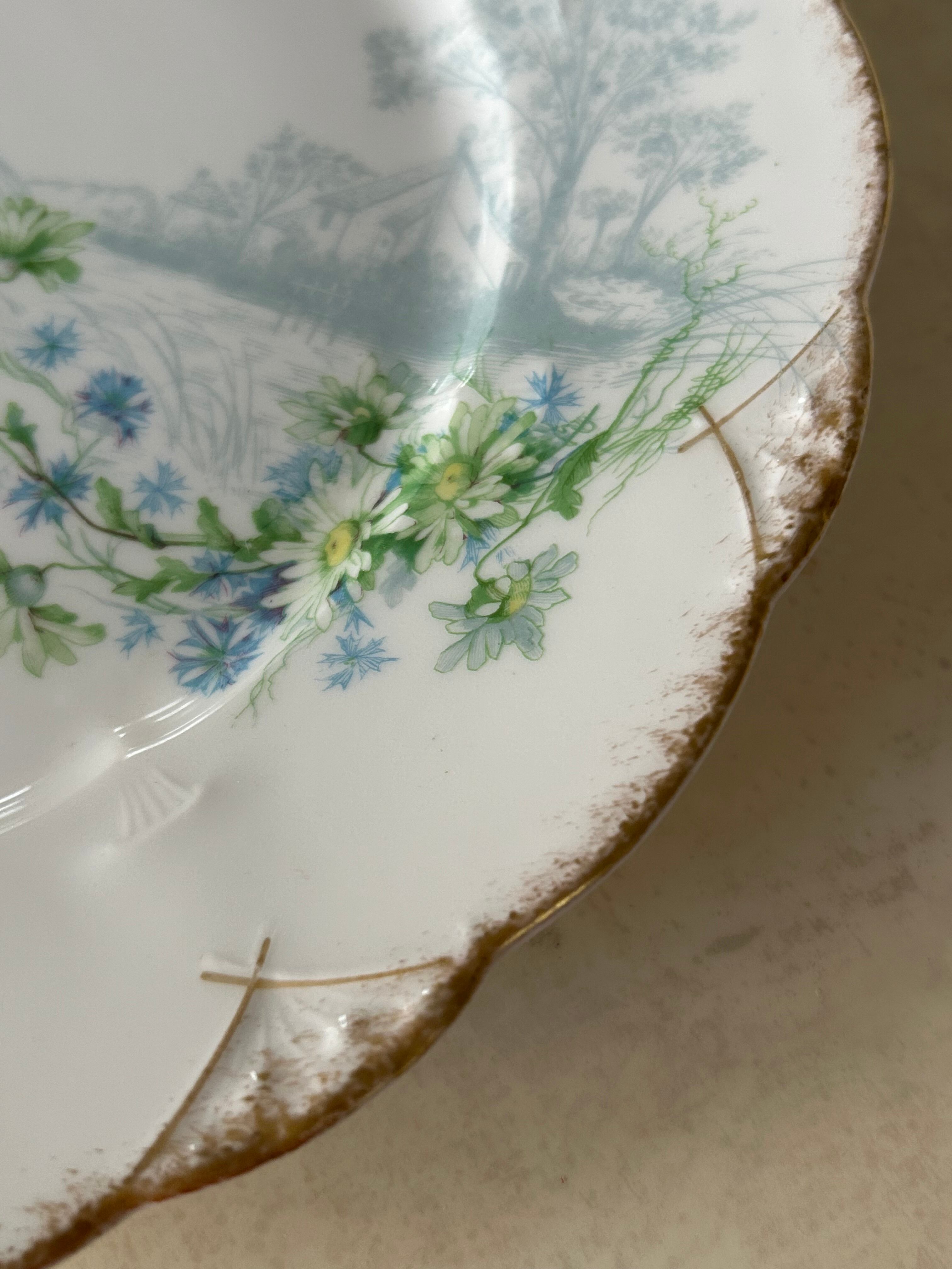 フランスアンティーク LIOGES W.G.&Co. 24.5cm フラワー 風景 金彩 テーブルウェア