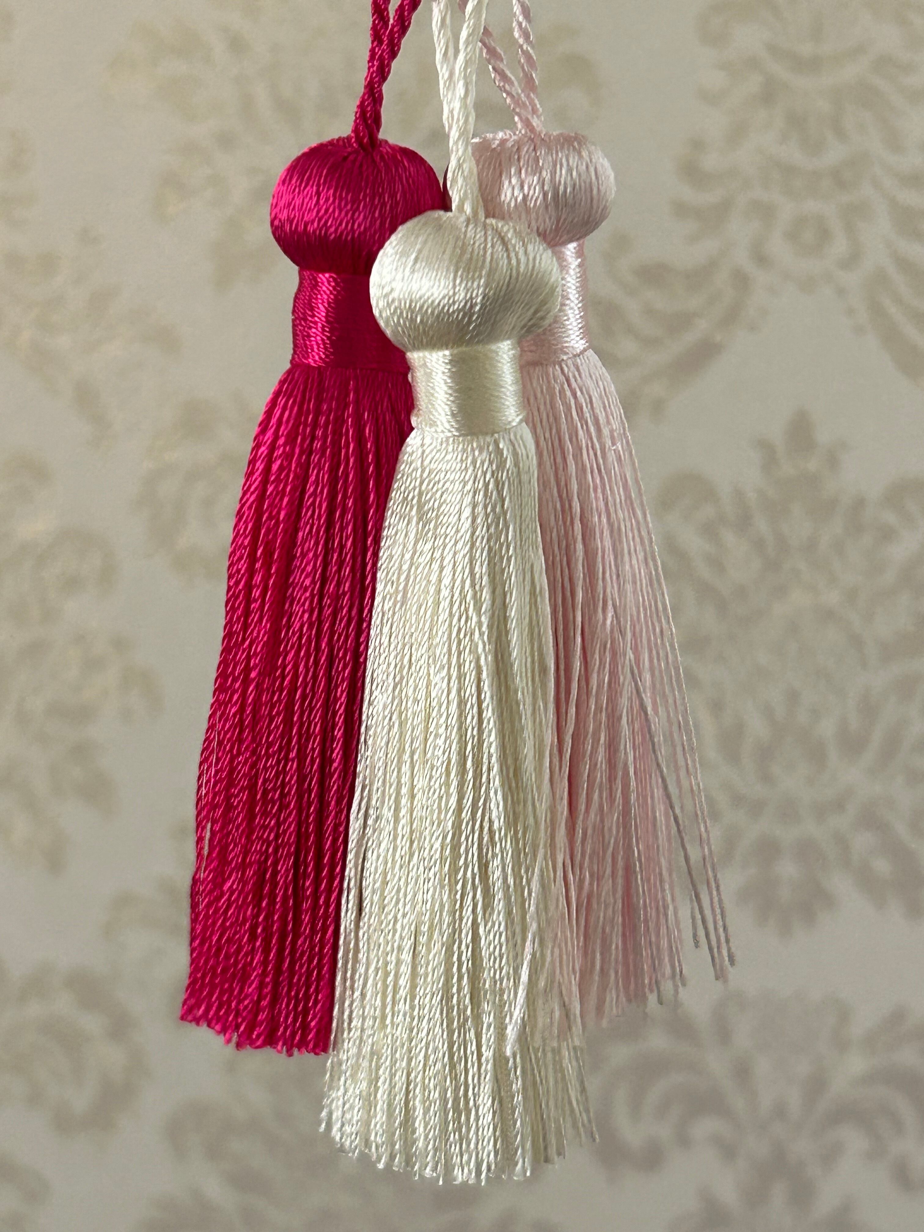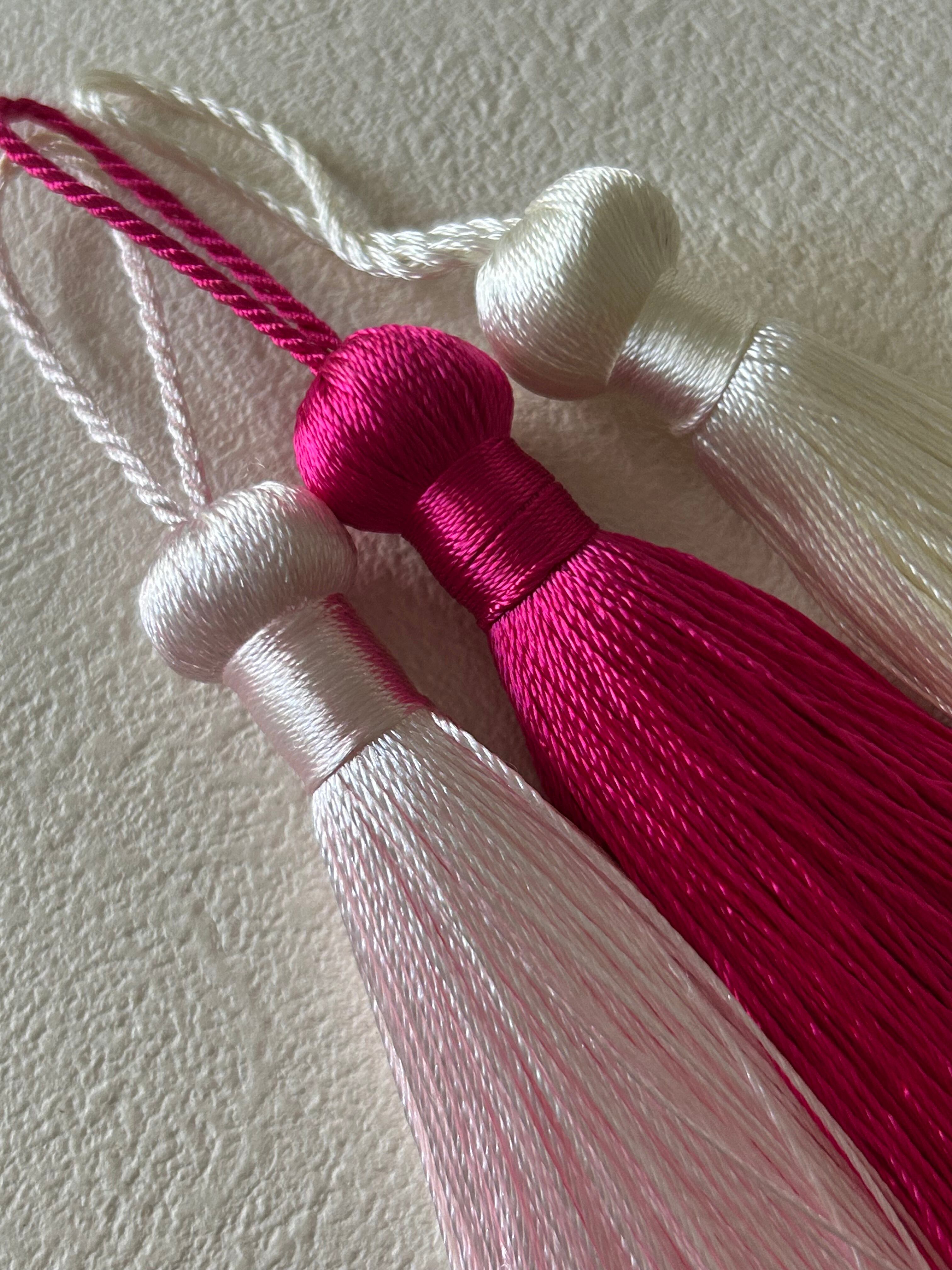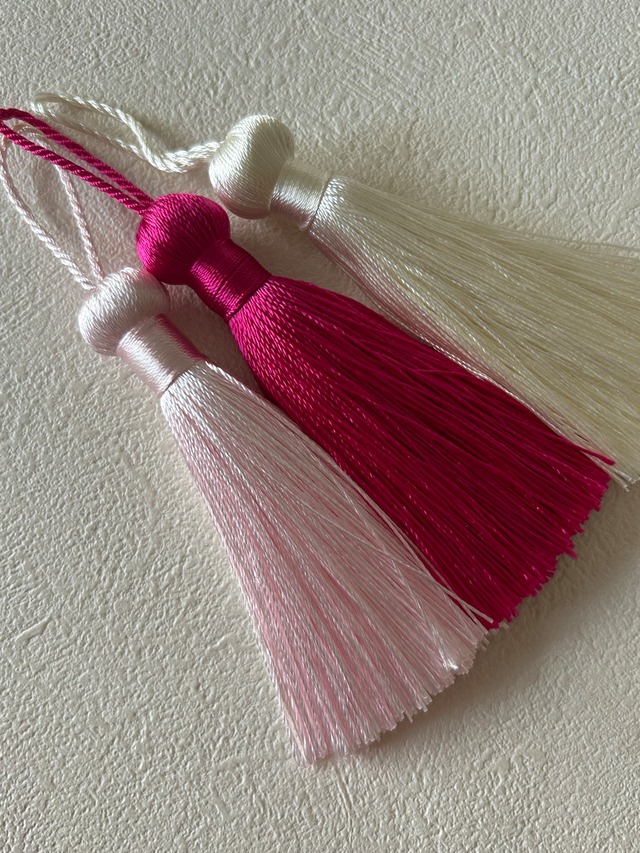 輸入デザインタッセル シンプルタッセル フューシャピンク/薄ピンク/ホワイト 8.5cm カルトナージュ チャーム