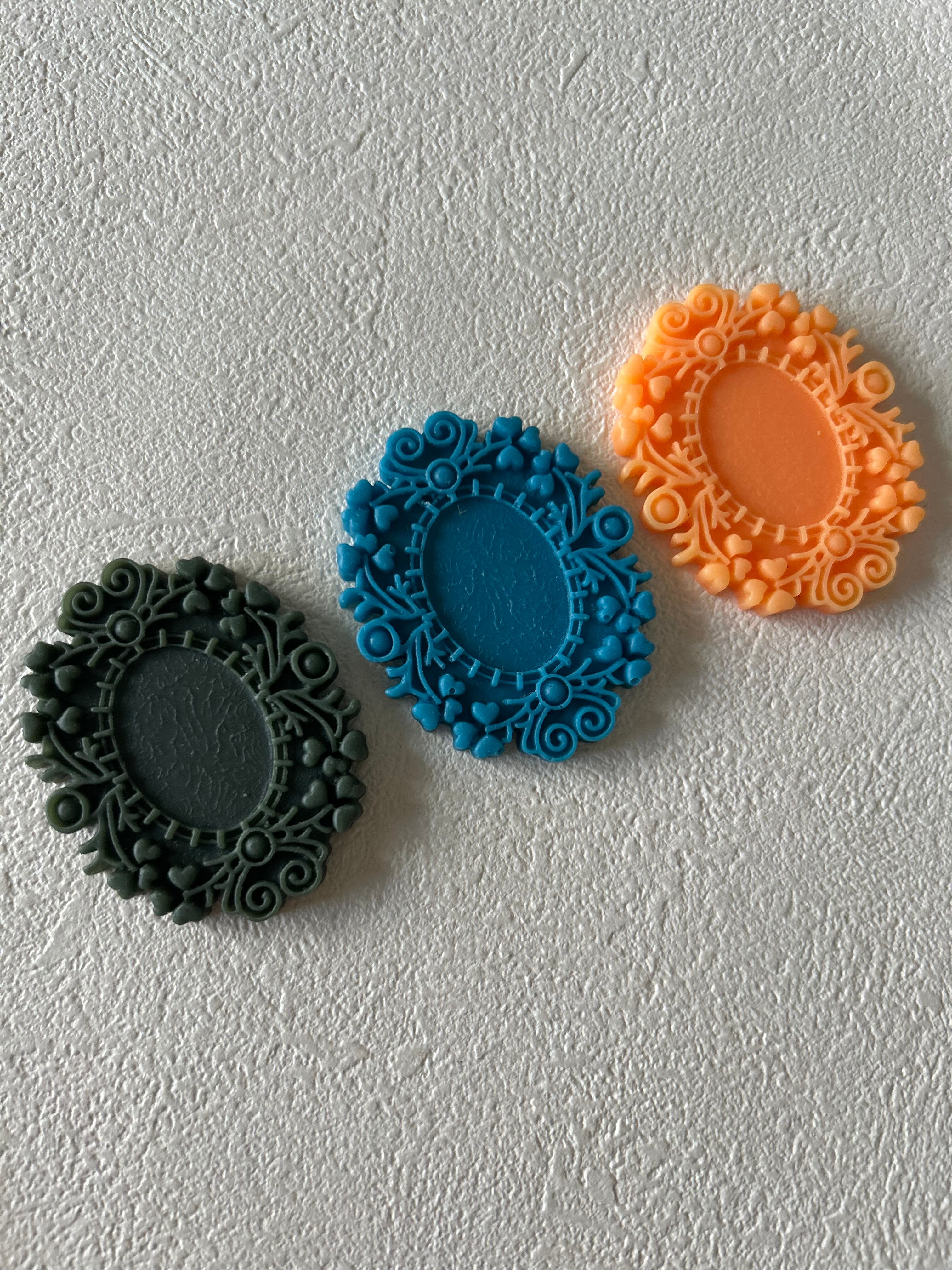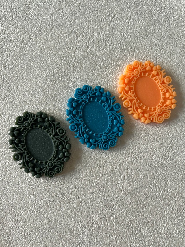 アクセサリーパーツとして、中央にサイズの合うカメオパーツを置いてカルトナージュのデコレーション材としてなど様々な用途でお役立て下さいませ。