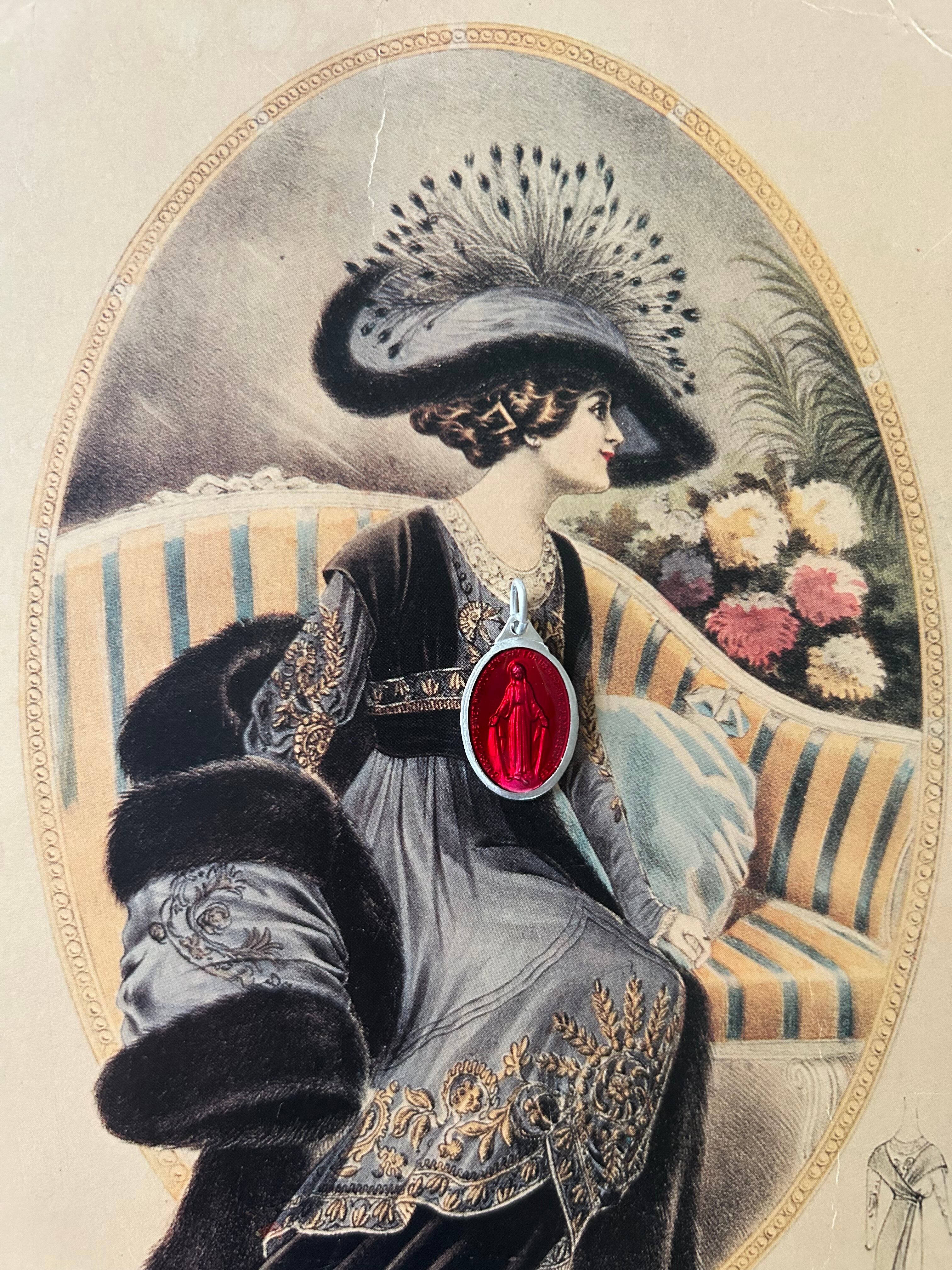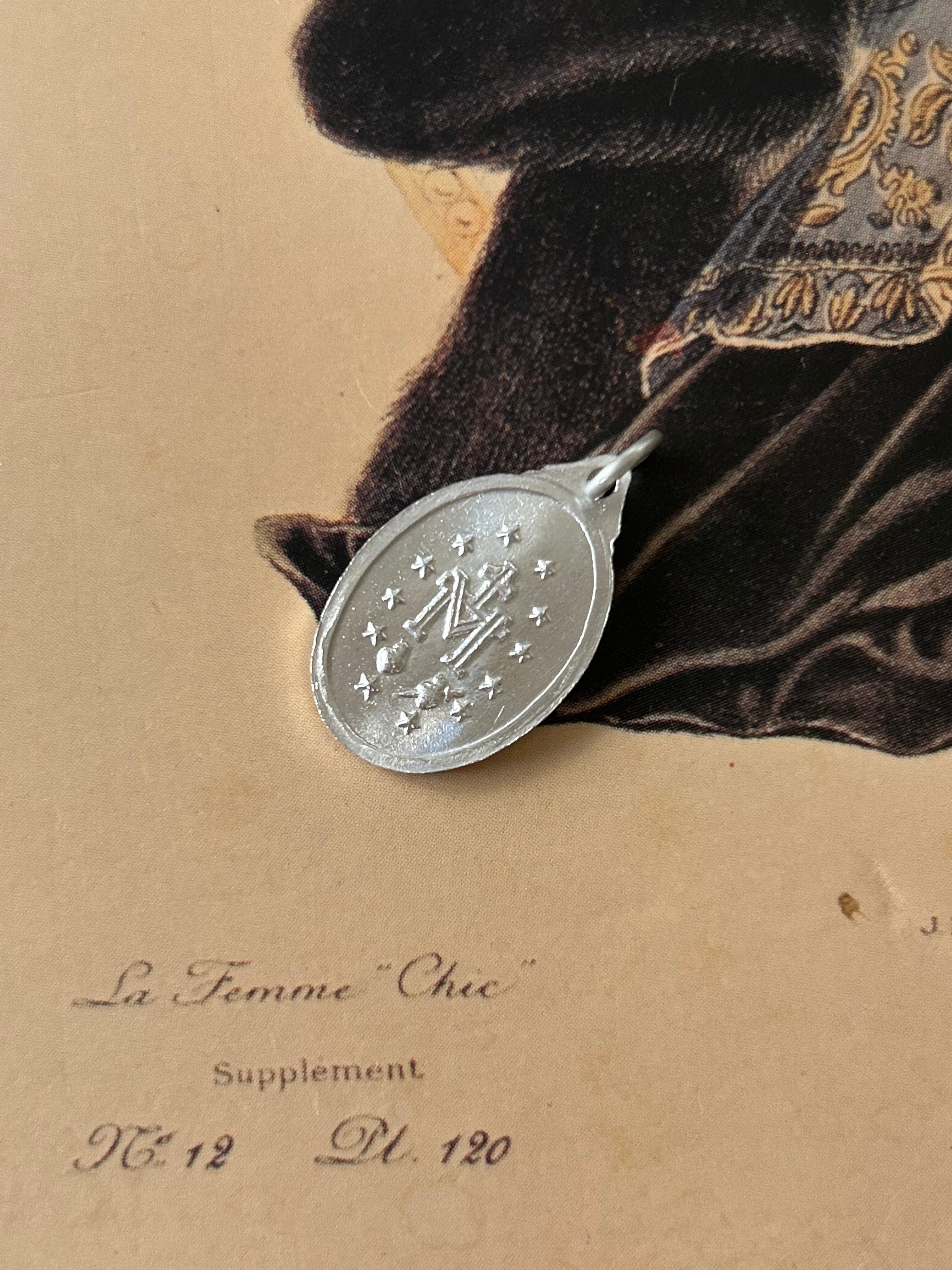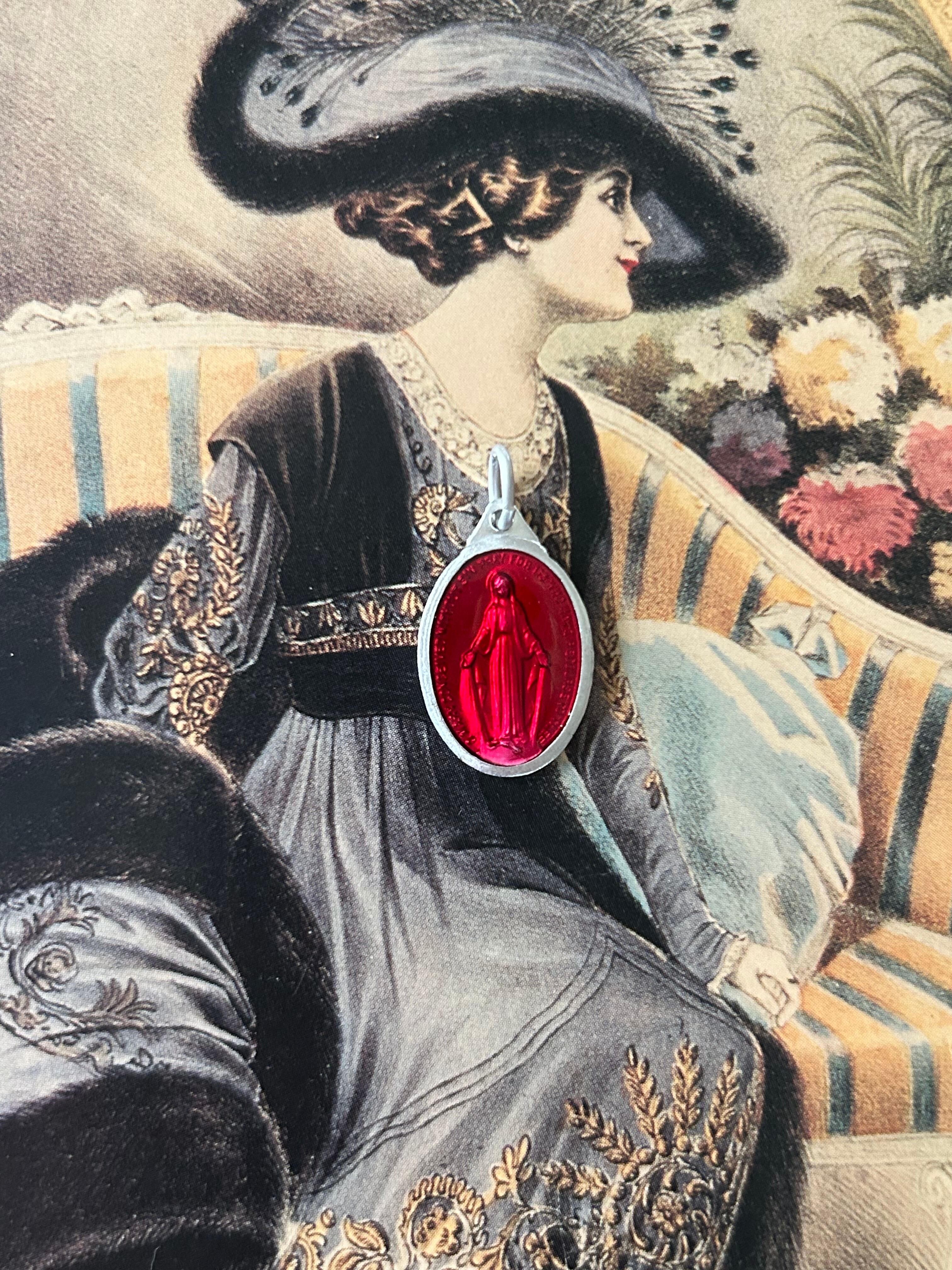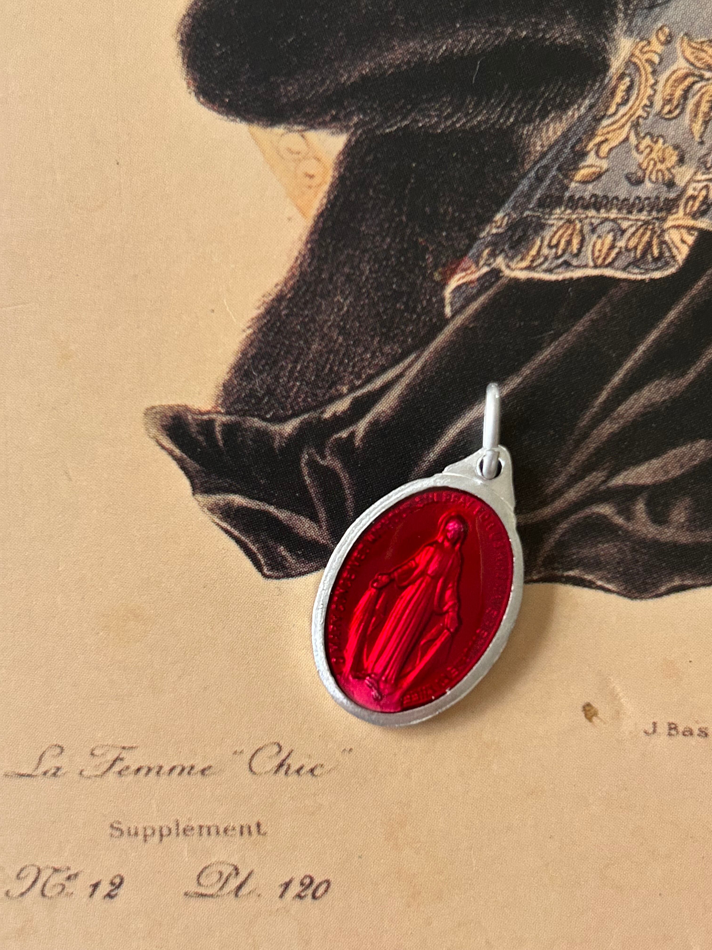 フランス Vintage ヴィンテージ メダイユ アルミ製 レッド 22mm マリア様 アクセサリーパーツ チャーム コレクション