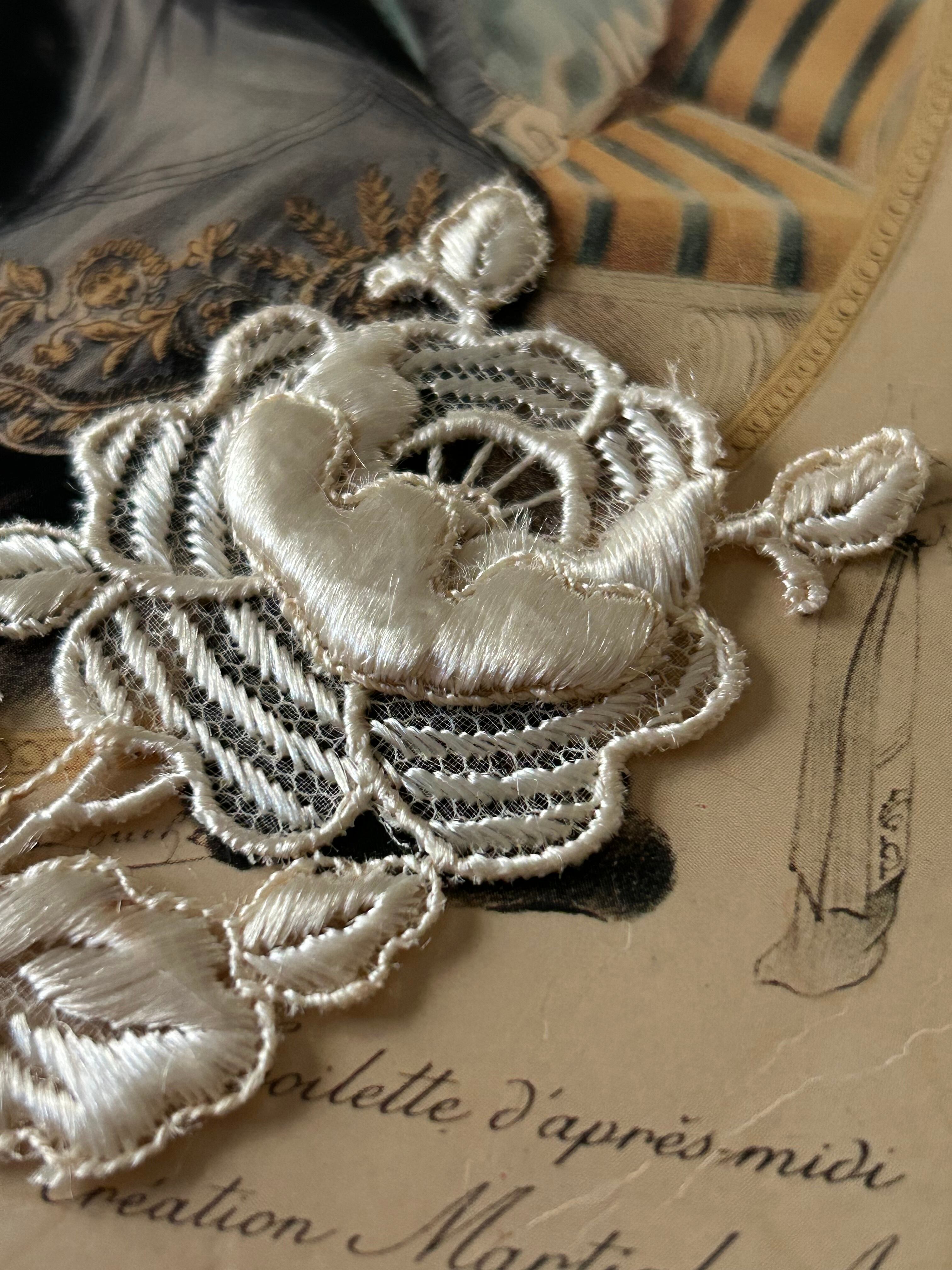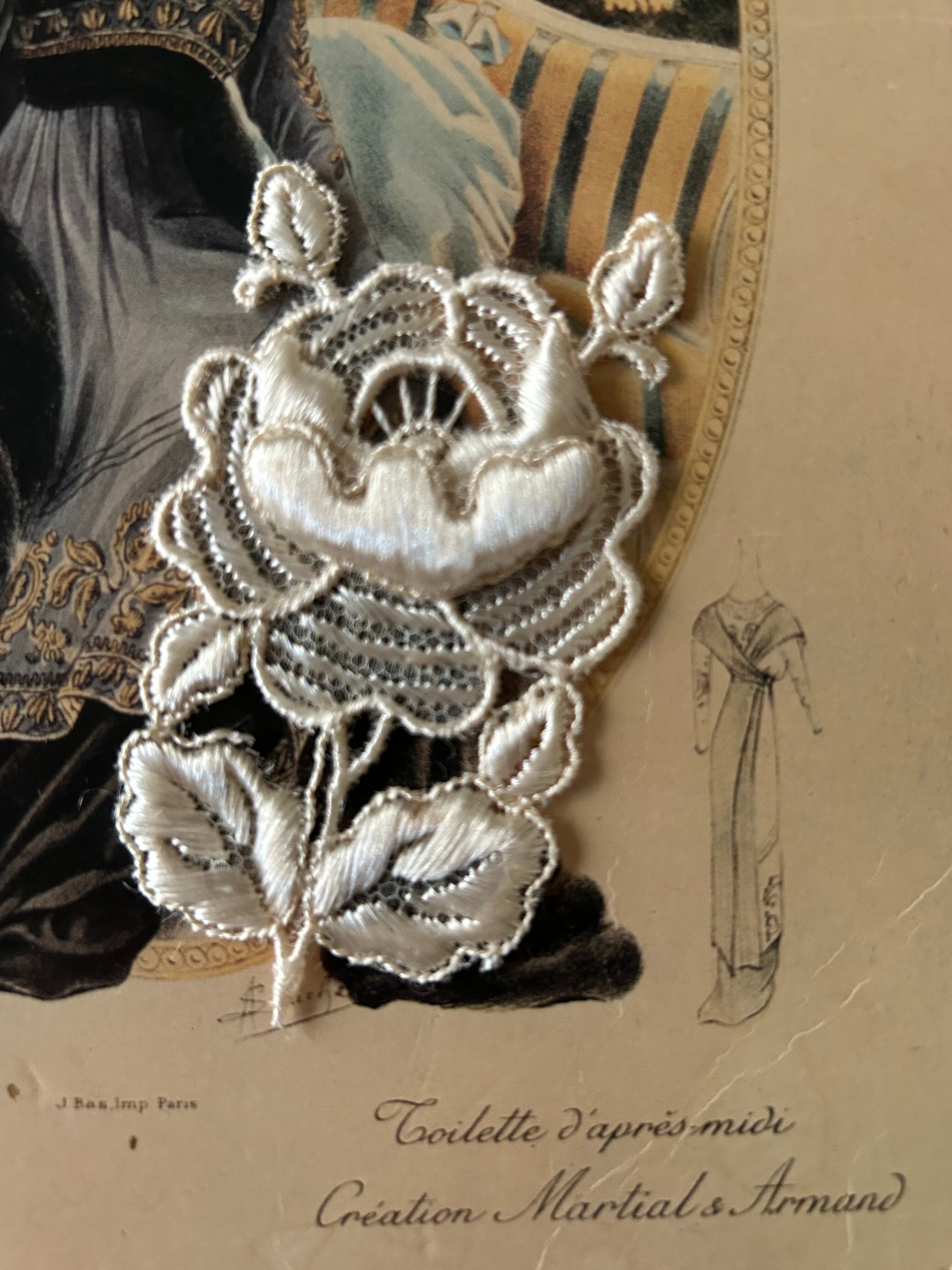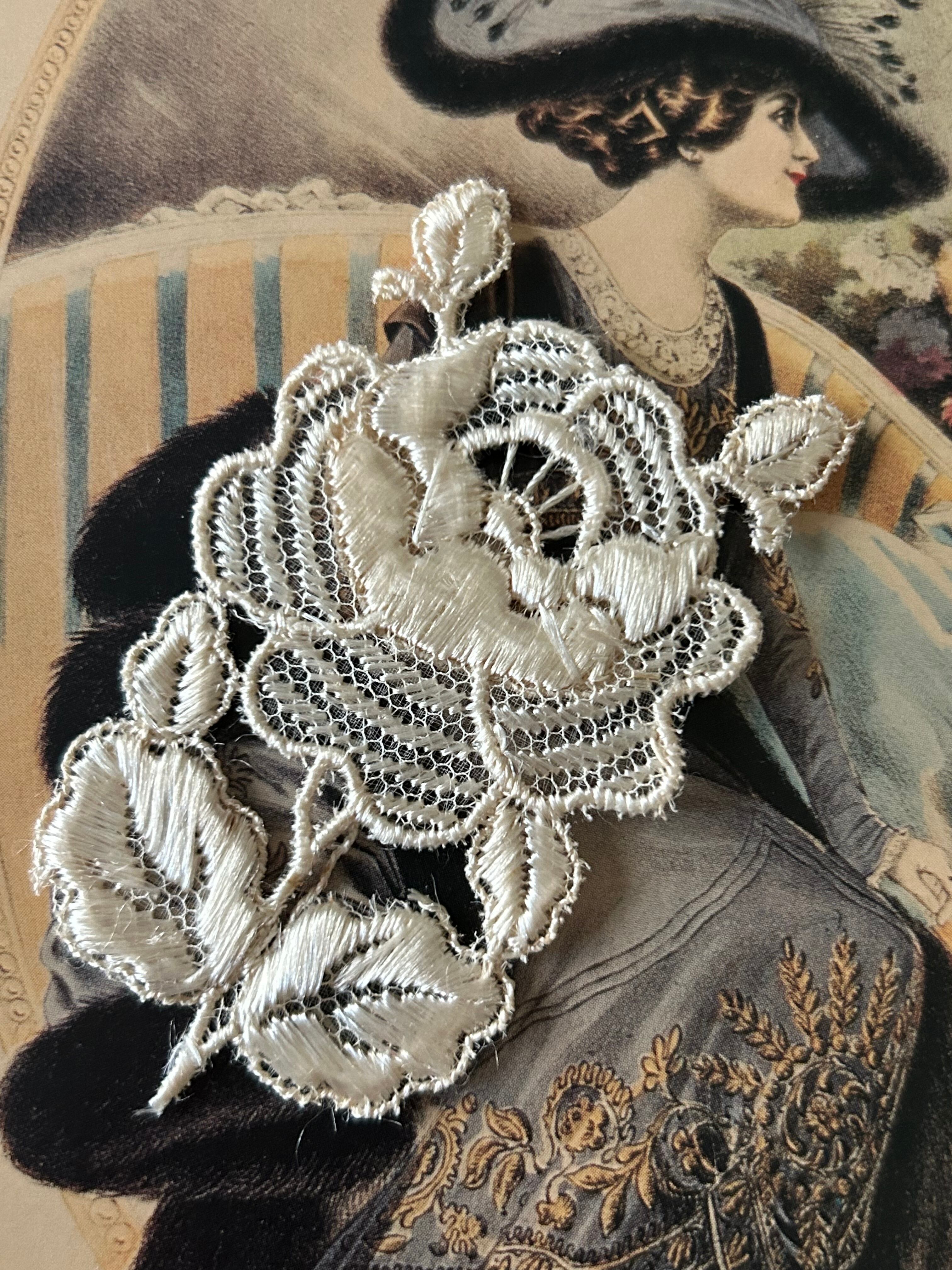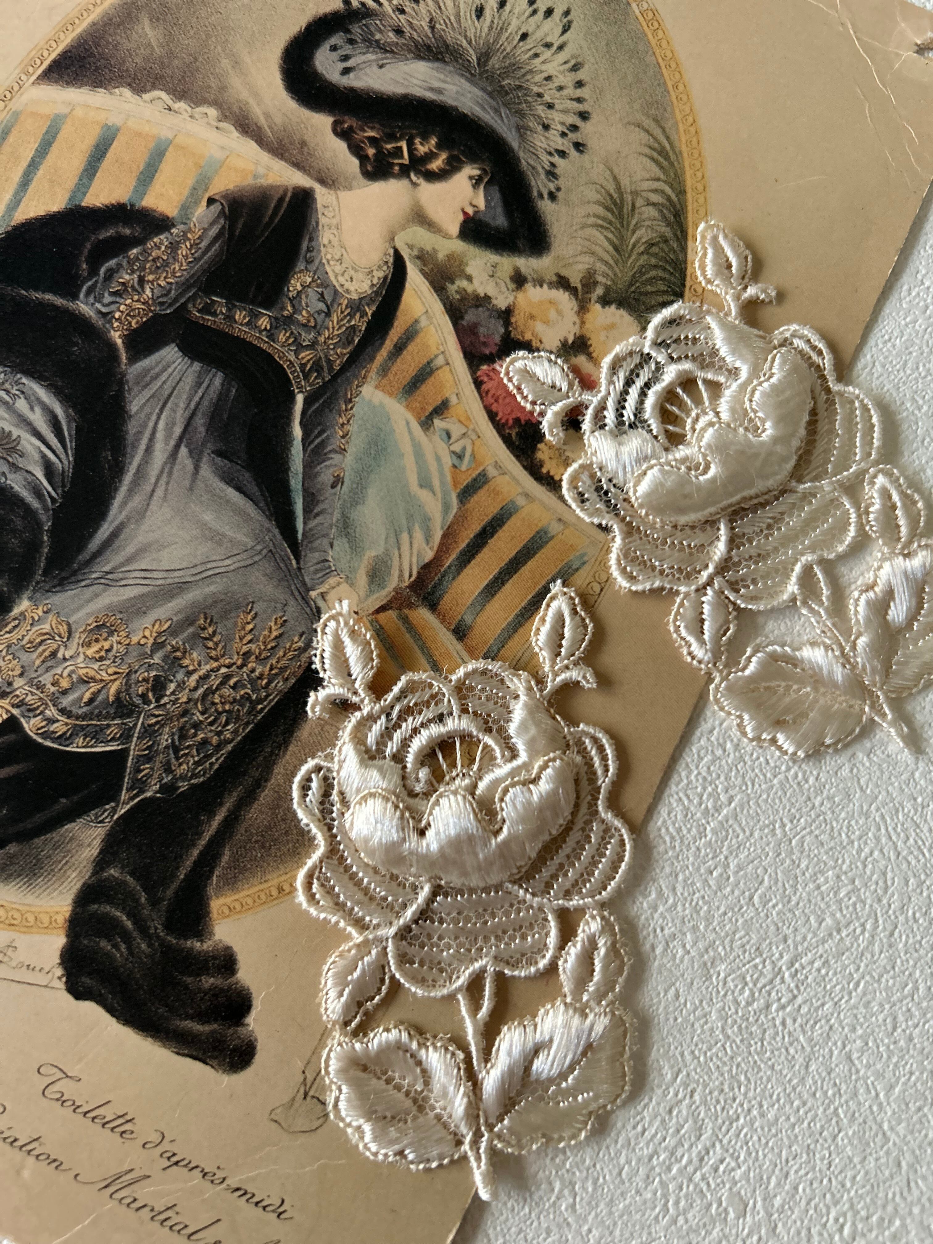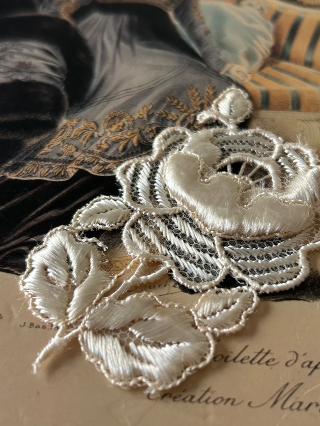 フランスアンティーク お花のモチーフ 75mm アイボリー レース 立体 デコレーション材 カルトナージュ