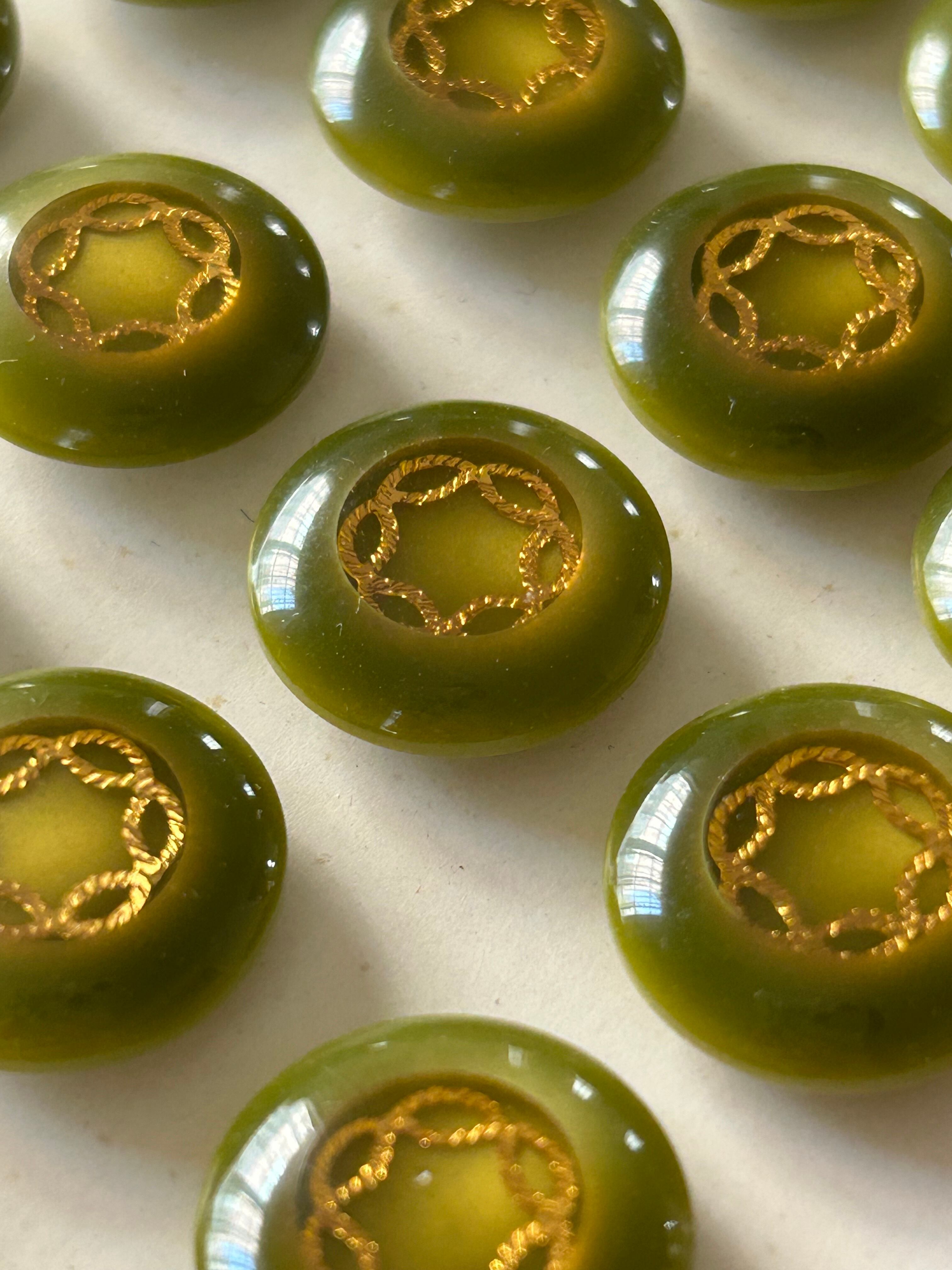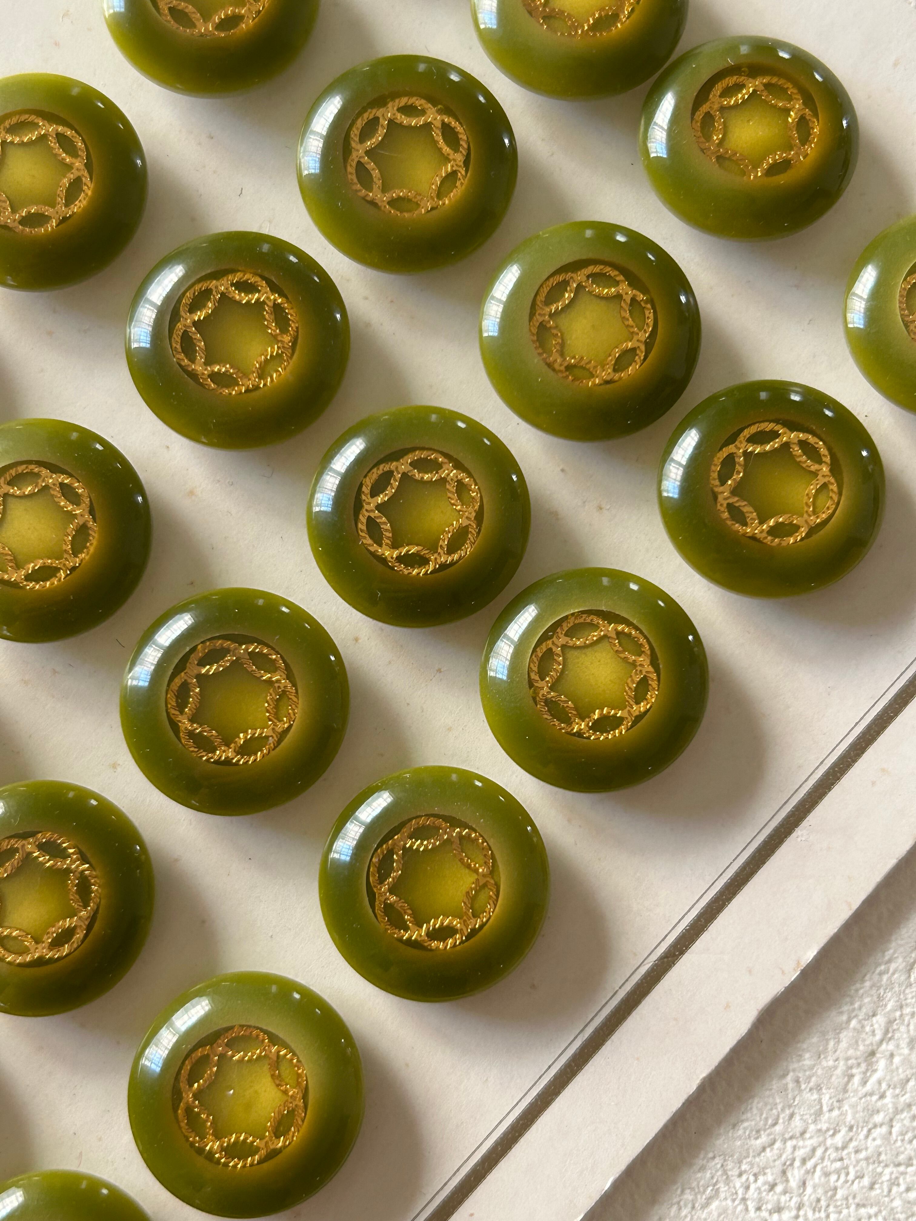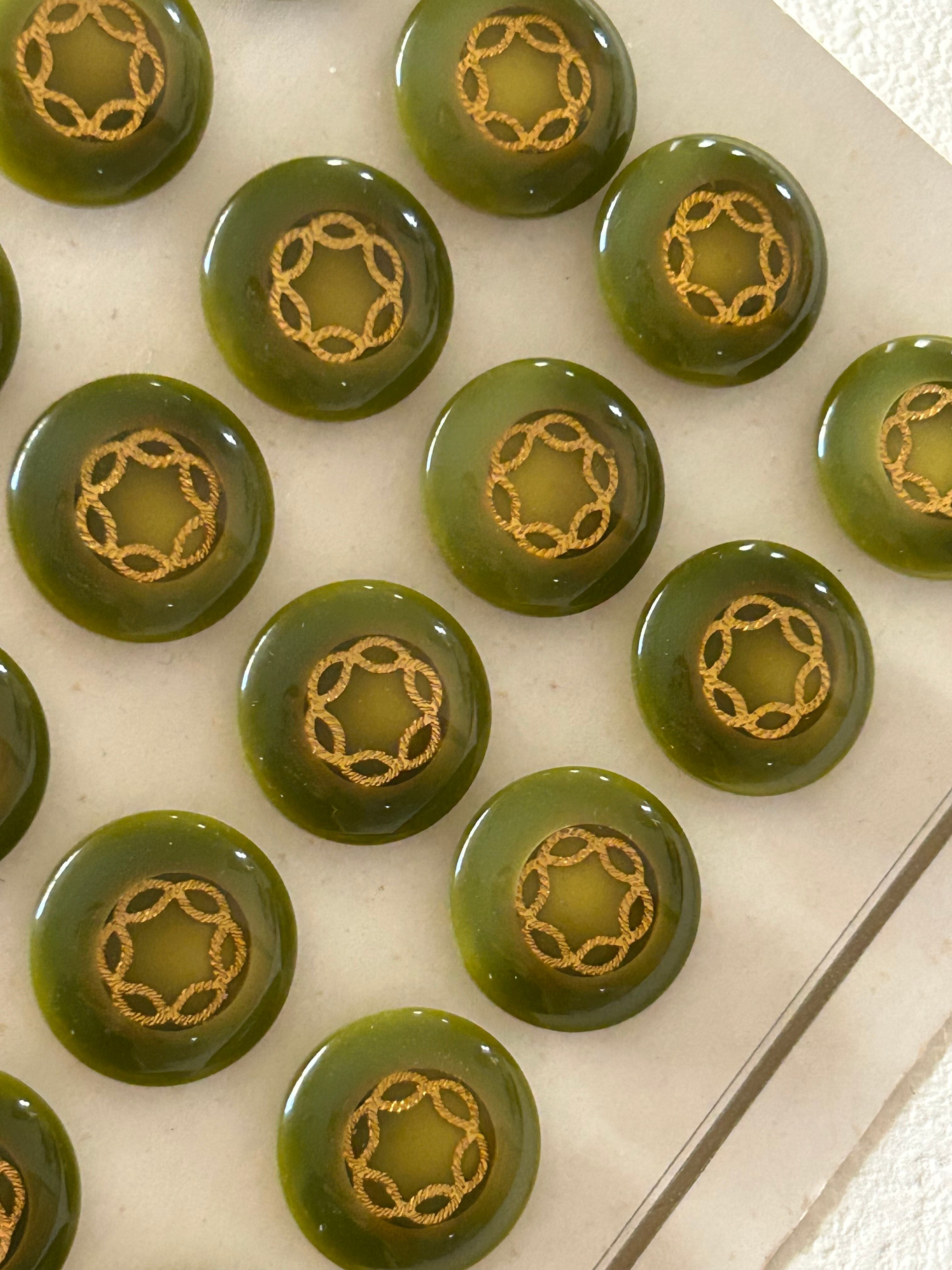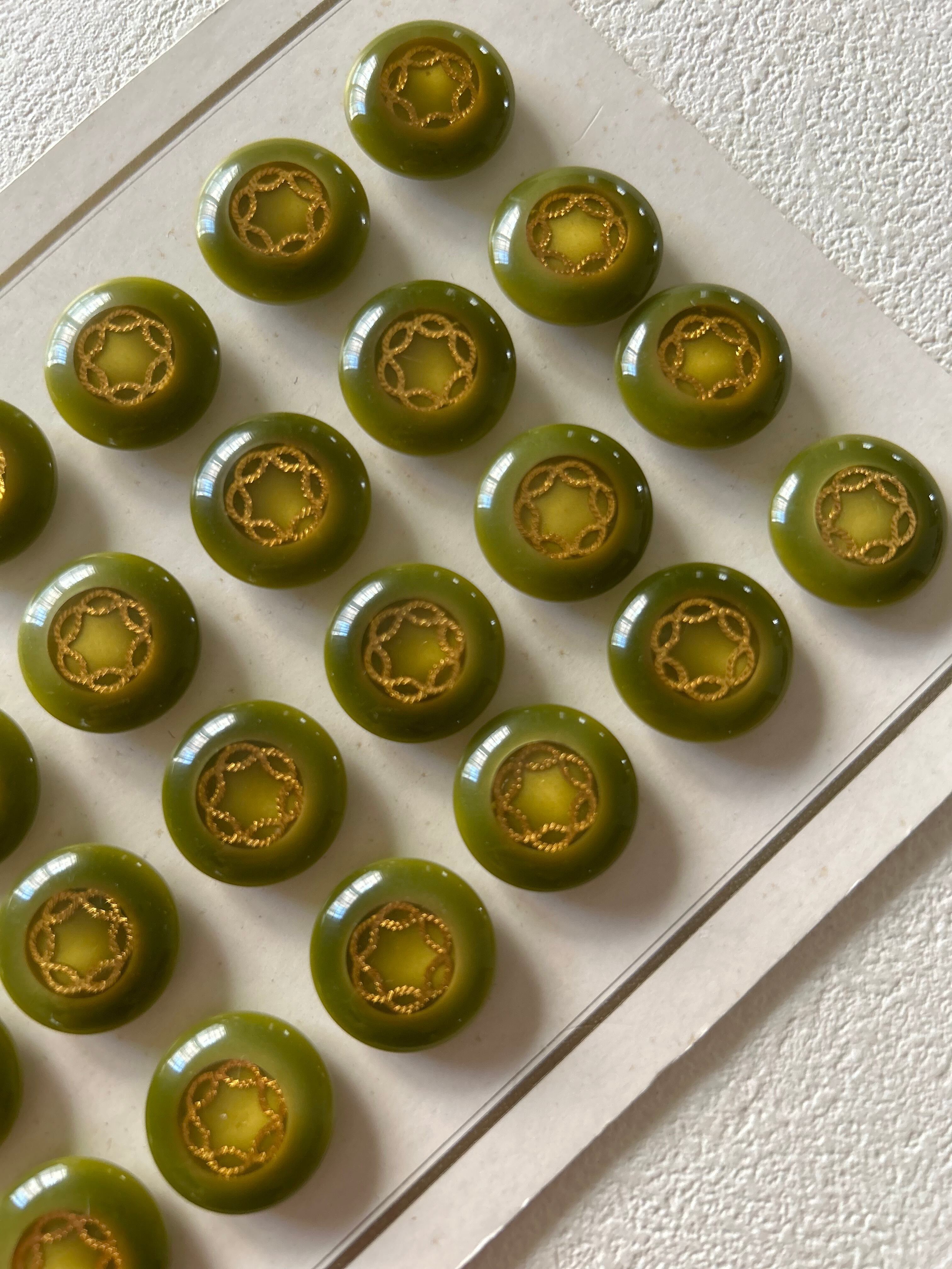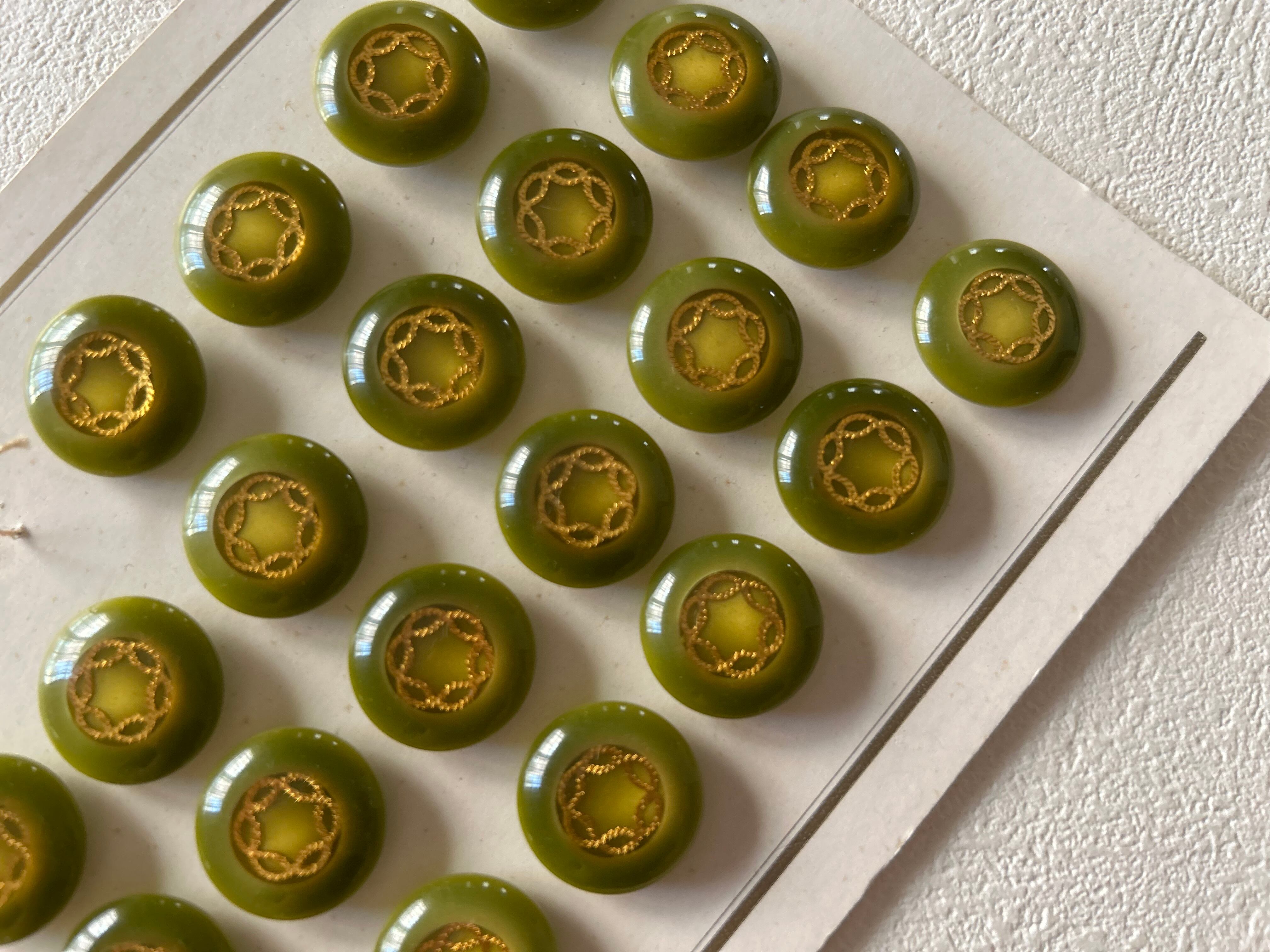 フランスVintageボタン プラスチックボタン イエローグリーン×ゴールド 17mm アクセサリーパーツ デコレーション材