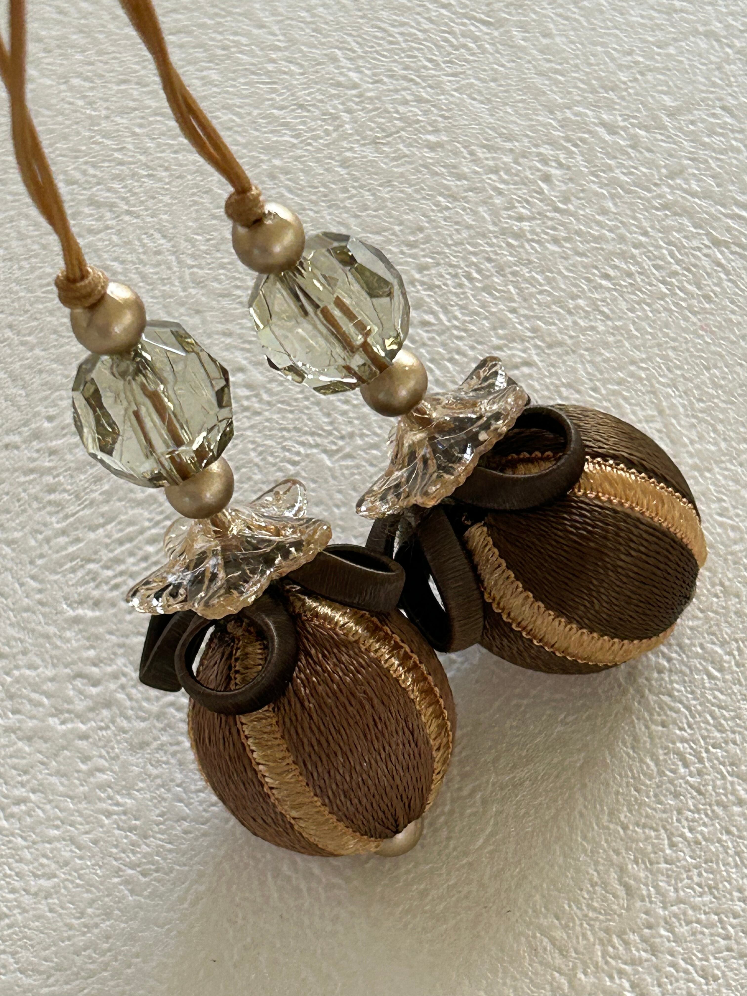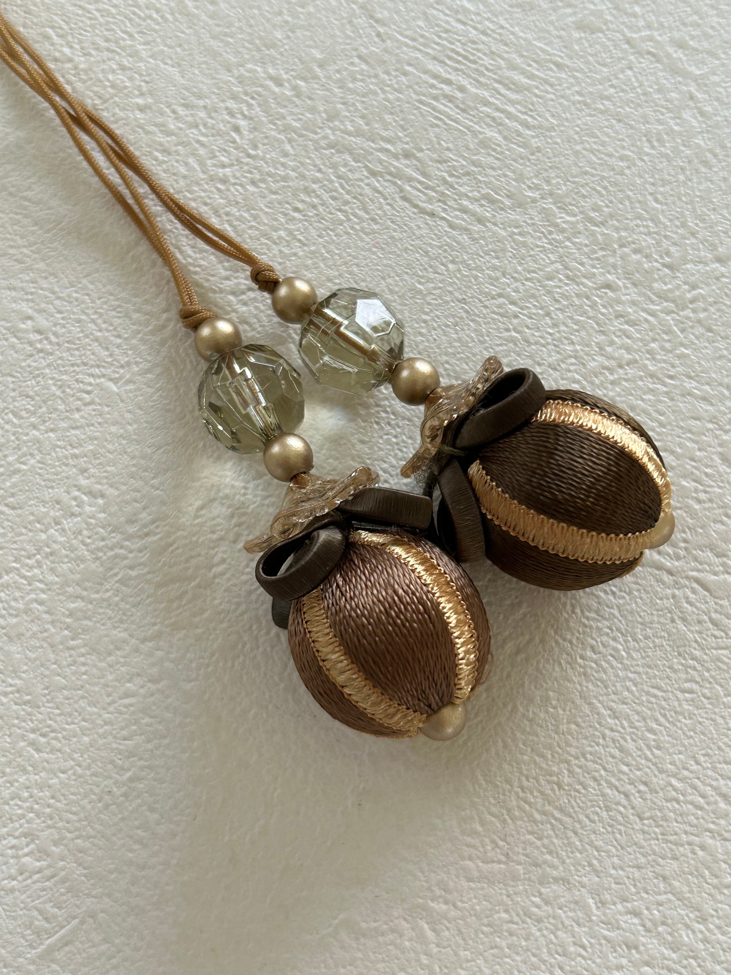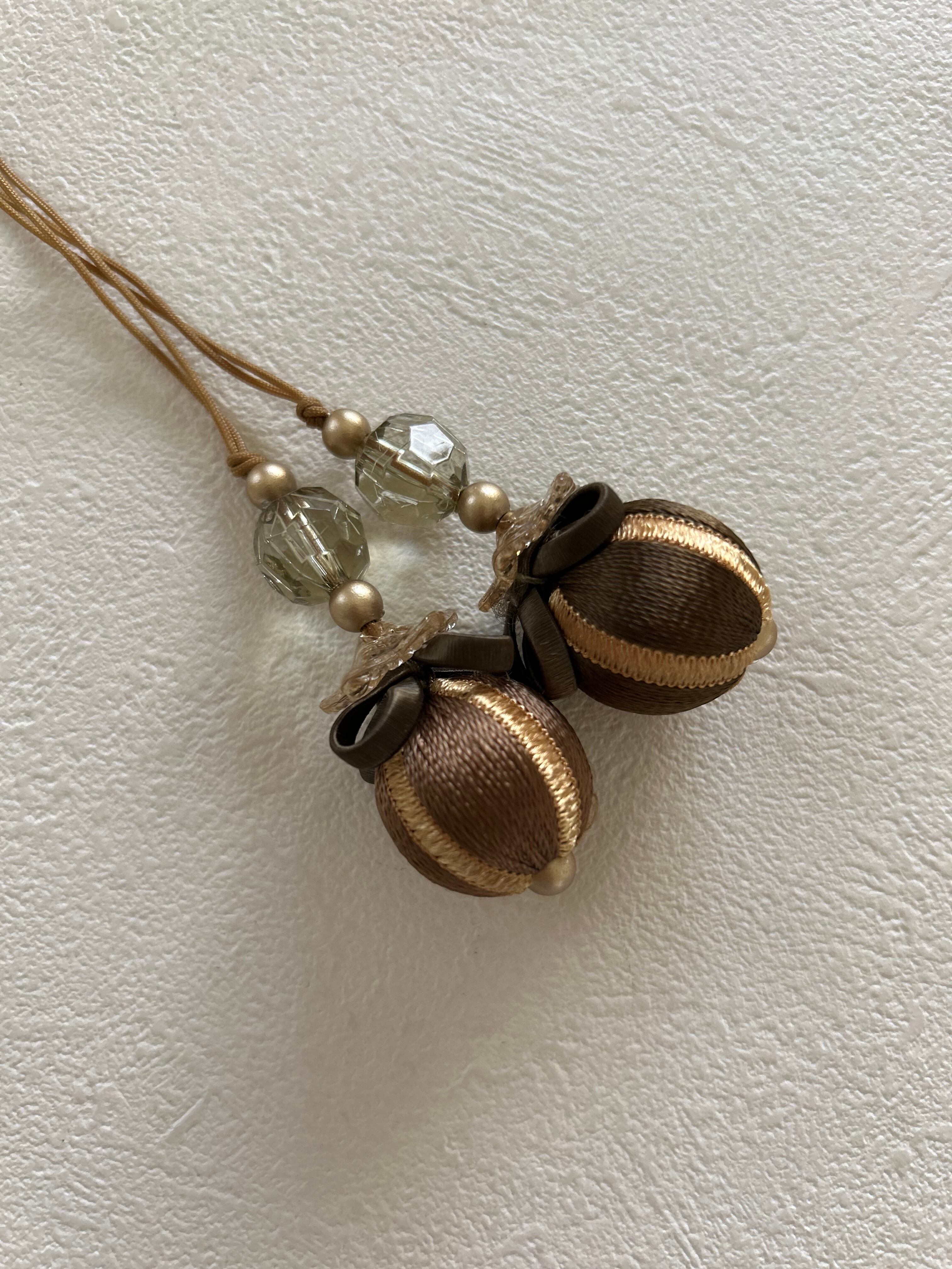 輸入デザインタッセル 巻玉タッセル ヘーゼルナッツ/カーキ カルトナージュ インテリア デコレーション材 チャーム