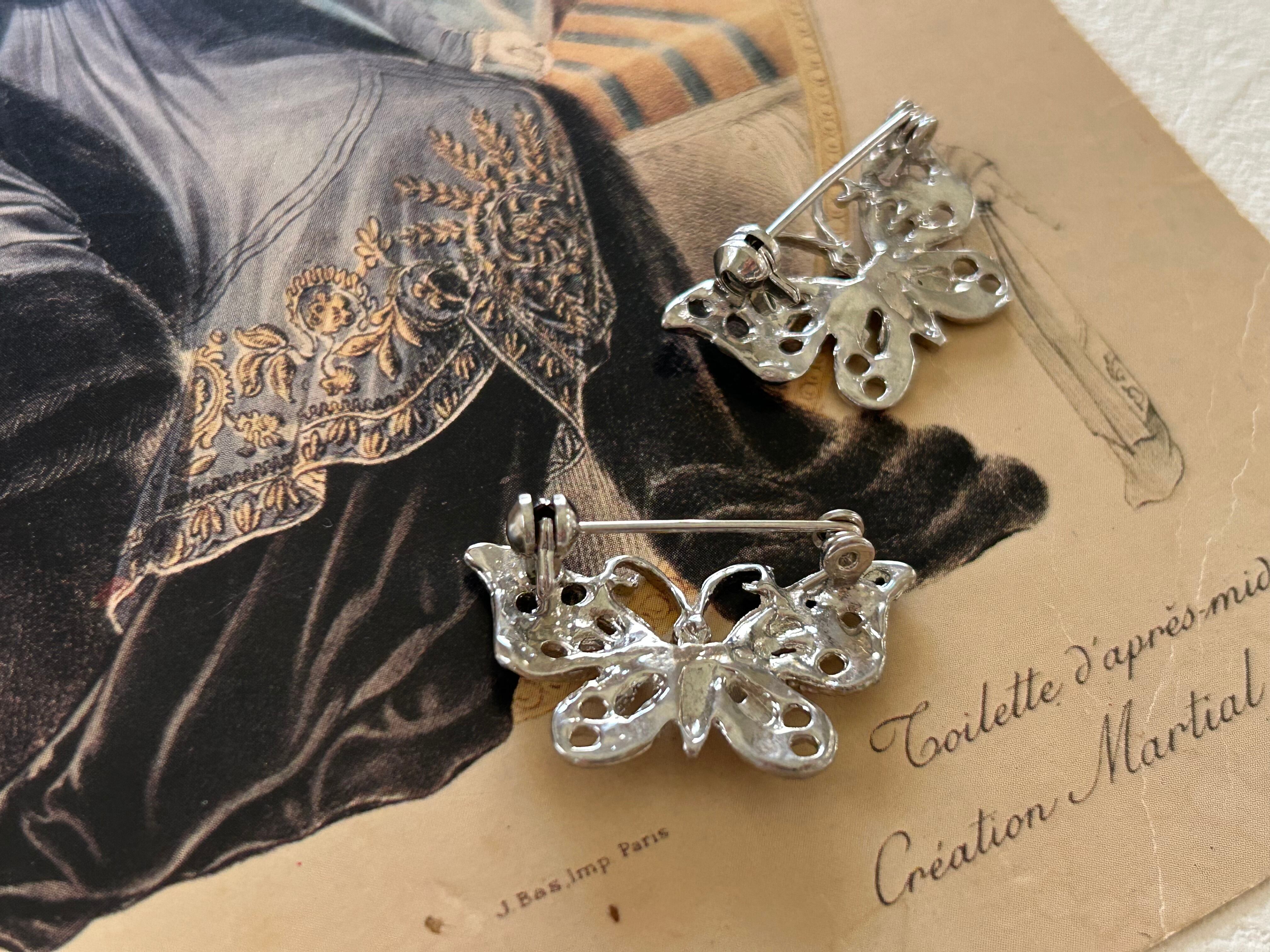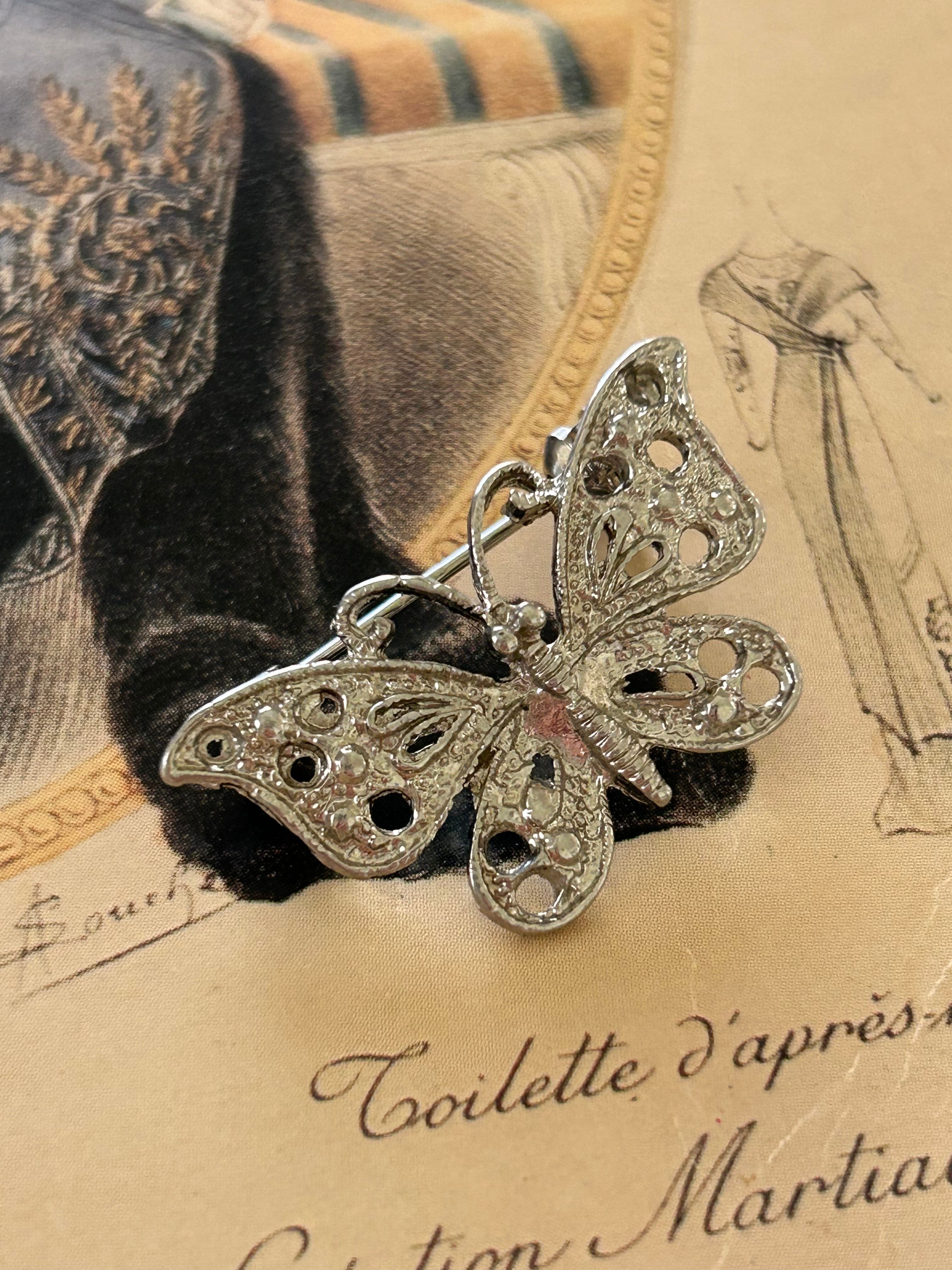 輸入デザインブローチ パピヨン 蝶々 シルバー 20mm×34mm アクセサリー ハンドメイドパーツ デコレーション材