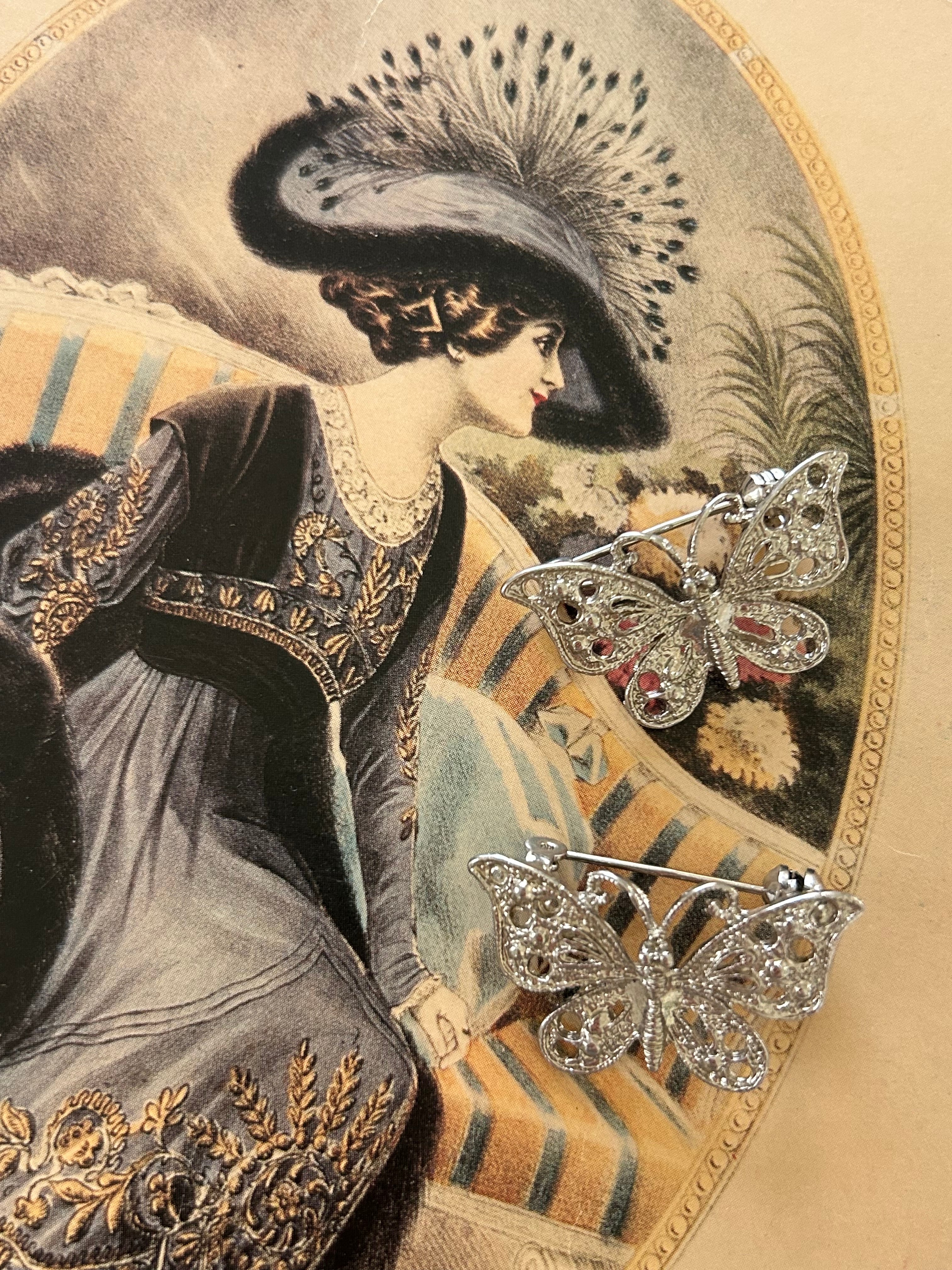エレガントで美しいパピヨン(蝶々)のブローチです。