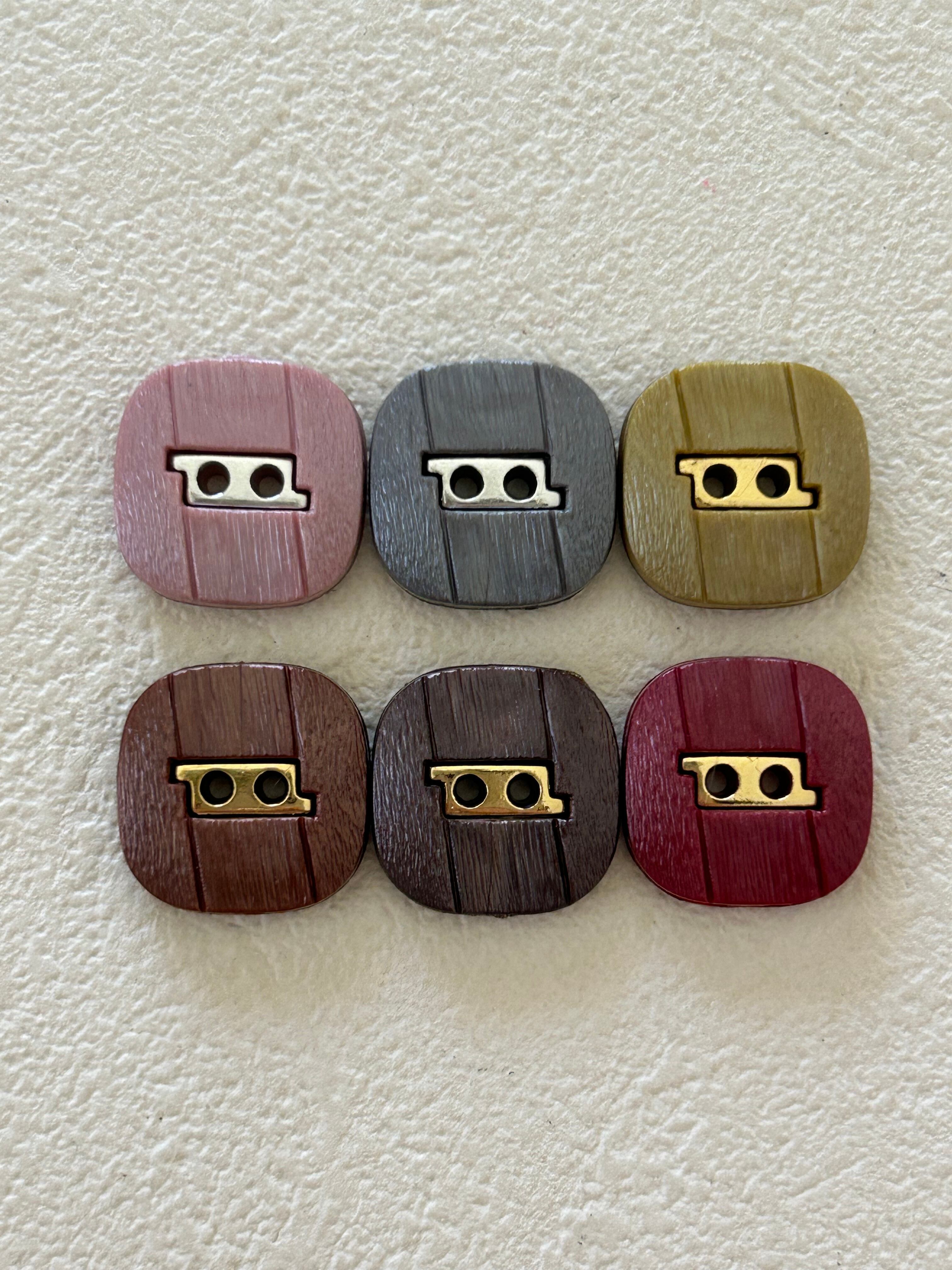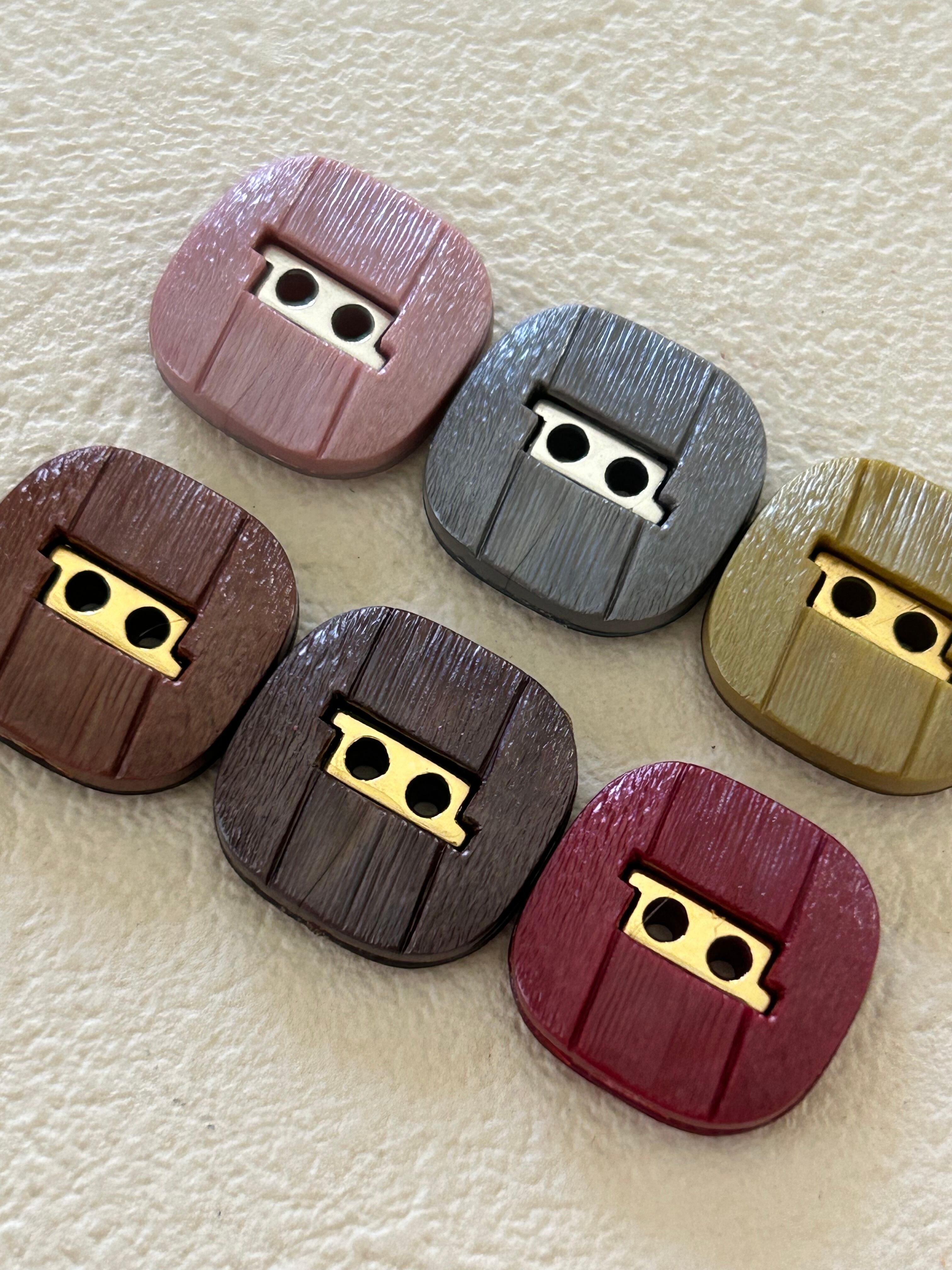 Japanese Vintage ボタン 角なしスクウェア 16mm 6色 昭和レトロ アクセサリーパーツ 装飾材 カルトナージュ