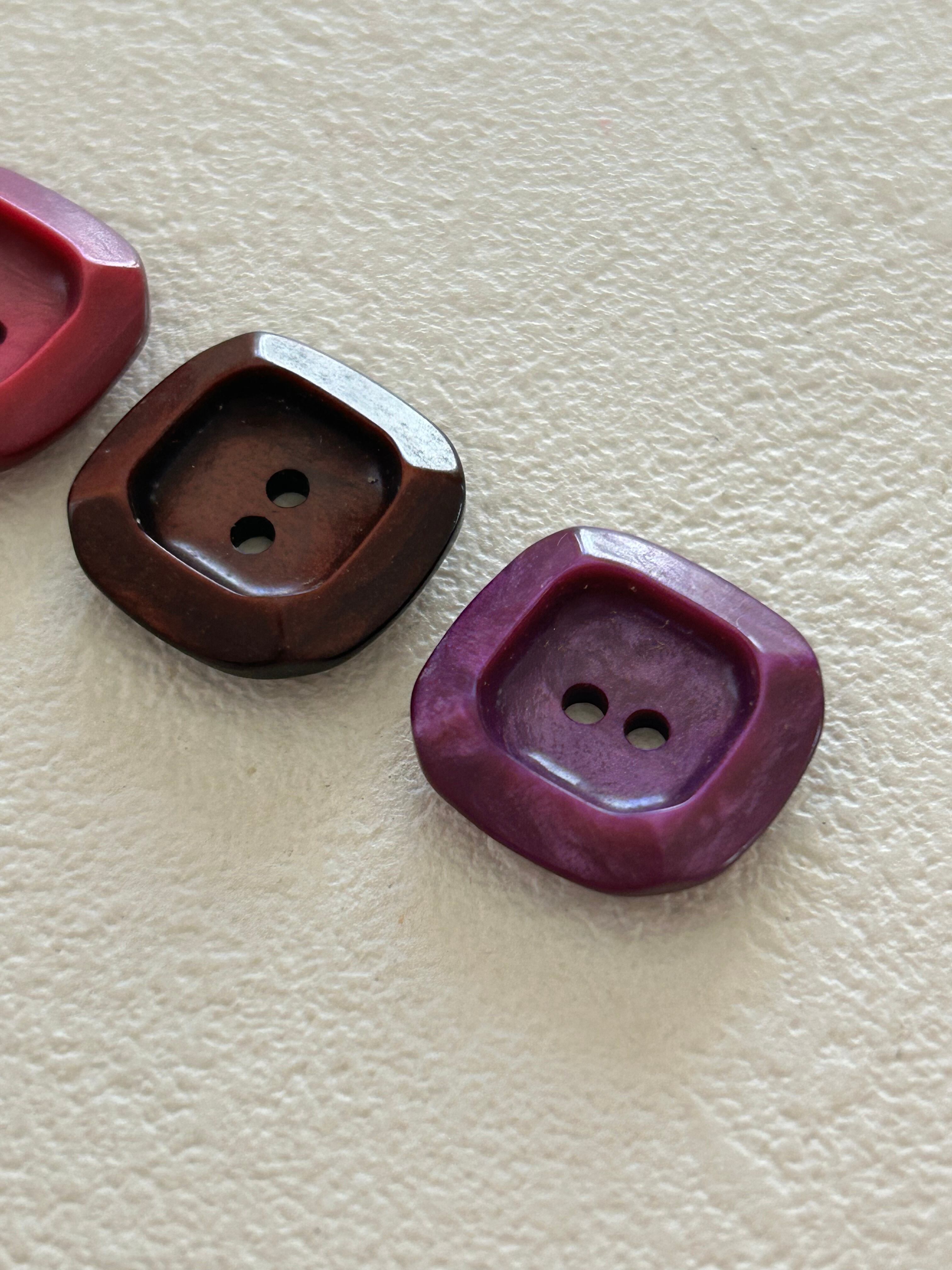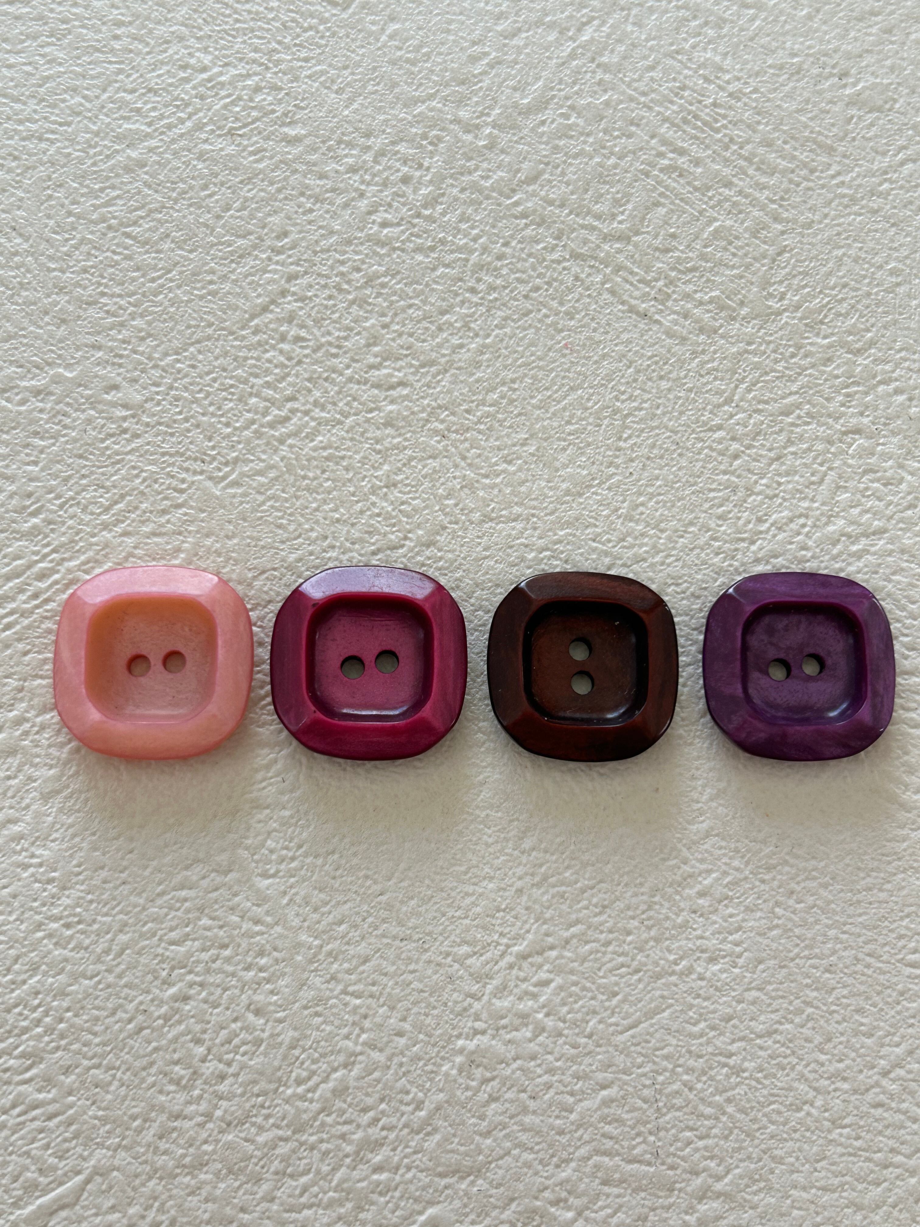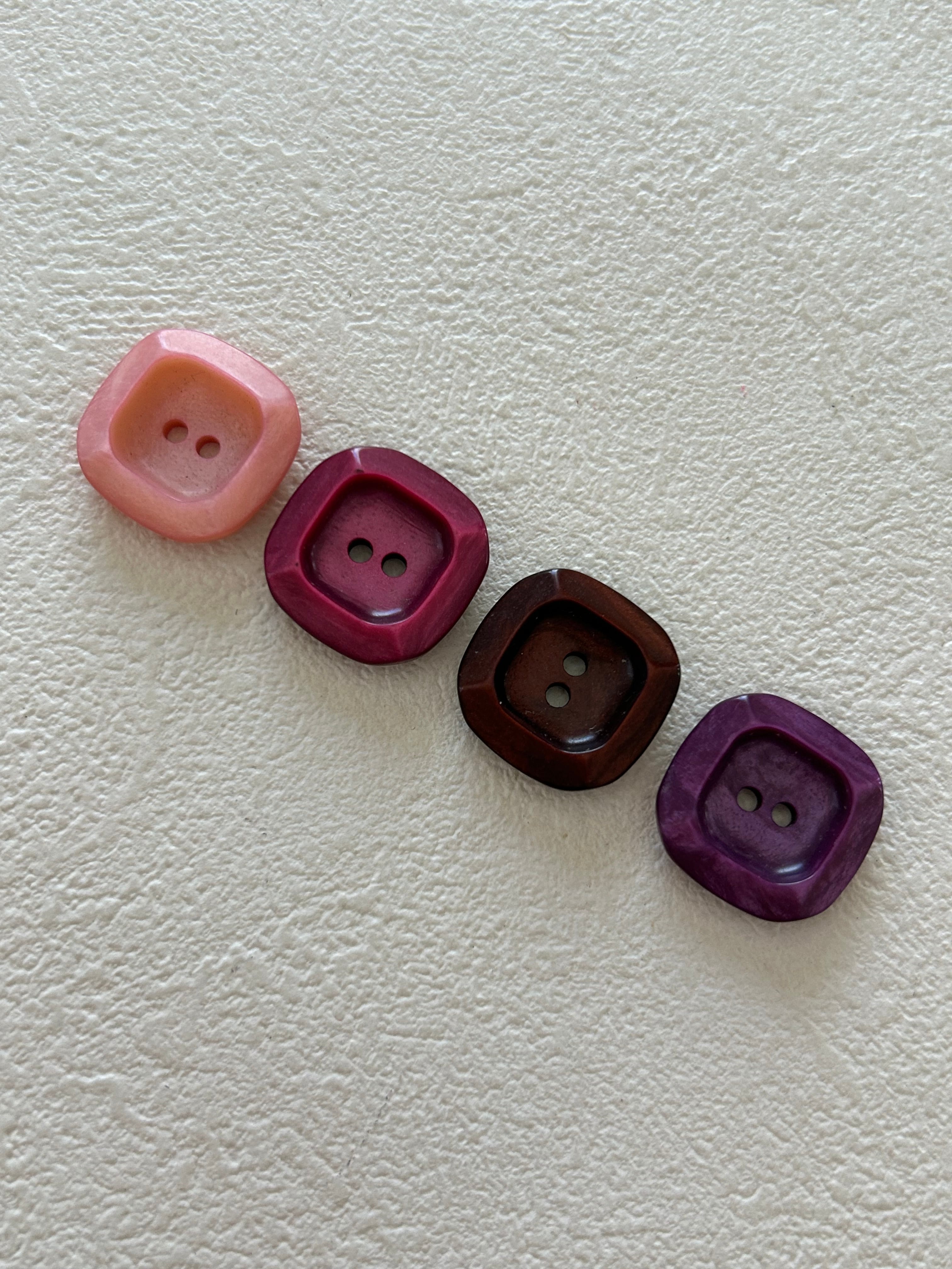 Japanese Vintage ヴィンテージボタン 角なしスクウェア 18mm レトロボタン ピンク/赤紫/パープル/ブラウン アクセサリーパーツ 装飾材 カルトナージュ
