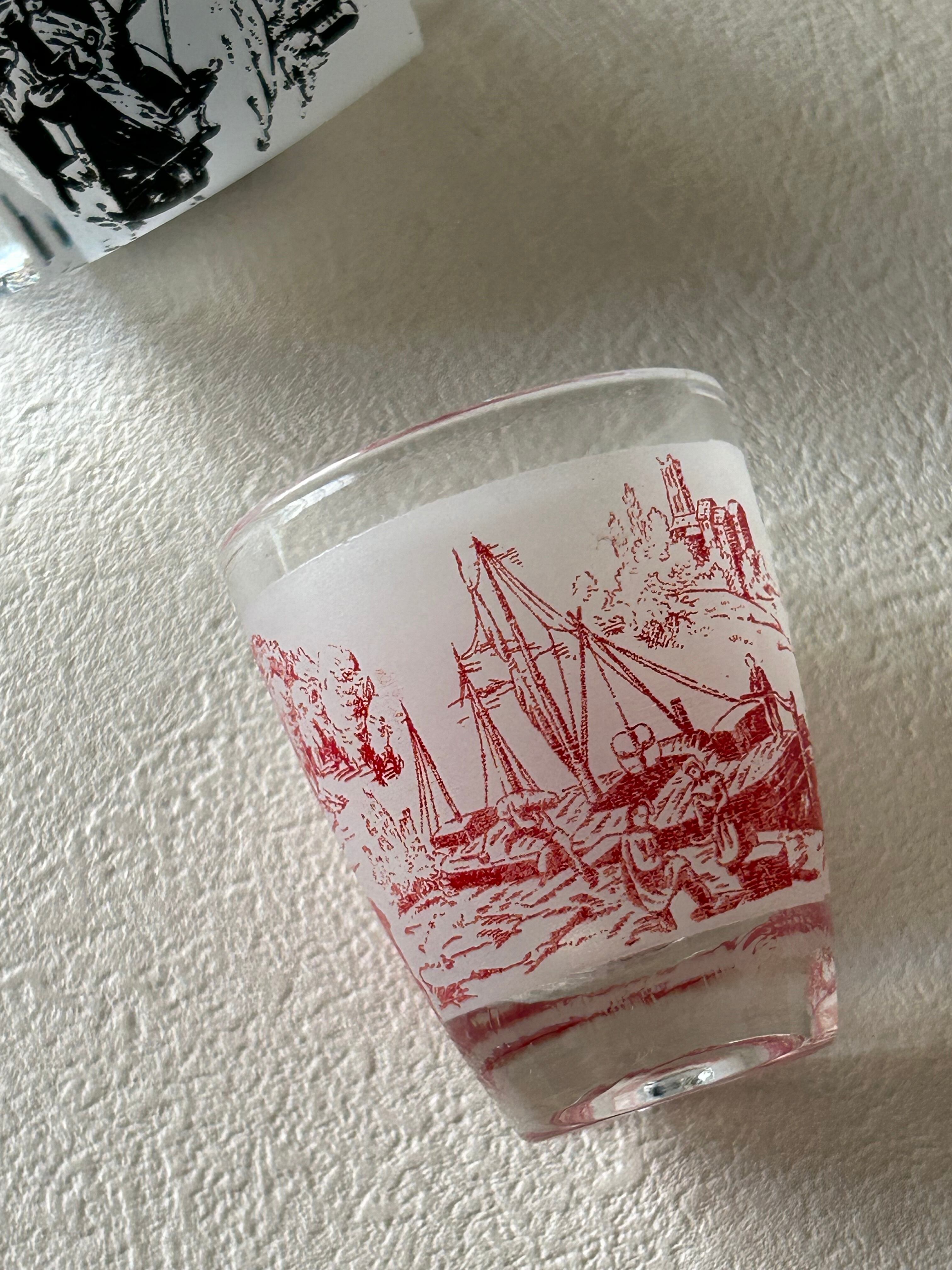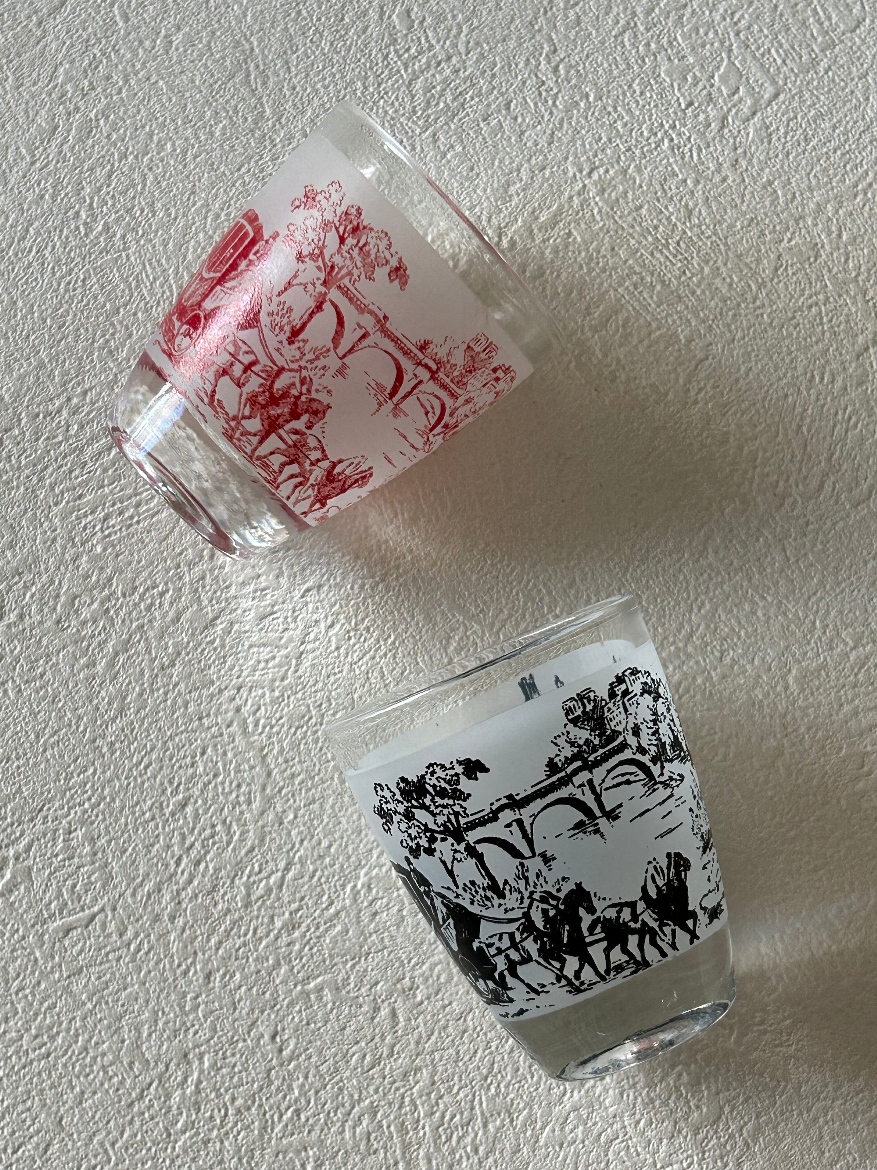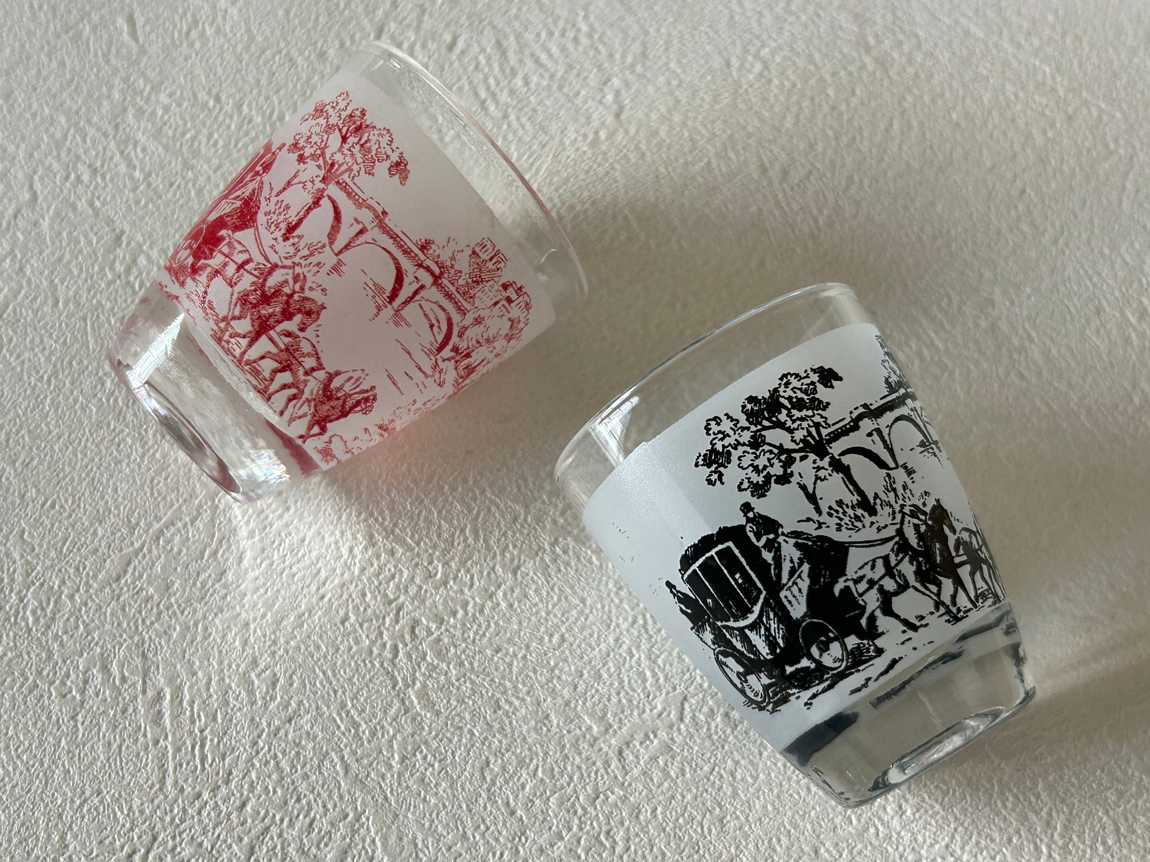 フランスVintage リキュールグラス ミニグラス トワルドジュイ柄 ブラック/レッド フラワーベース インテリア 撮影小物 インテリア小物